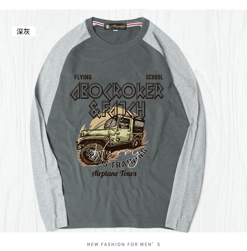 曼西尔奴男士潮流时尚纯棉个性字母印花拼色百搭休闲圆领长袖T恤121145TM