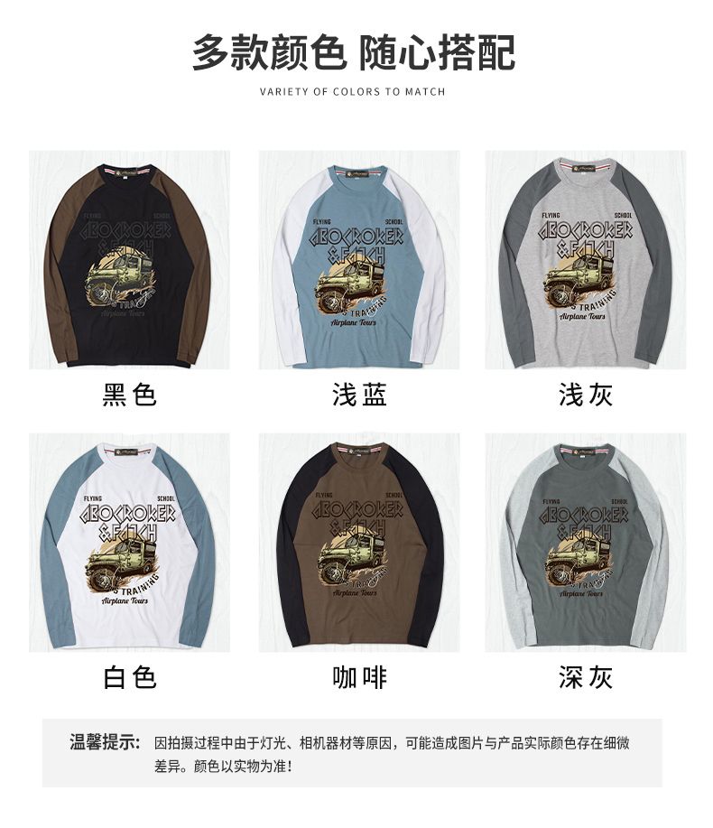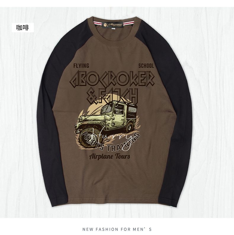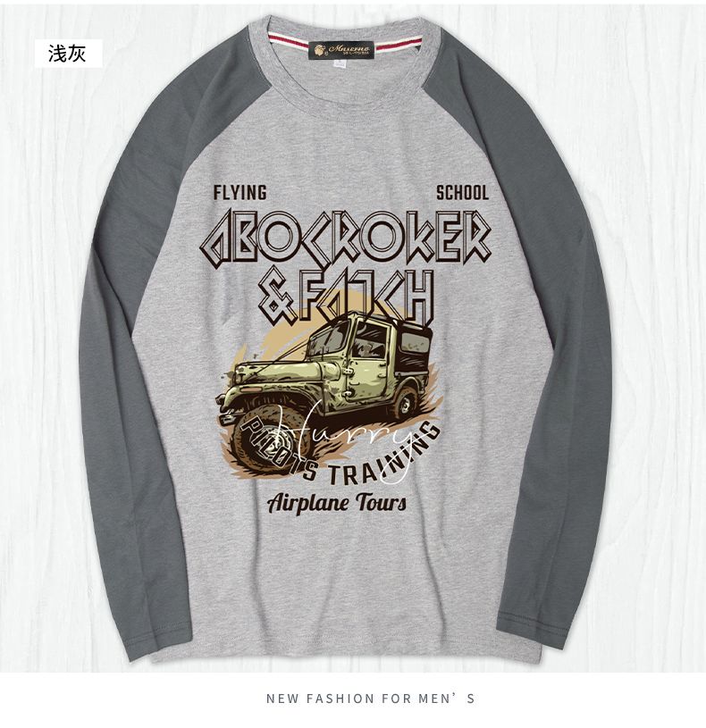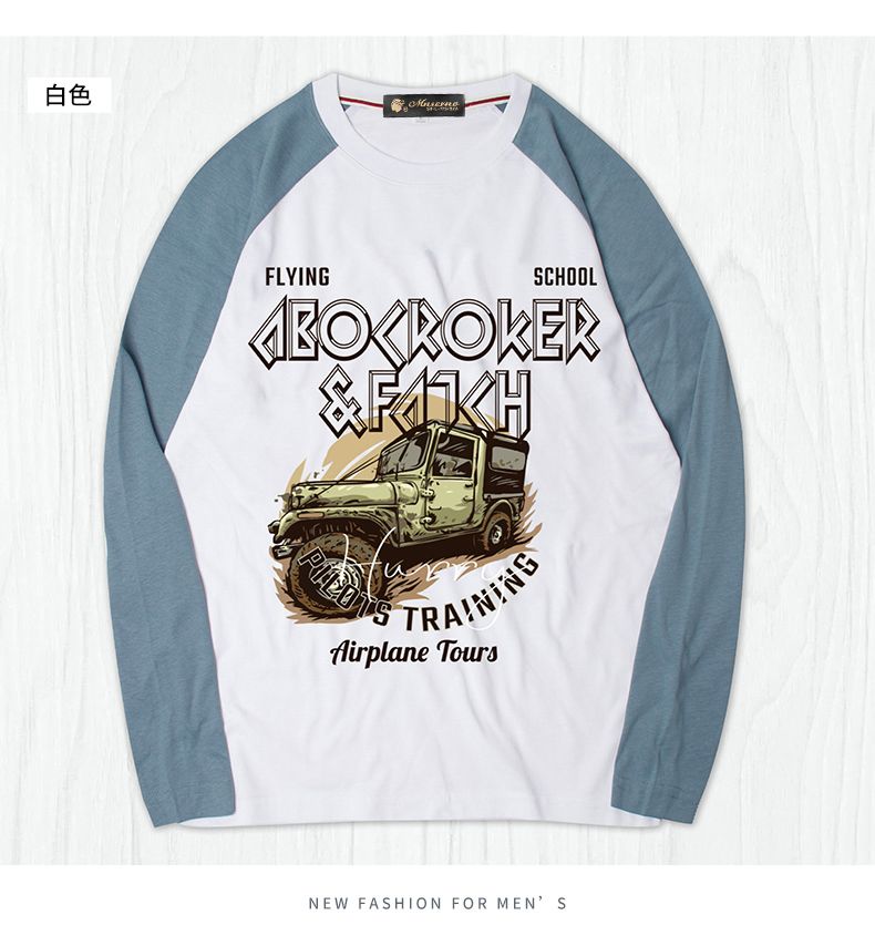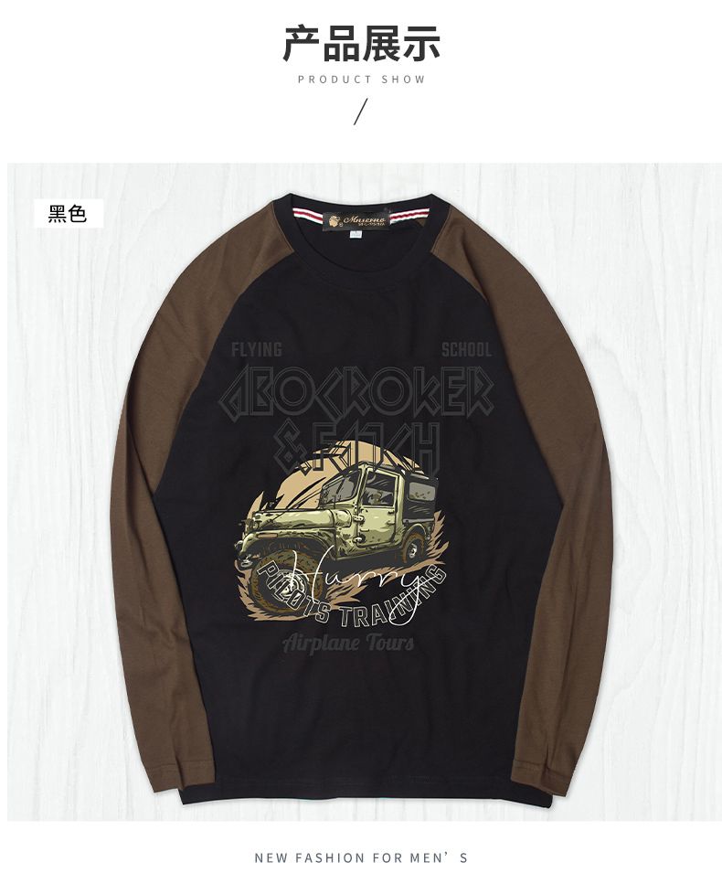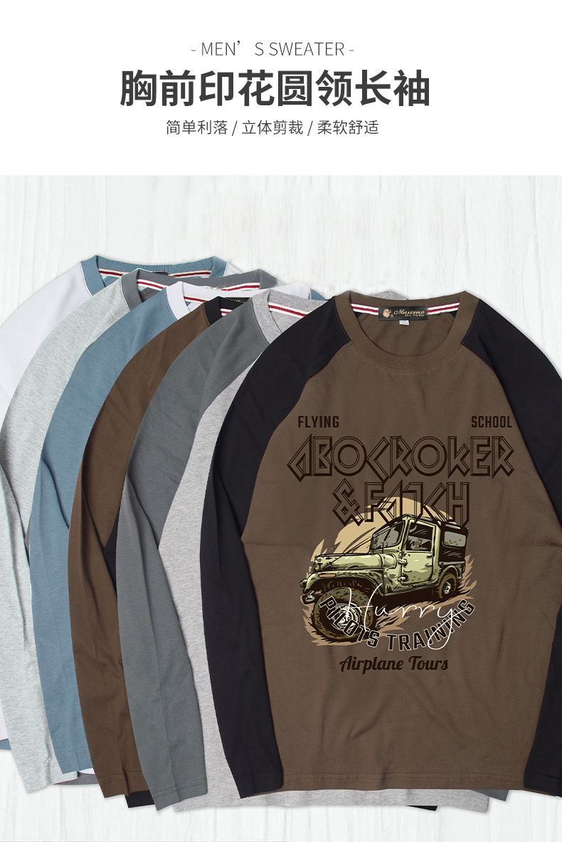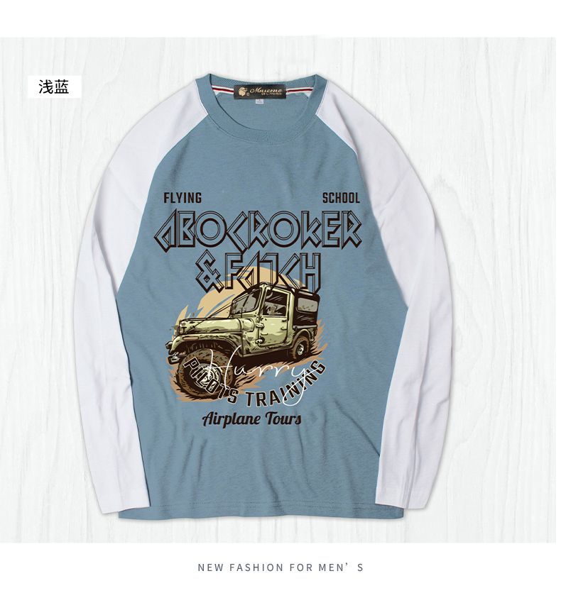 商品名称:曼西尔奴男士潮流时尚纯棉个性字母印花拼色百搭休闲圆领长袖T恤121145TM