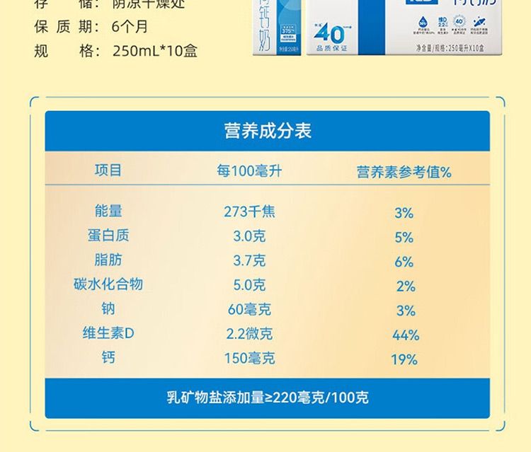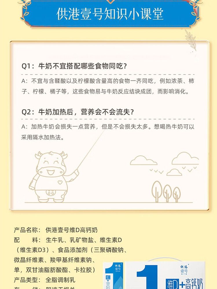 商品名称:晨光 供港壹号维D高钙牛奶VD 250ml*10盒