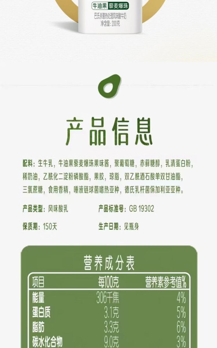 商品名称:君乐宝牛油果藜麦爆珠酸奶利乐冠200g*10