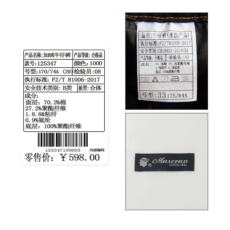 商品名称:曼西尔奴男士潮流冬季加绒加厚商务休闲百搭保暖直筒牛仔裤125347TM