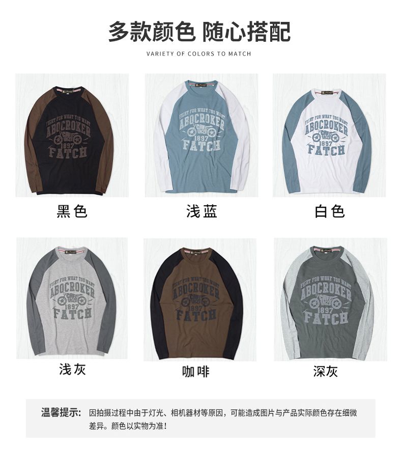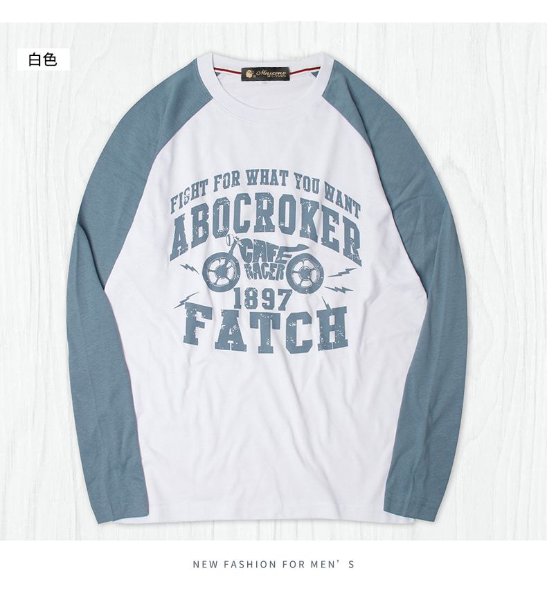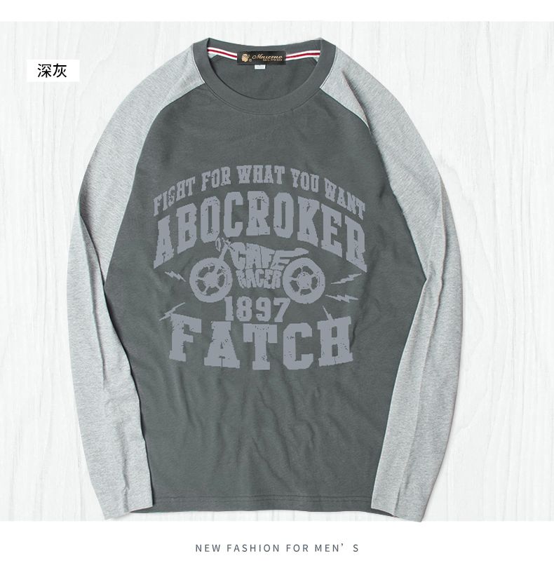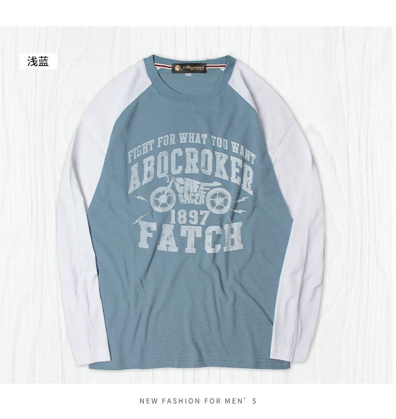 商品名称:曼西尔奴男士潮流时尚纯棉百搭休闲修身个性字母印花圆领长袖T恤121144TM
