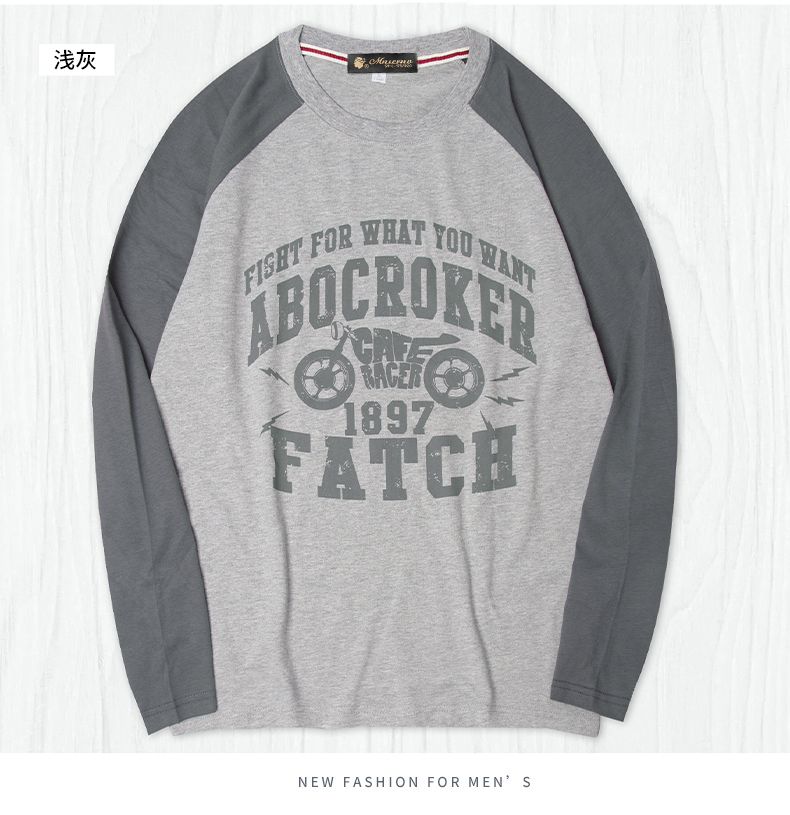 曼西尔奴男士潮流时尚纯棉百搭休闲修身个性字母印花圆领长袖T恤121144TM