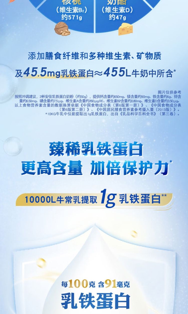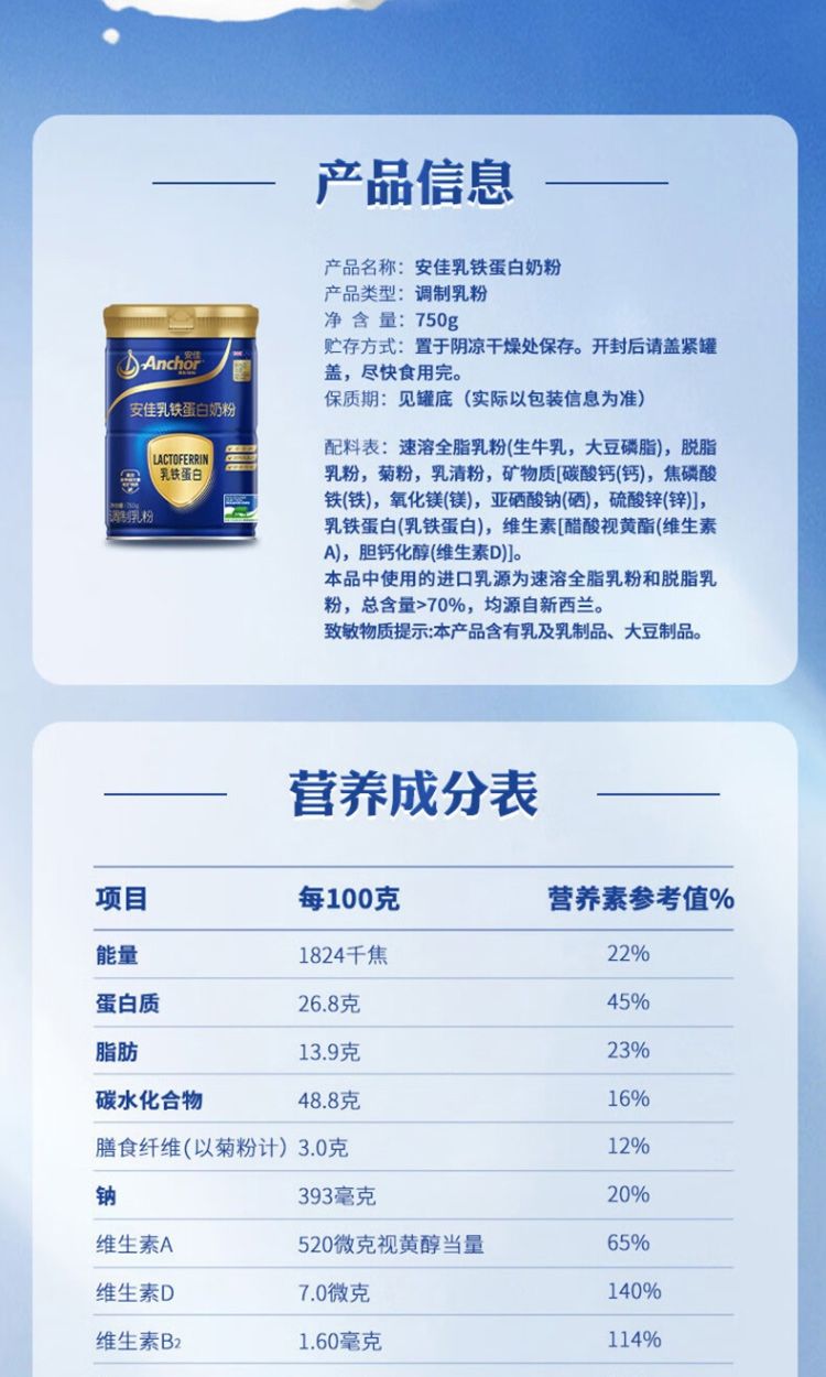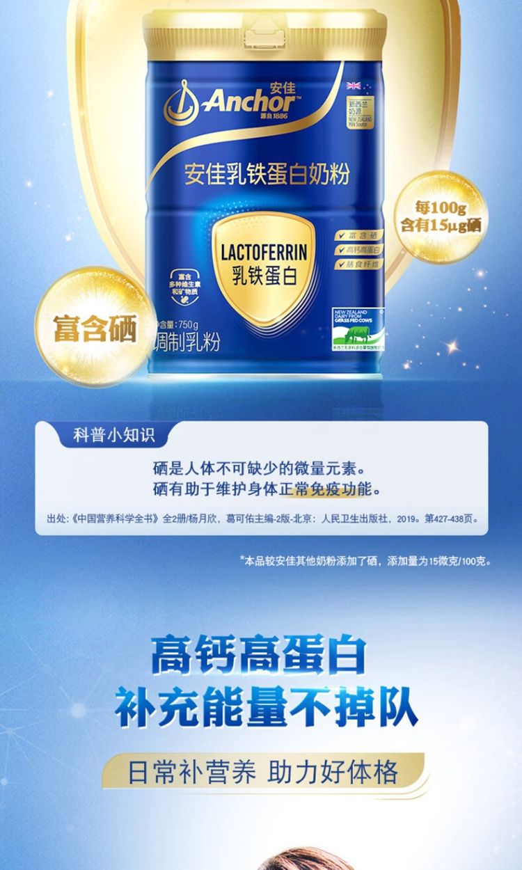 商品名称:安佳 高钙高蛋白成人奶粉乳铁蛋白 750g
