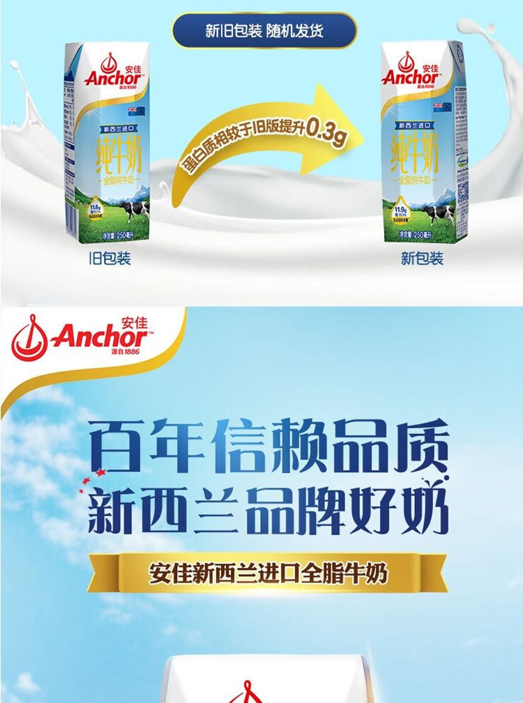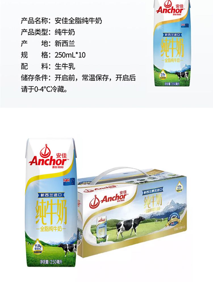 商品名称:新西兰进口安佳全脂纯牛奶250ml*10盒