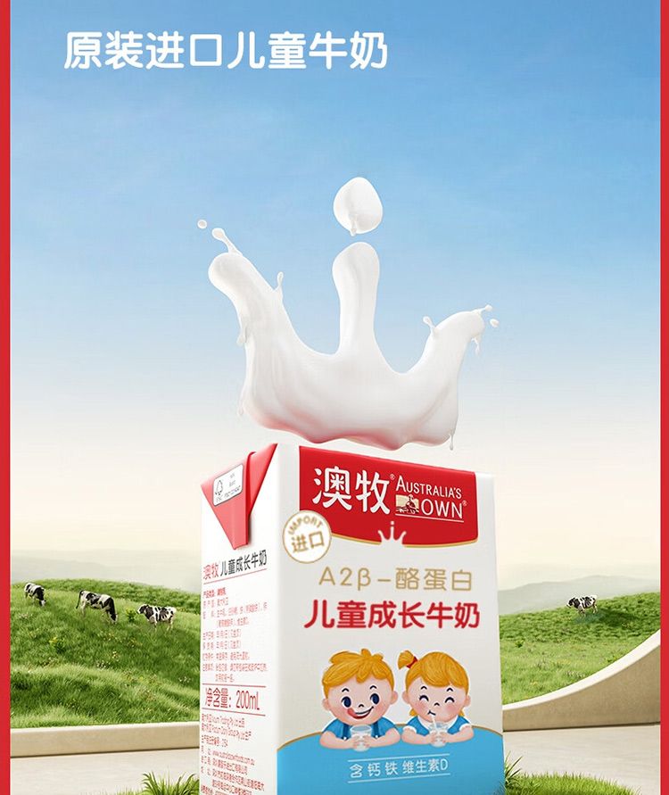 澳牧儿童成长牛奶(0蔗糖装)200ml*15盒