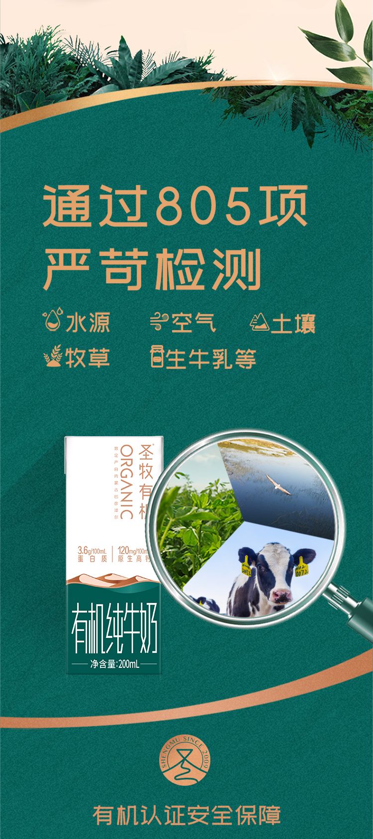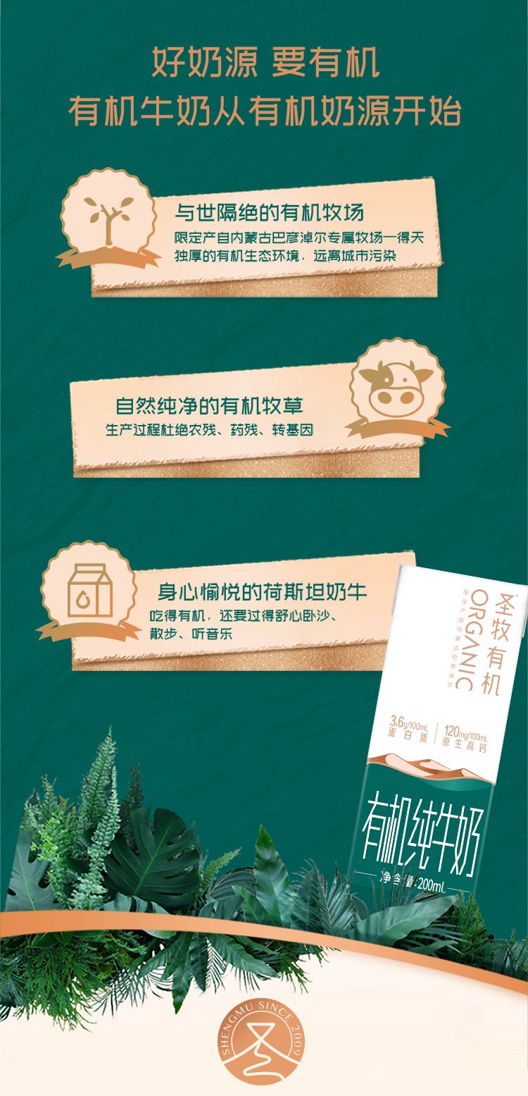 圣牧沙漠有机纯牛奶精选装200ml*10盒