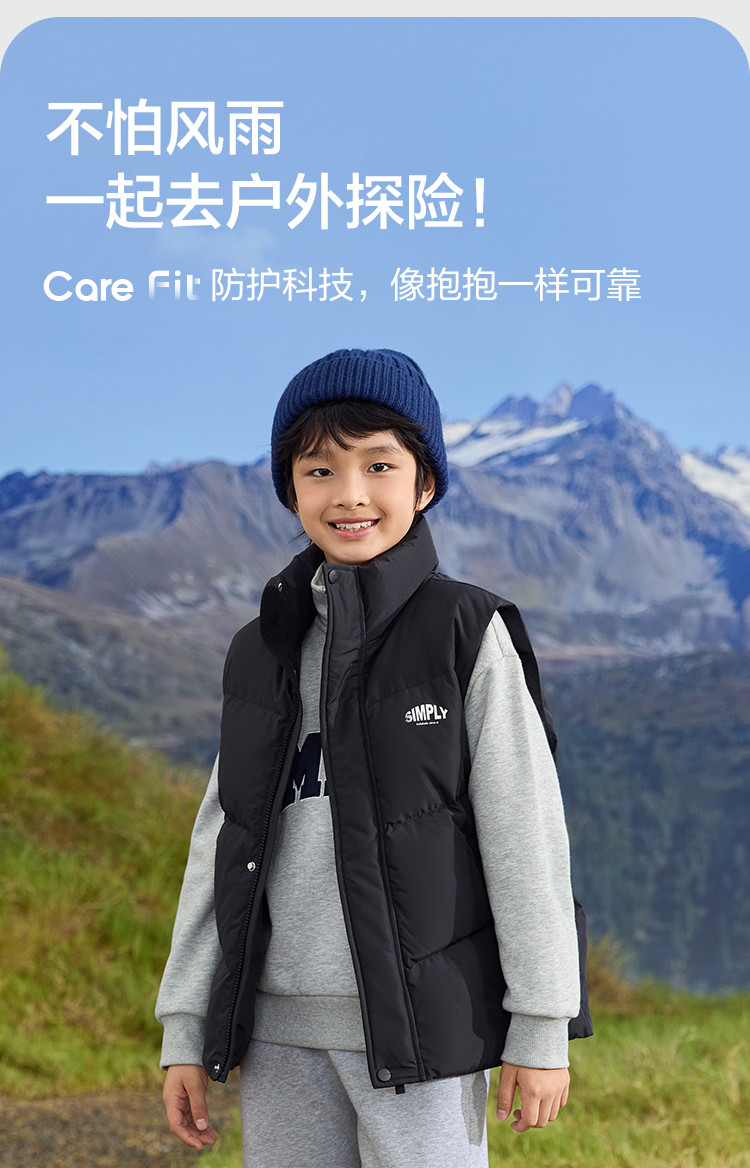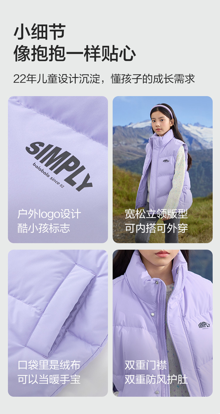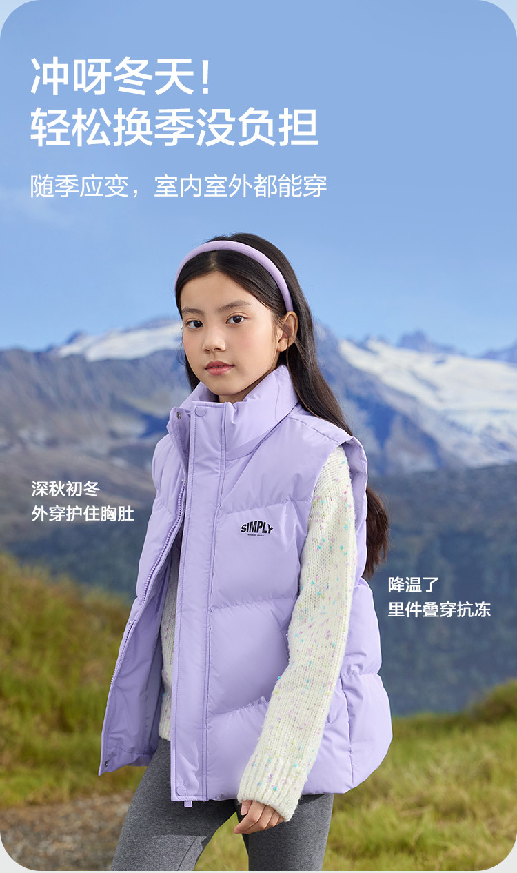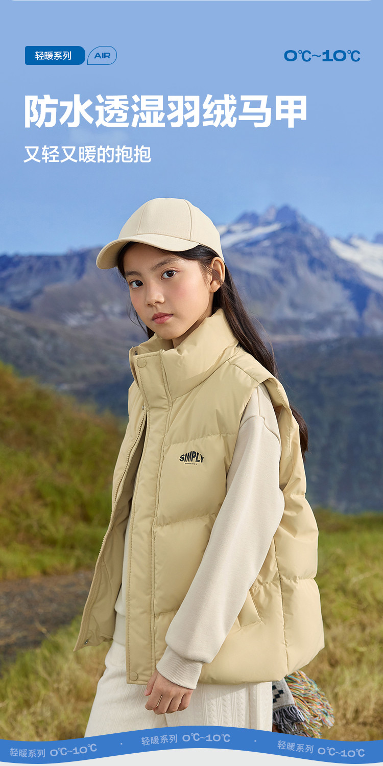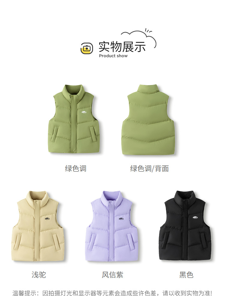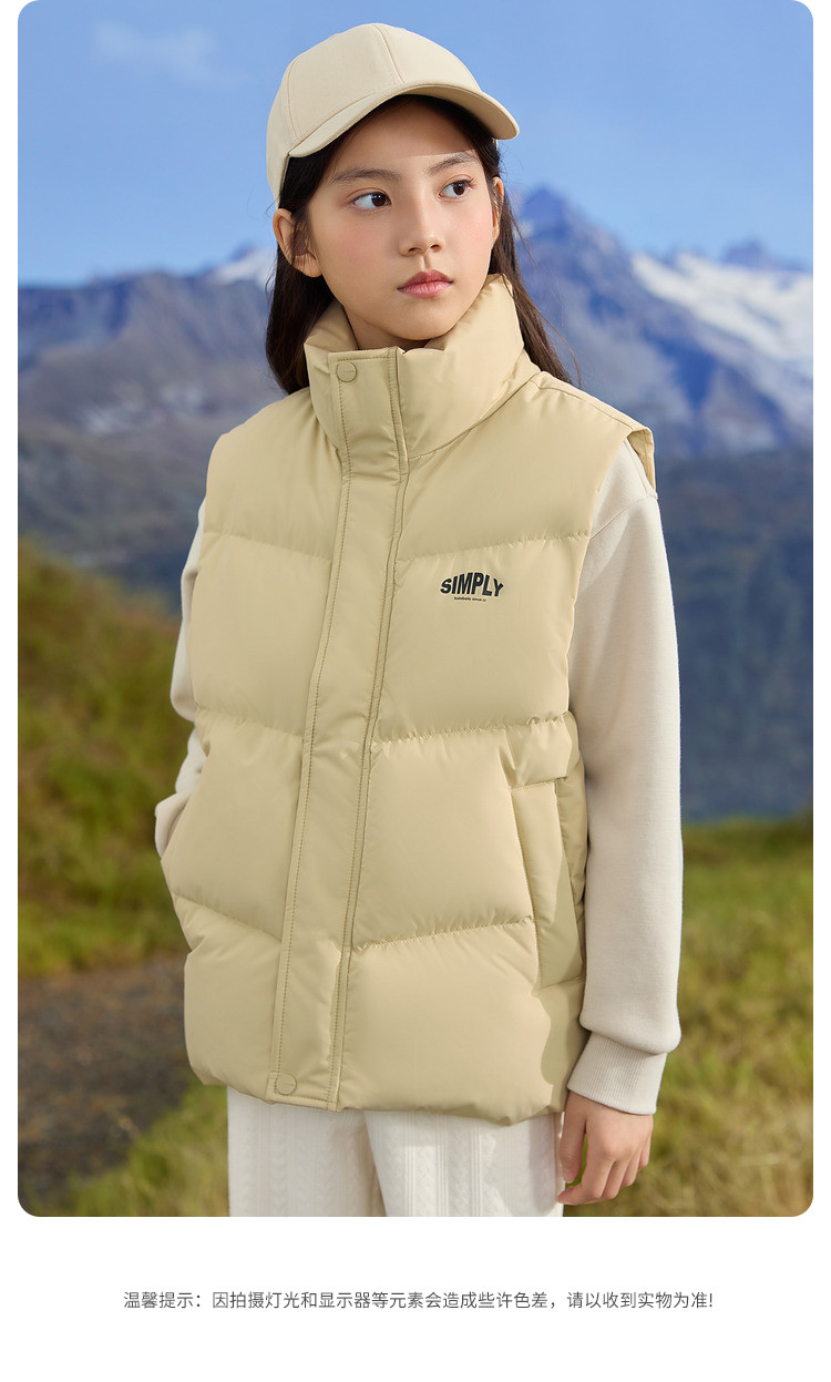 商品名称:防水透湿儿童羽绒马甲男童女童秋冬中大童外套背心小童青少年上衣 881925