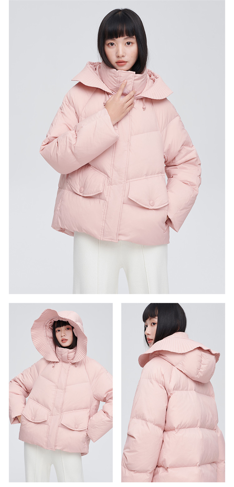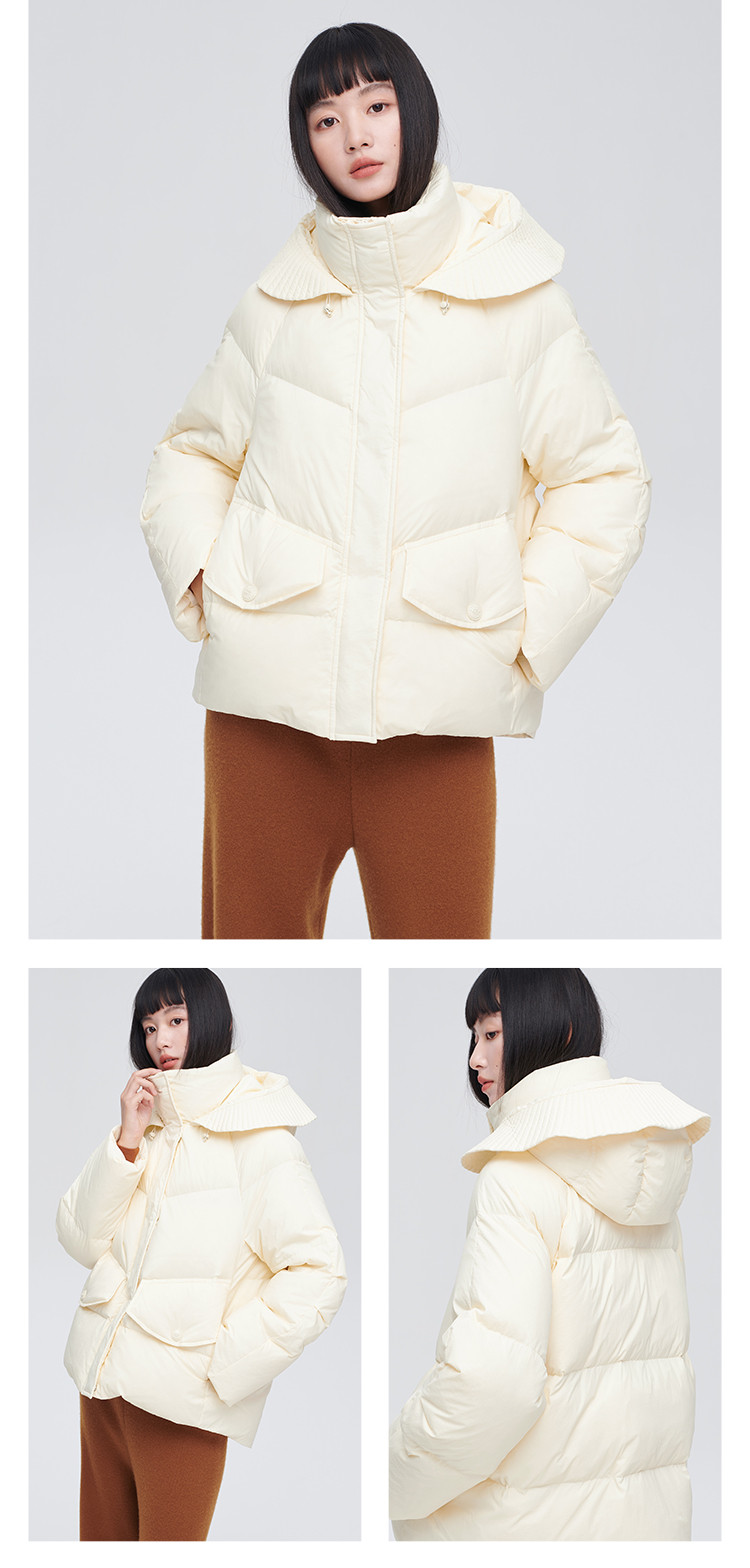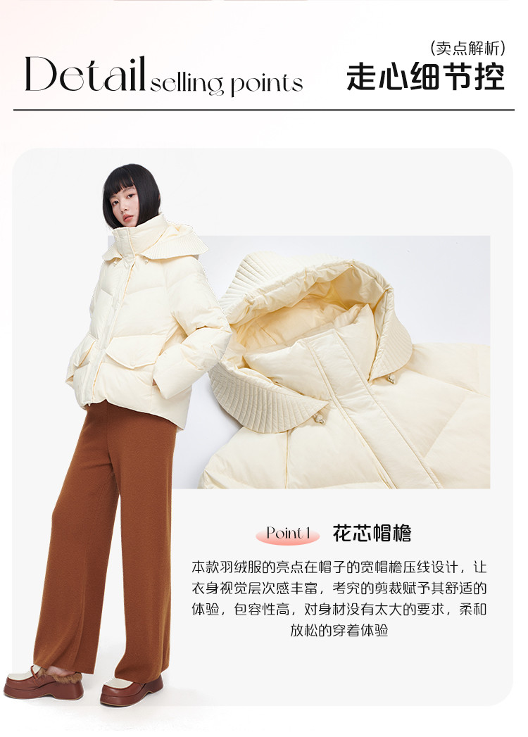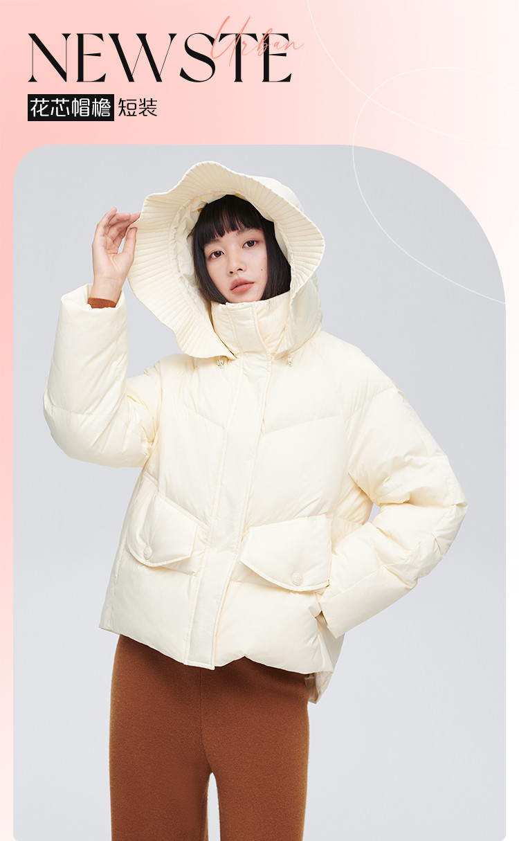 商品名称:商场同款时尚甜美花芯帽檐鸭绒羽绒服女短款连帽御寒女式外套 332118