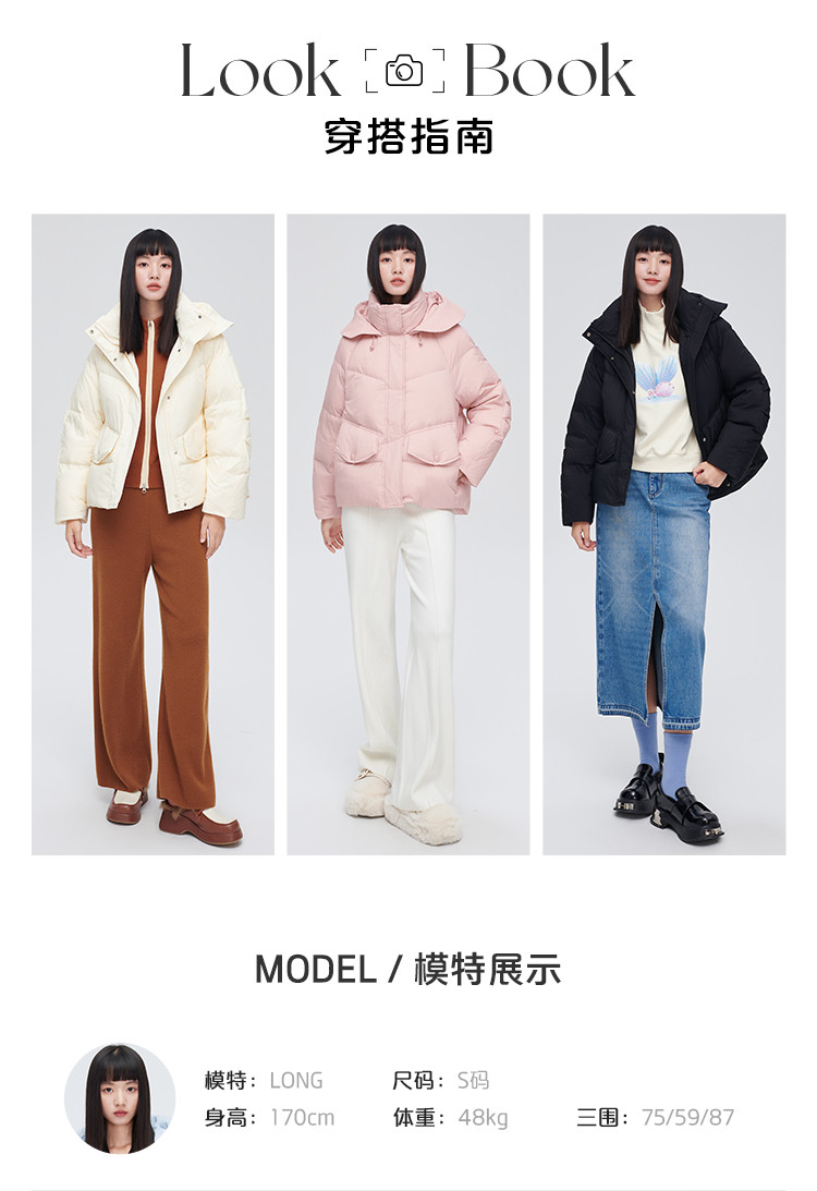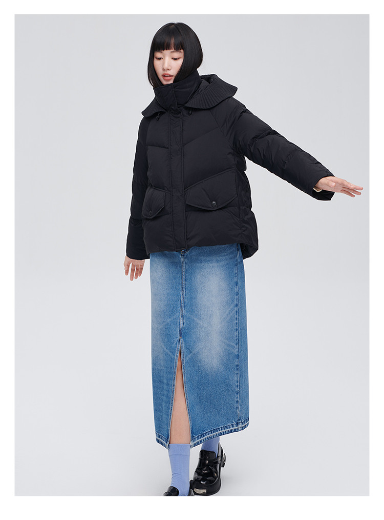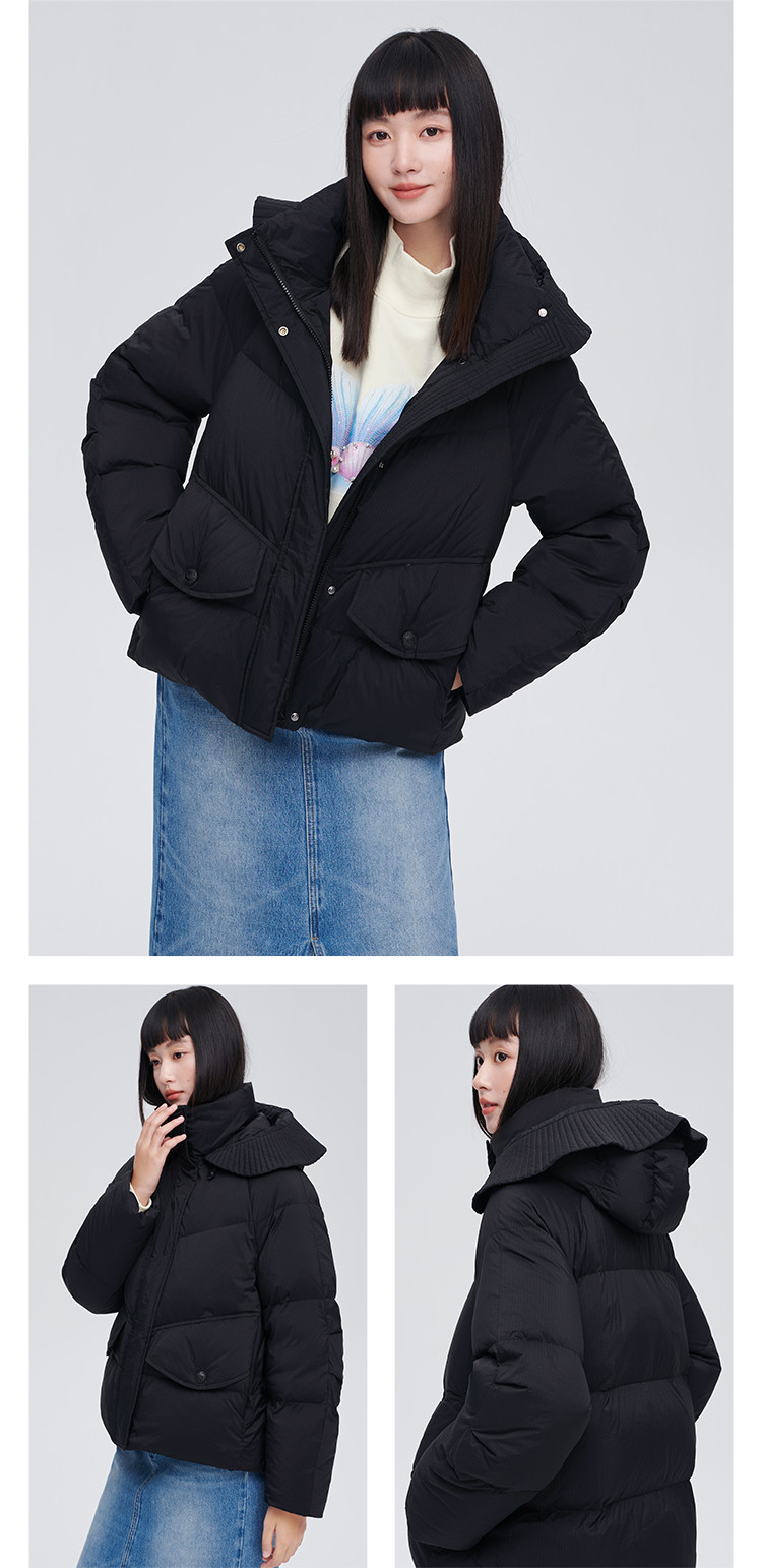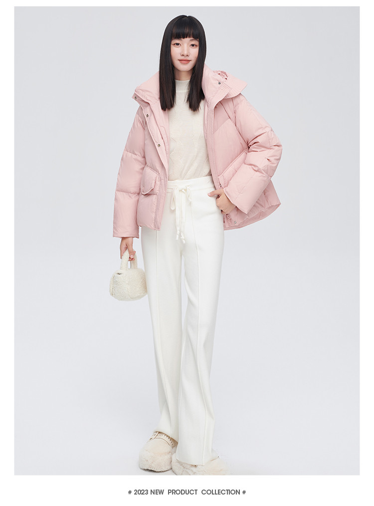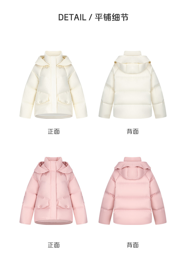 商品名称:商场同款时尚甜美花芯帽檐鸭绒羽绒服女短款连帽御寒女式外套 332118