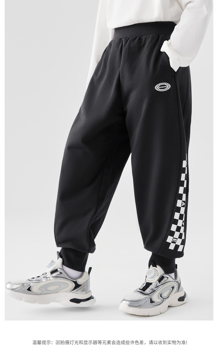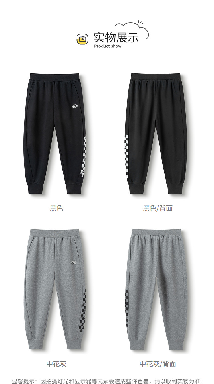 商品名称:宽松束脚裤棋盘格印花男童长裤儿童春秋装童装男大童小童裤子运动 672965