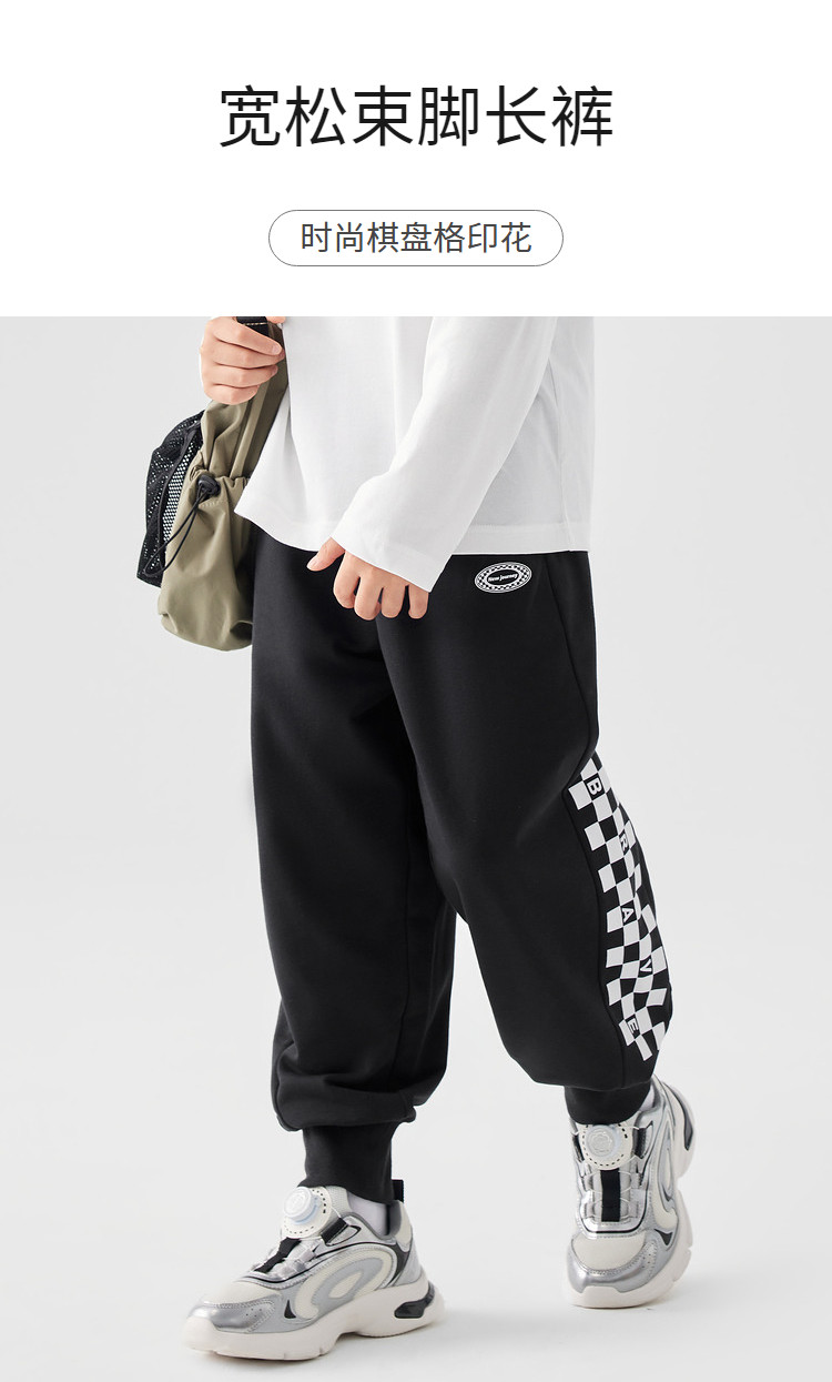 宽松束脚裤棋盘格印花男童长裤儿童春秋装童装男大童小童裤子运动 672965