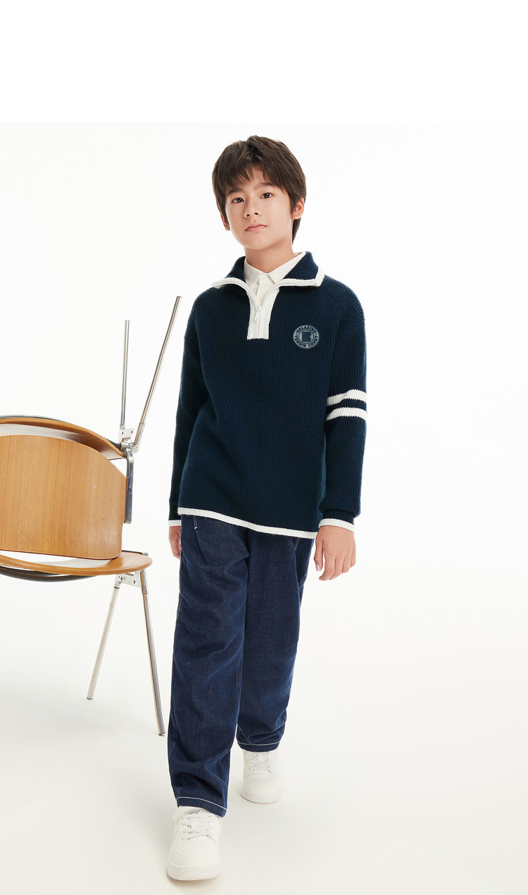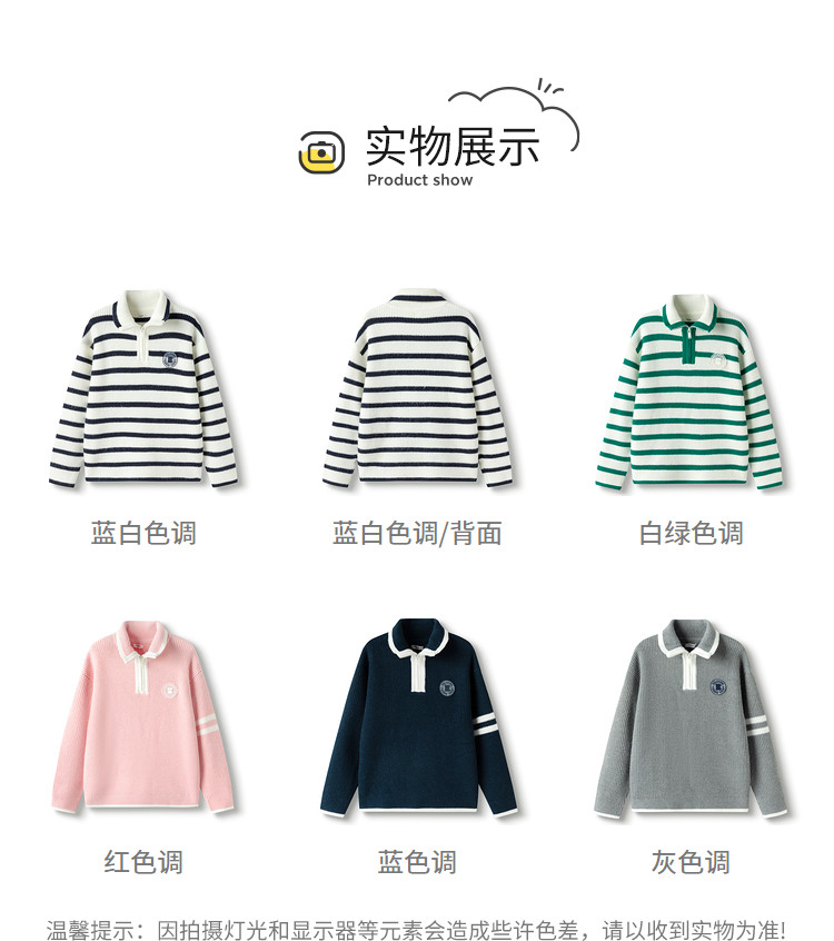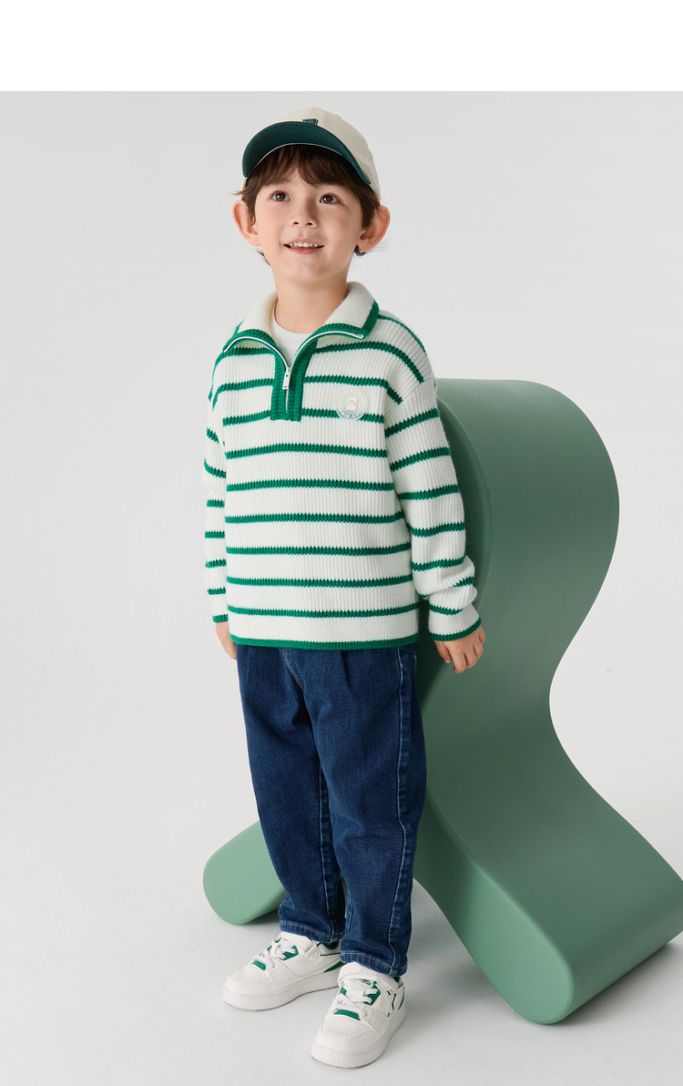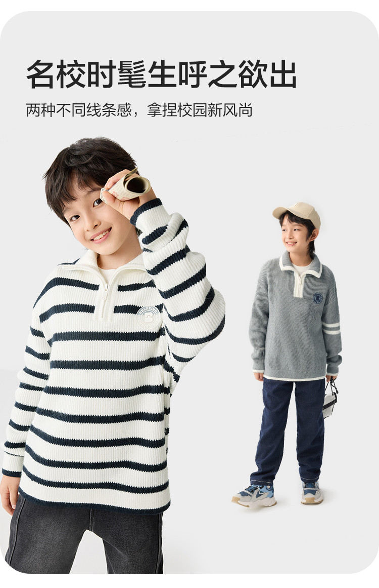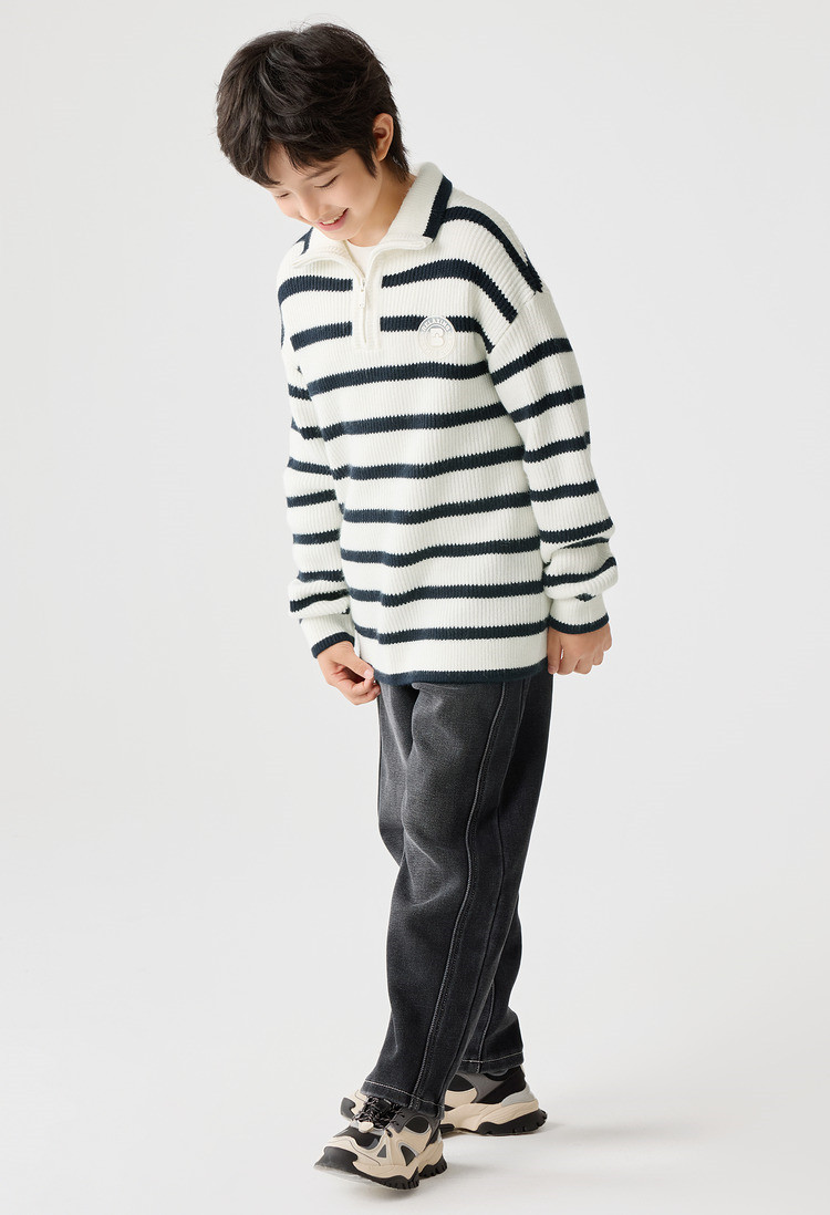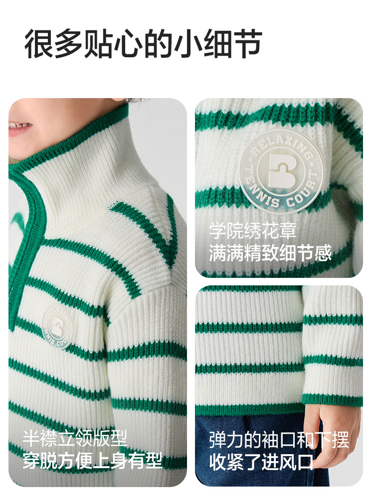商品名称:亲子立领开襟儿童毛衣男童女童条纹打底秋冬童装大童 190021