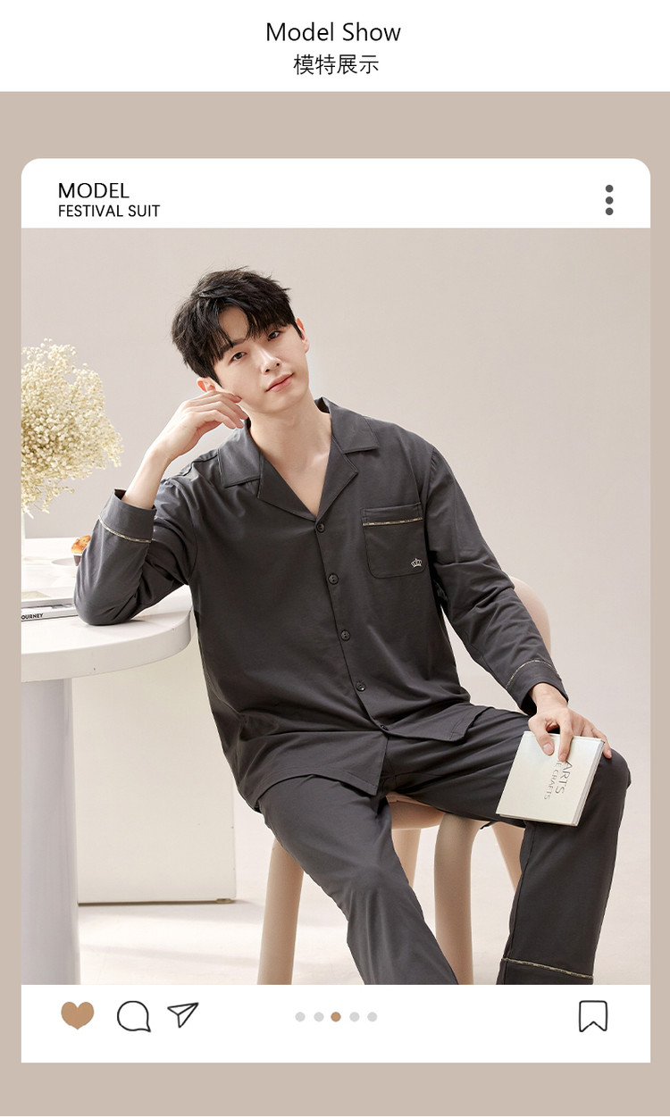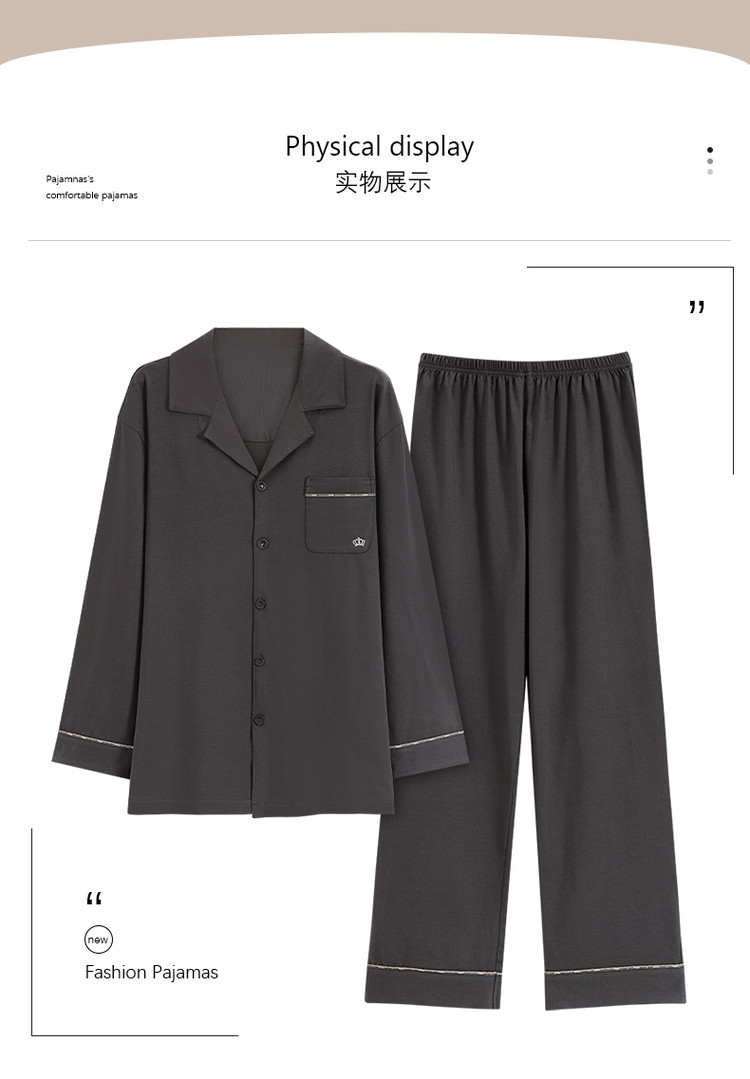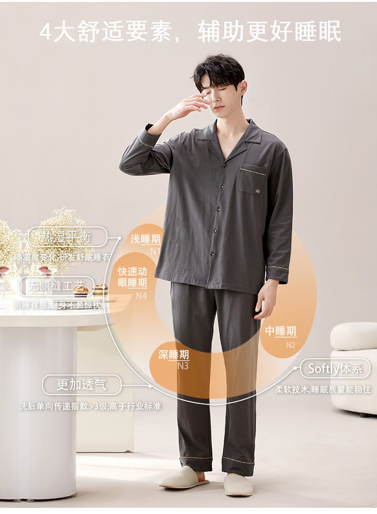 商品名称:【100%新疆棉】秋季纯棉透气男士经典翻领长袖家居服男士睡衣 022603
