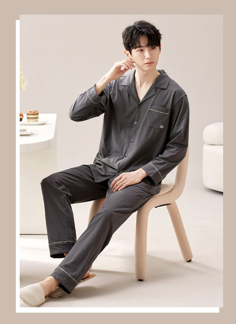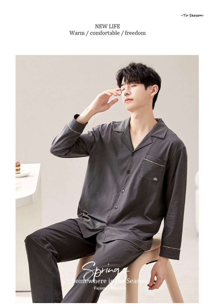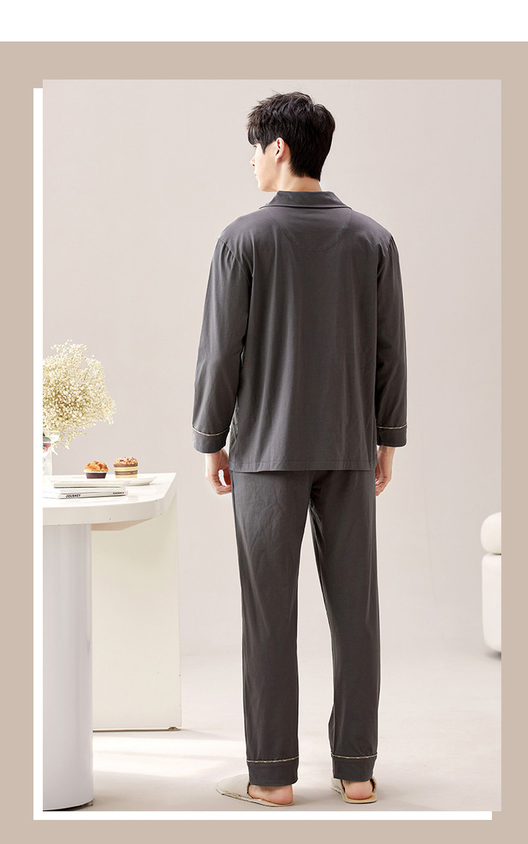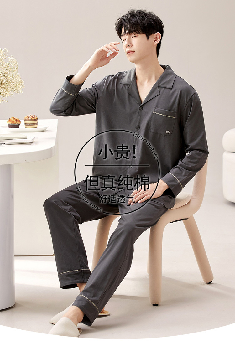 【100%新疆棉】秋季纯棉透气男士经典翻领长袖家居服男士睡衣 022603
