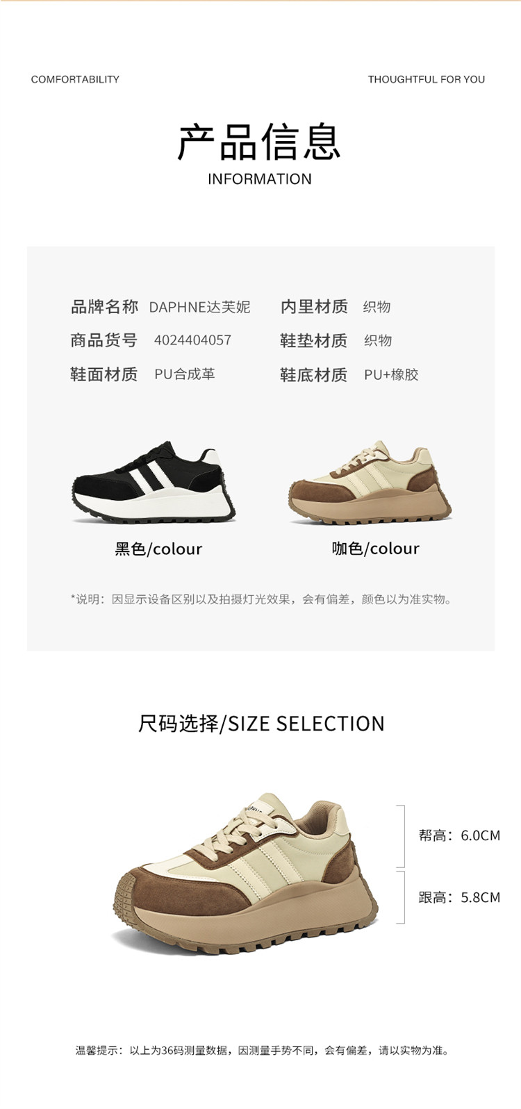 商品名称:德训鞋女春夏复古休闲鞋厚底鞋轻便百搭小个子增高鞋舒适运动鞋 874135