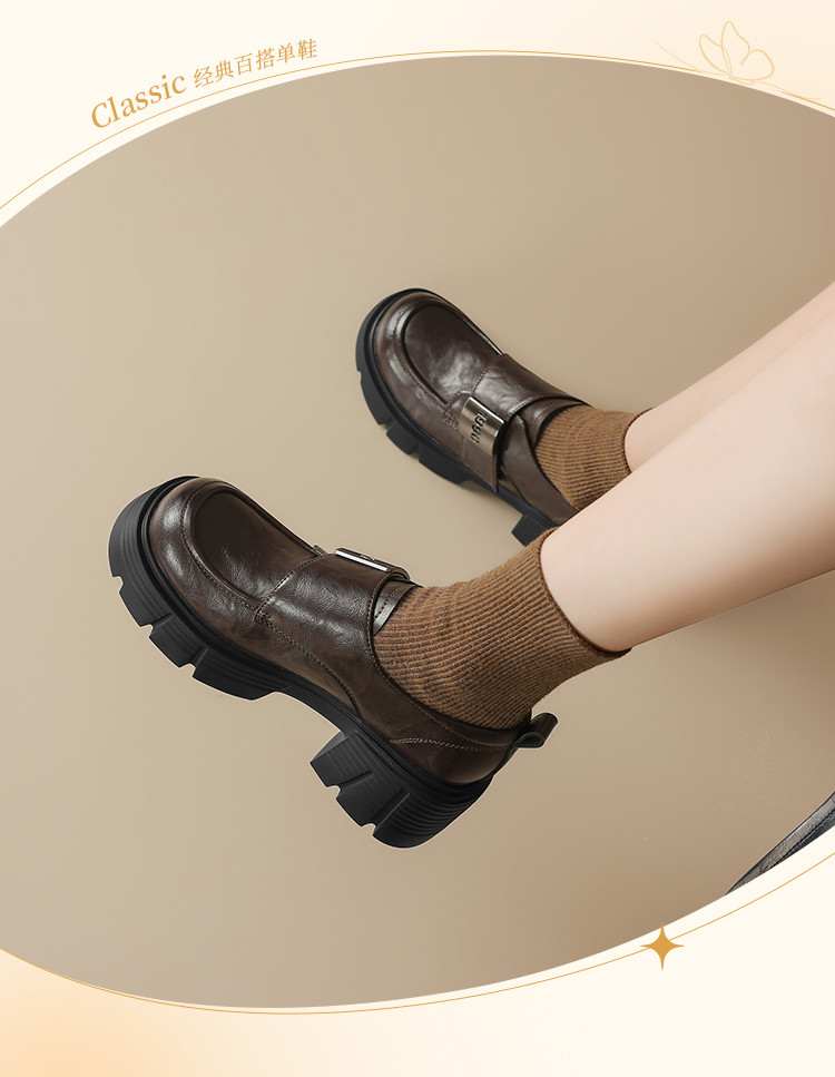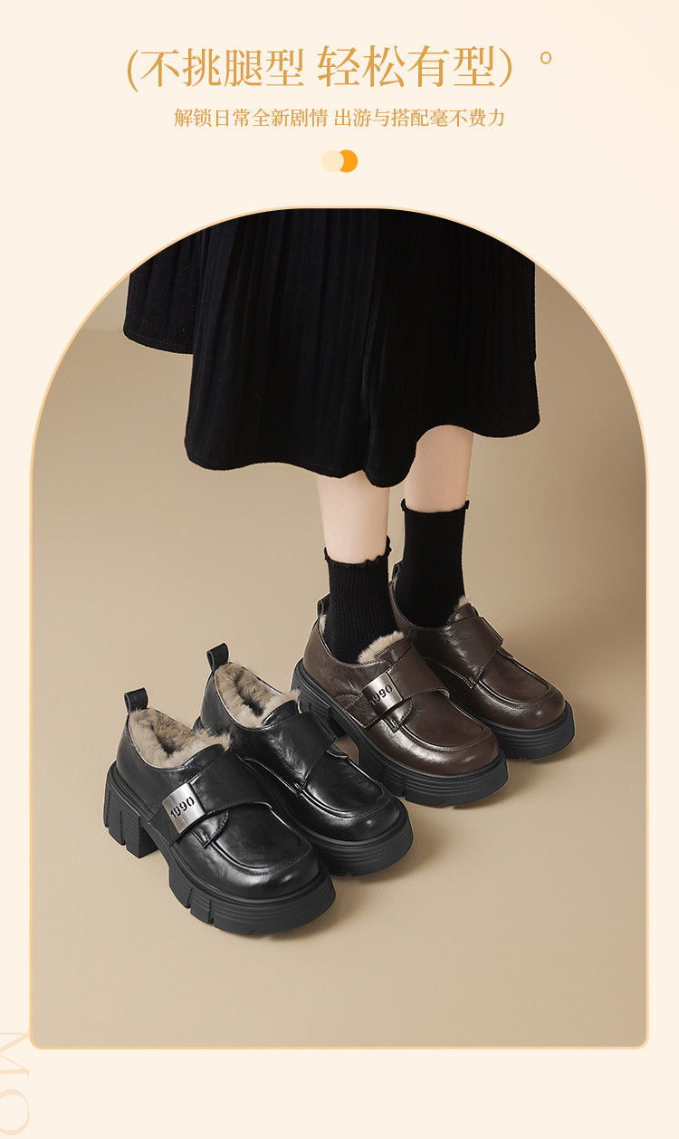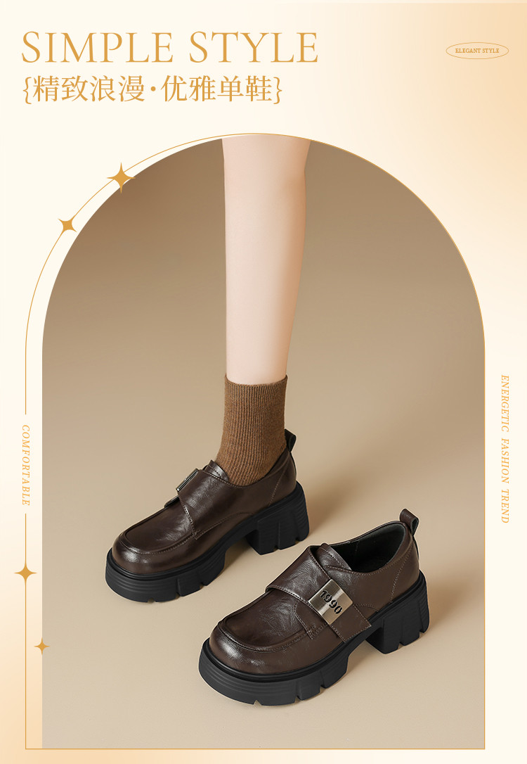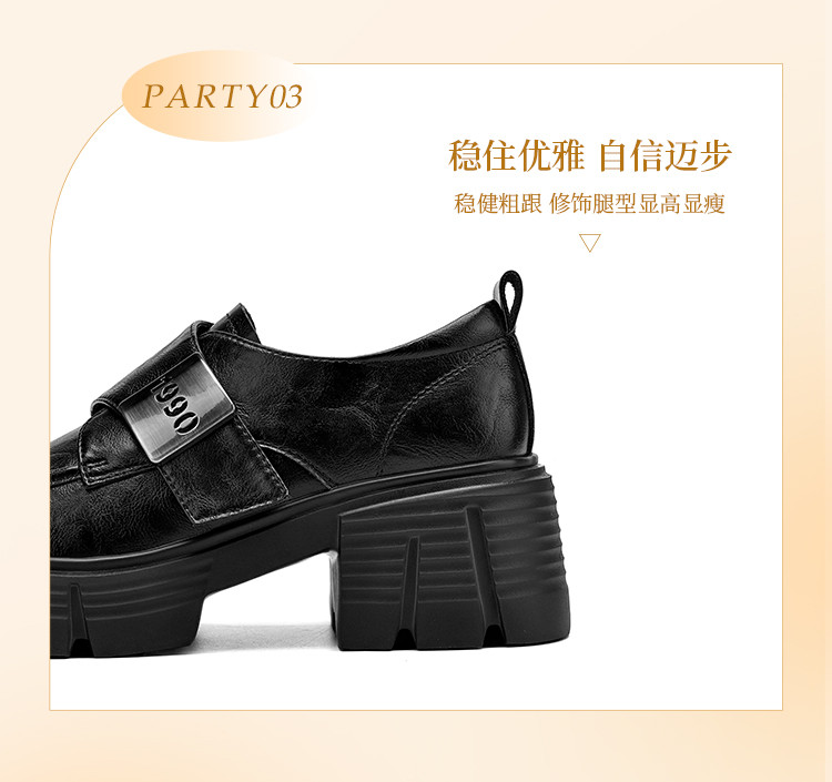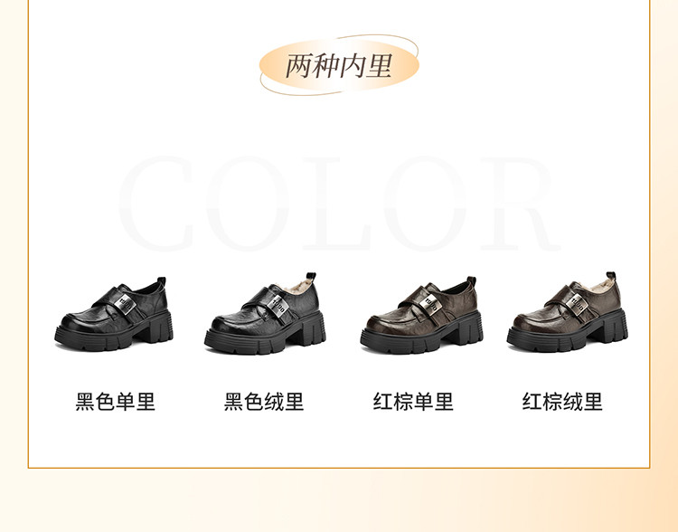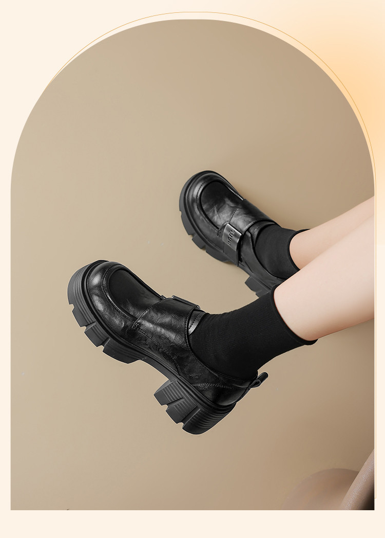 商品名称:春秋乐福鞋粗跟增高小皮鞋加绒可选厚底JK制服鞋时尚百搭女单鞋 170650