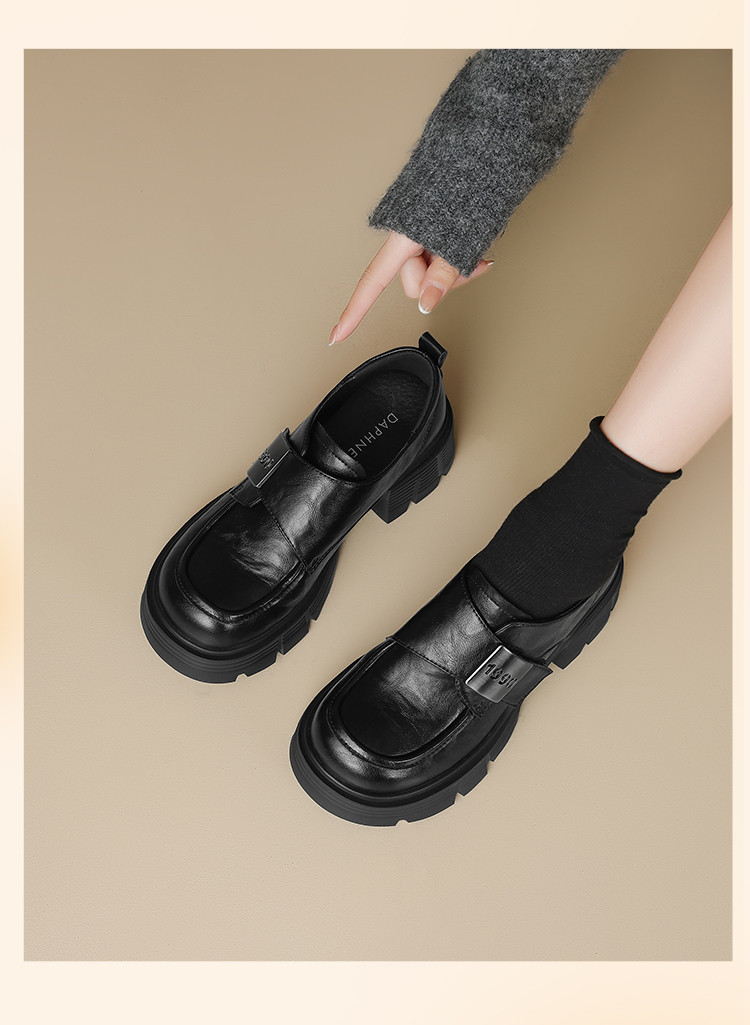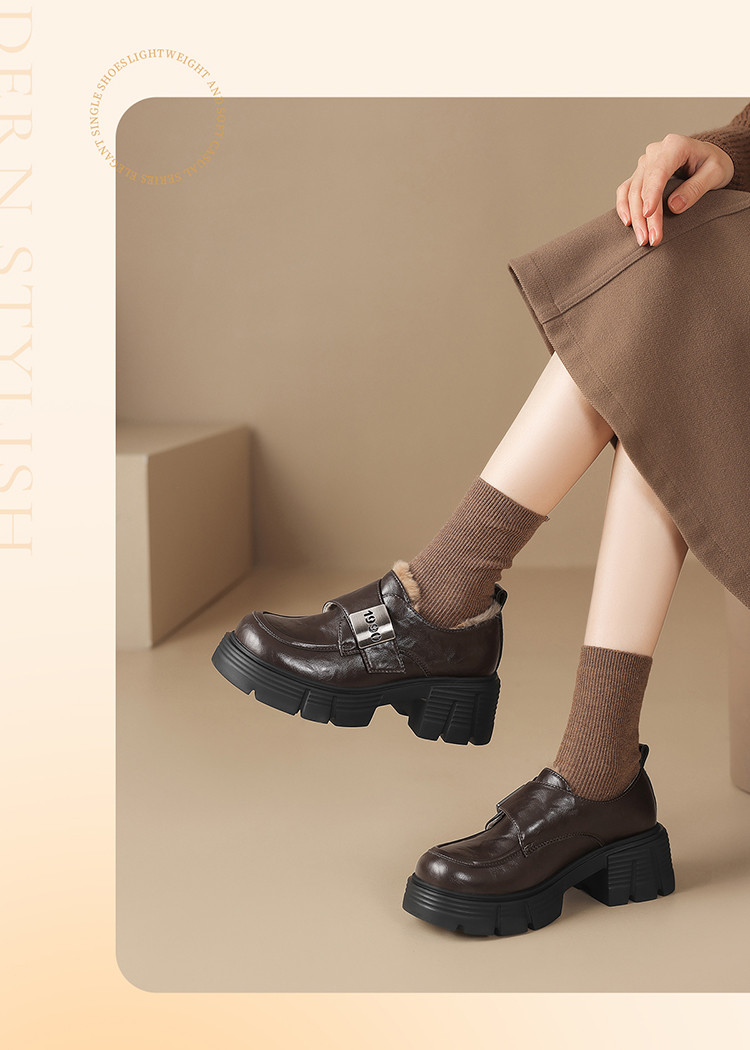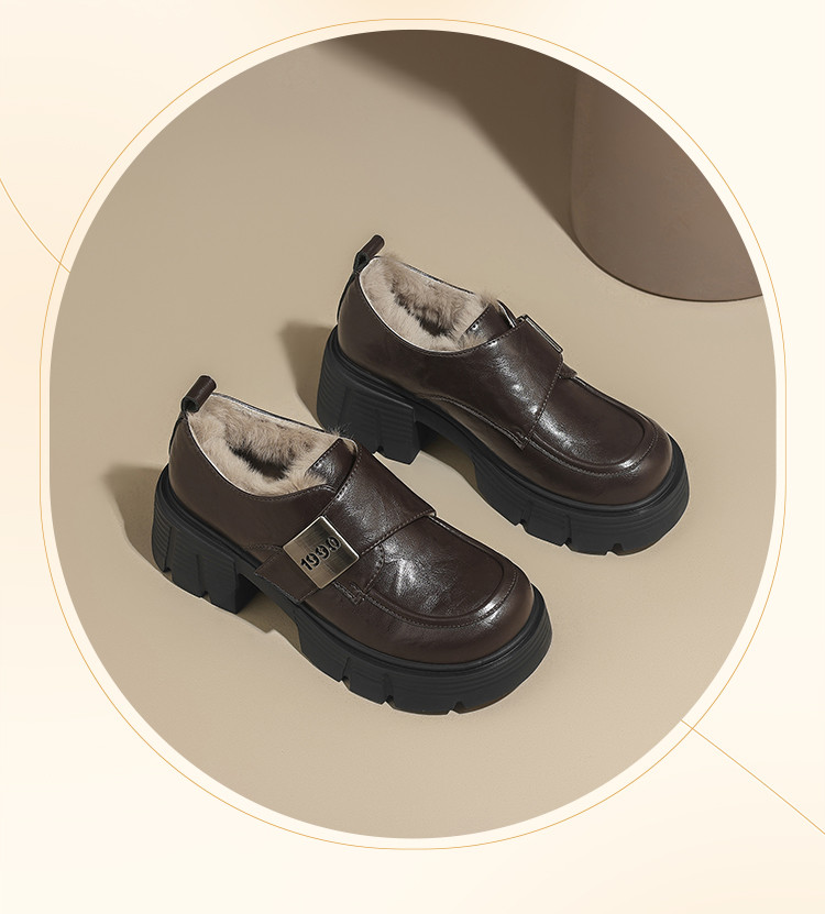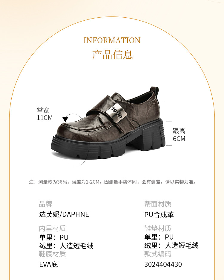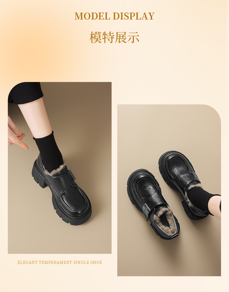 商品名称:春秋乐福鞋粗跟增高小皮鞋加绒可选厚底JK制服鞋时尚百搭女单鞋 170650