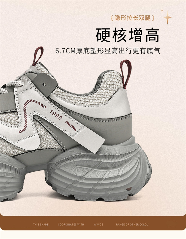 商品名称:女鞋春夏百搭老爹鞋网面鞋ins风潮流厚底增高鞋轻便运动休闲鞋 191191