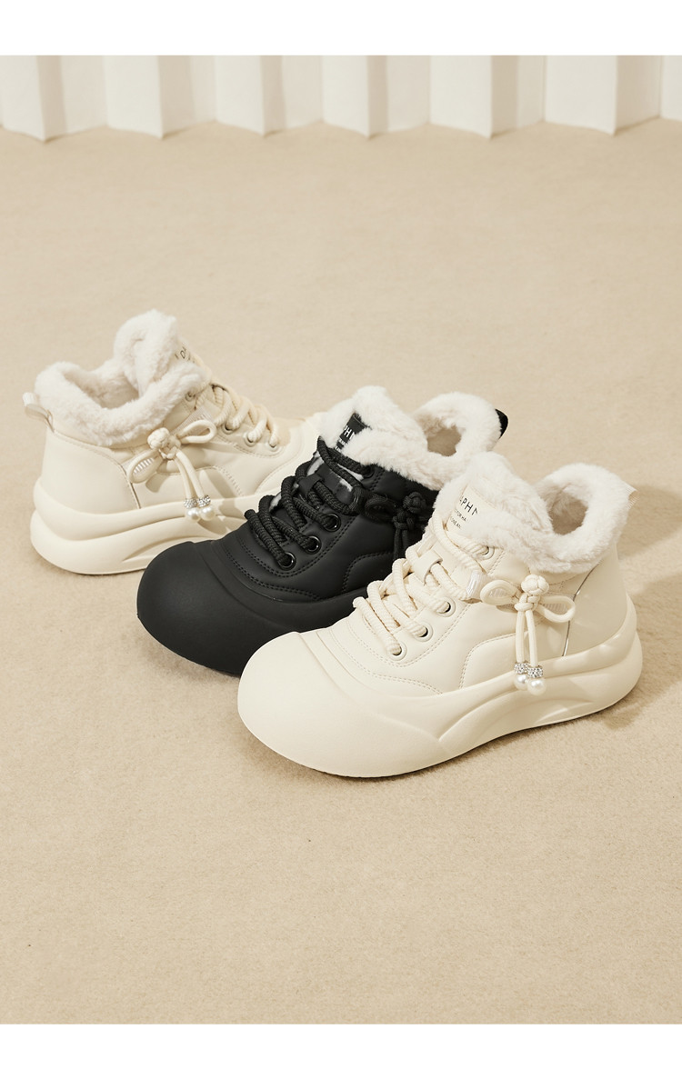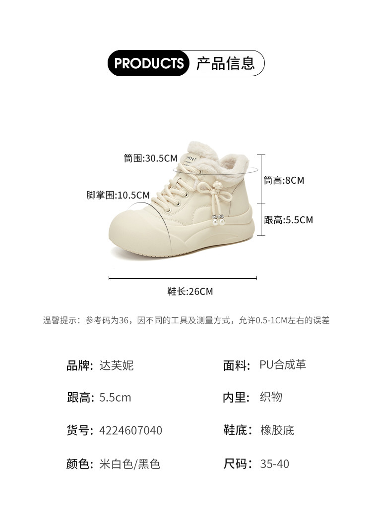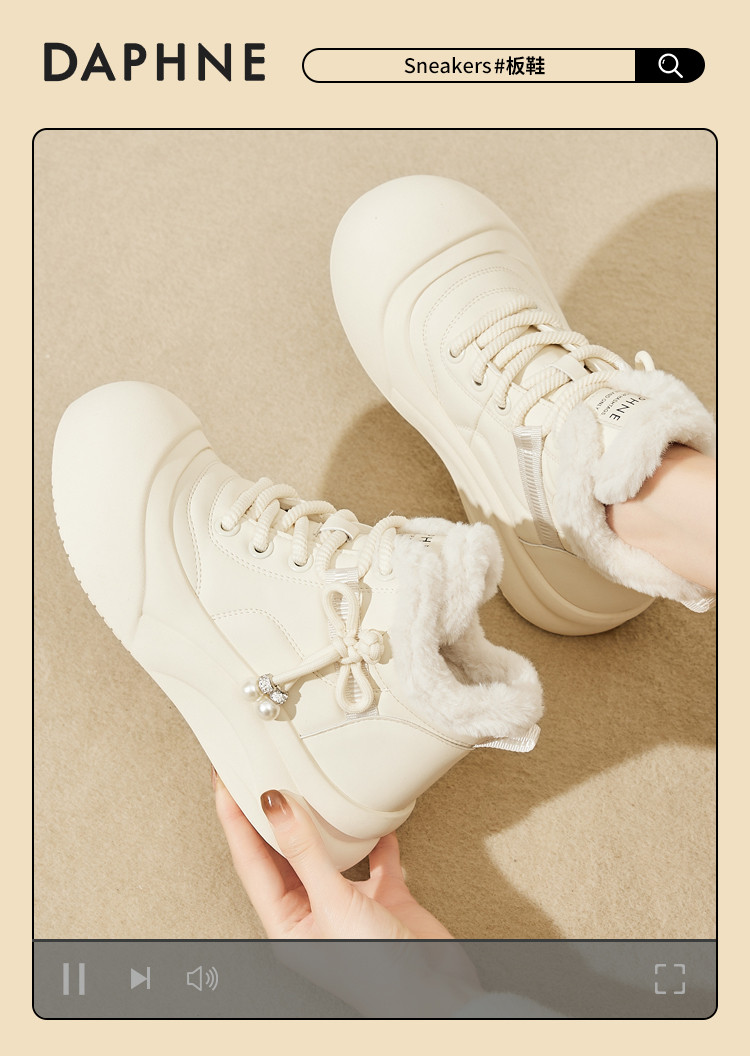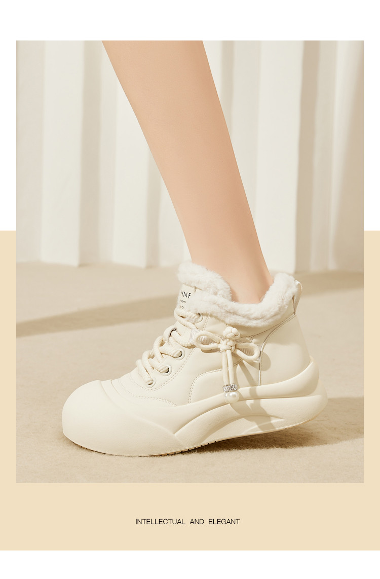 商品名称:休闲鞋女2025新款百搭秋冬加绒保暖厚底板鞋女增高小白鞋棉鞋 760535