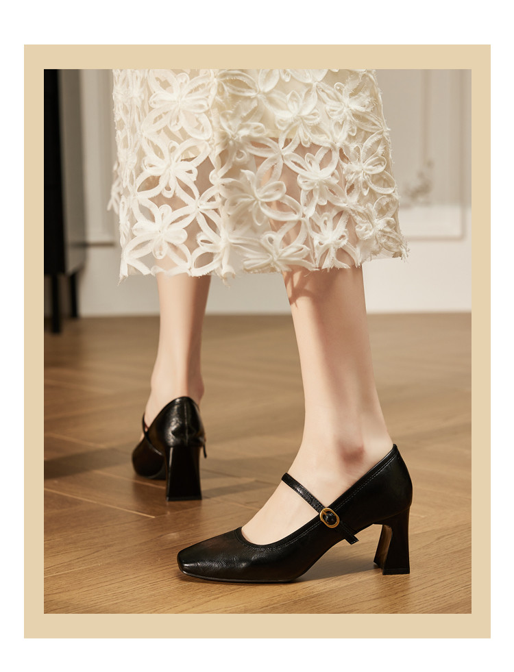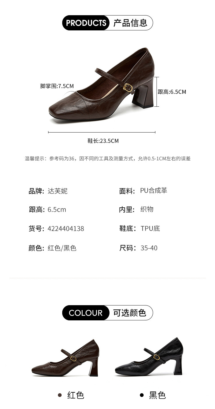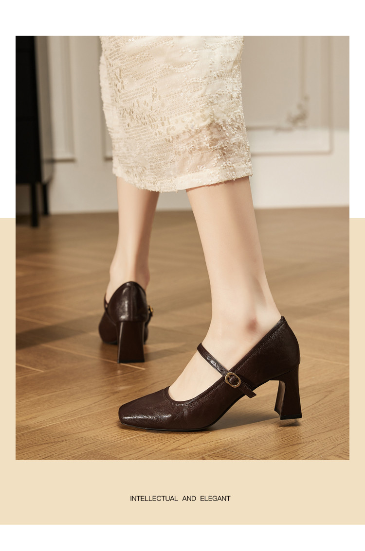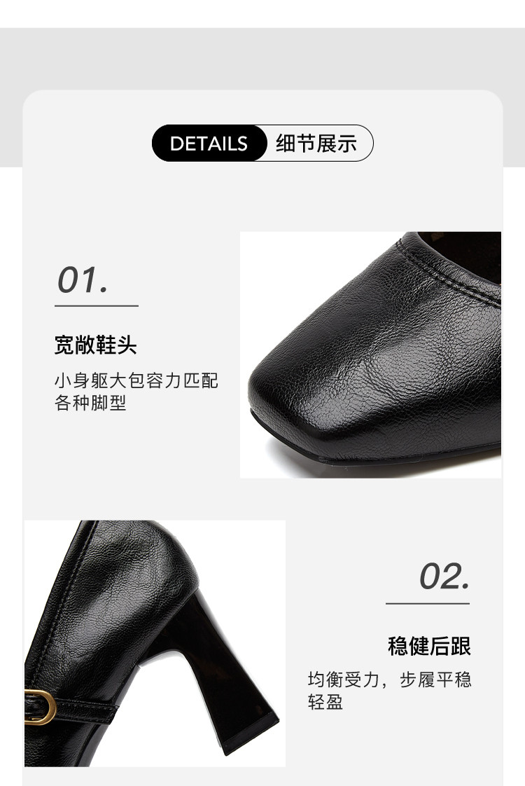 商品名称:气质玛丽珍女鞋2025春秋新款粗跟百搭小皮鞋时装鞋子妈妈鞋女 194711