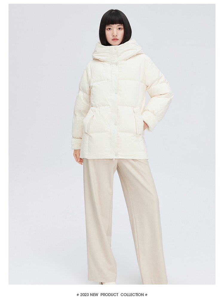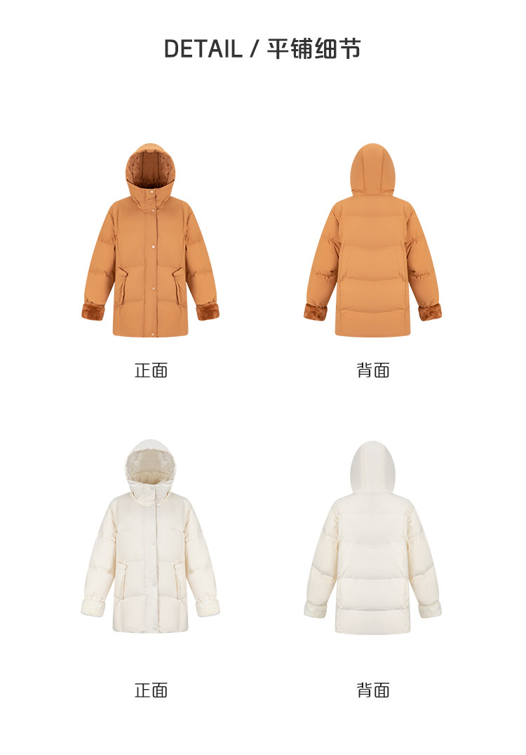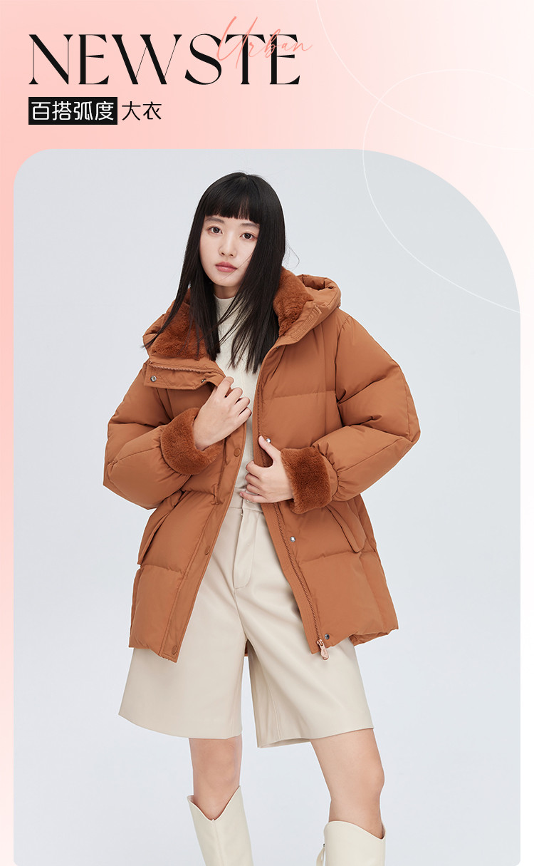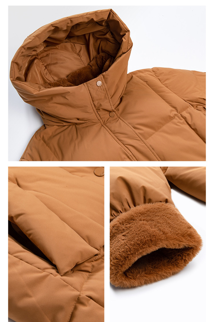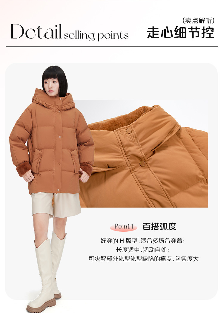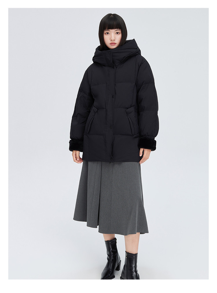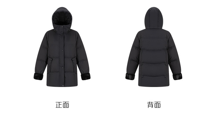 商品名称:时尚百搭H型中长款羽绒服女秋冬御寒连帽商场同款鸭绒服女式外套 024918