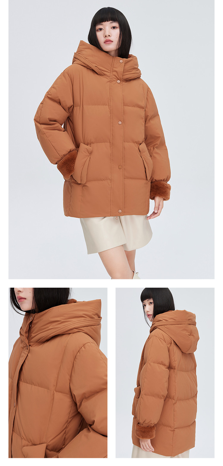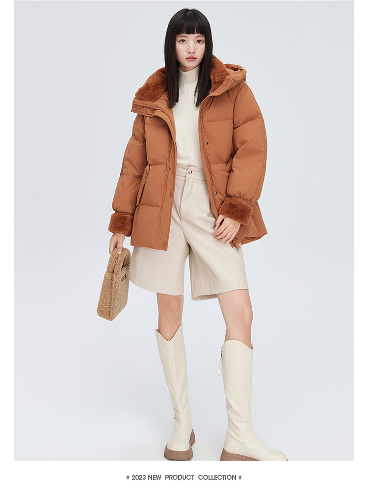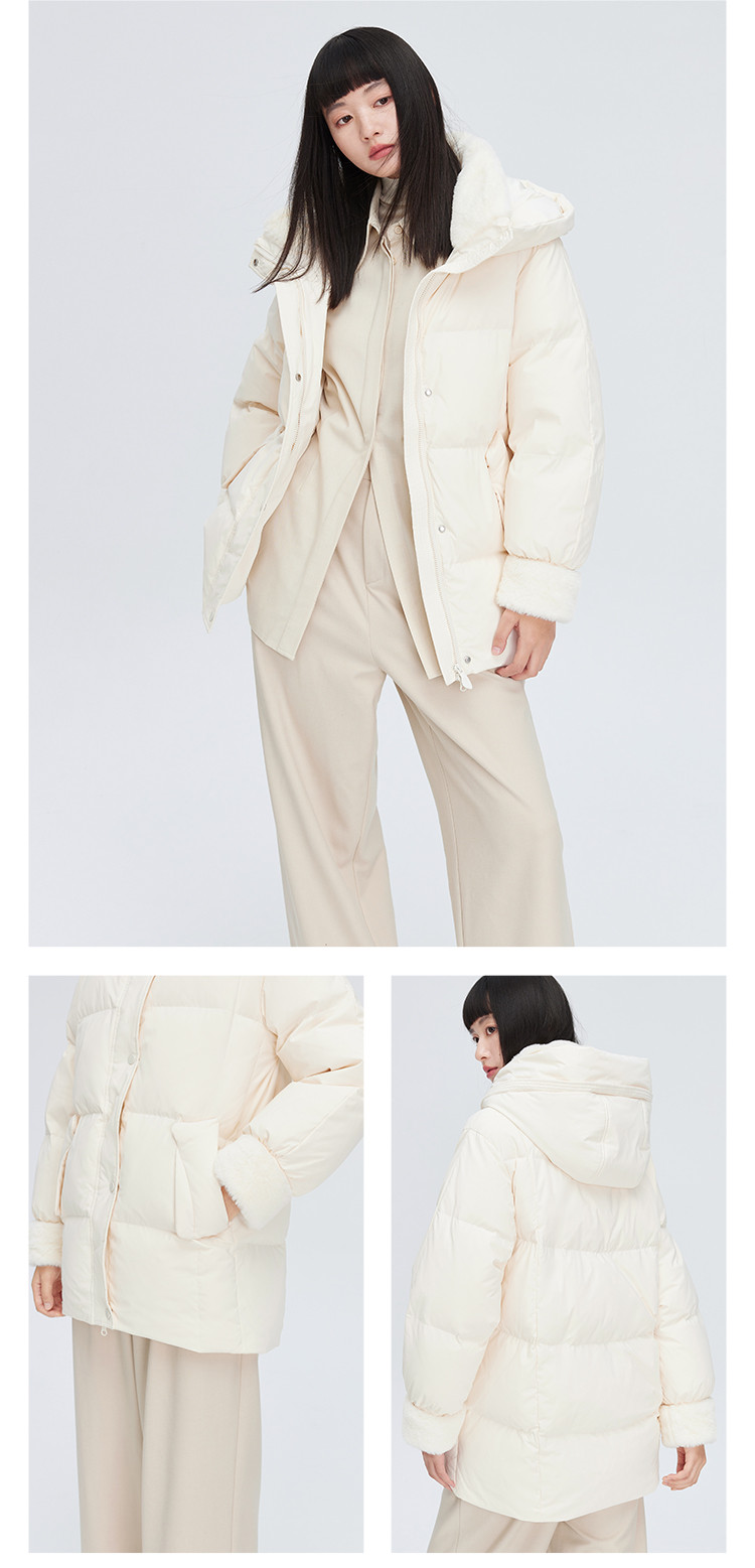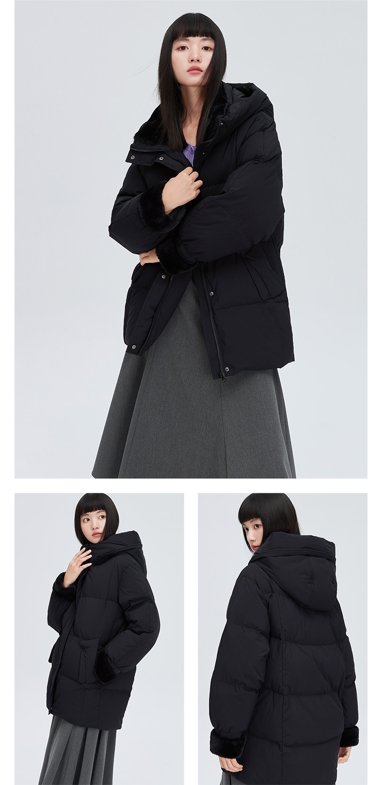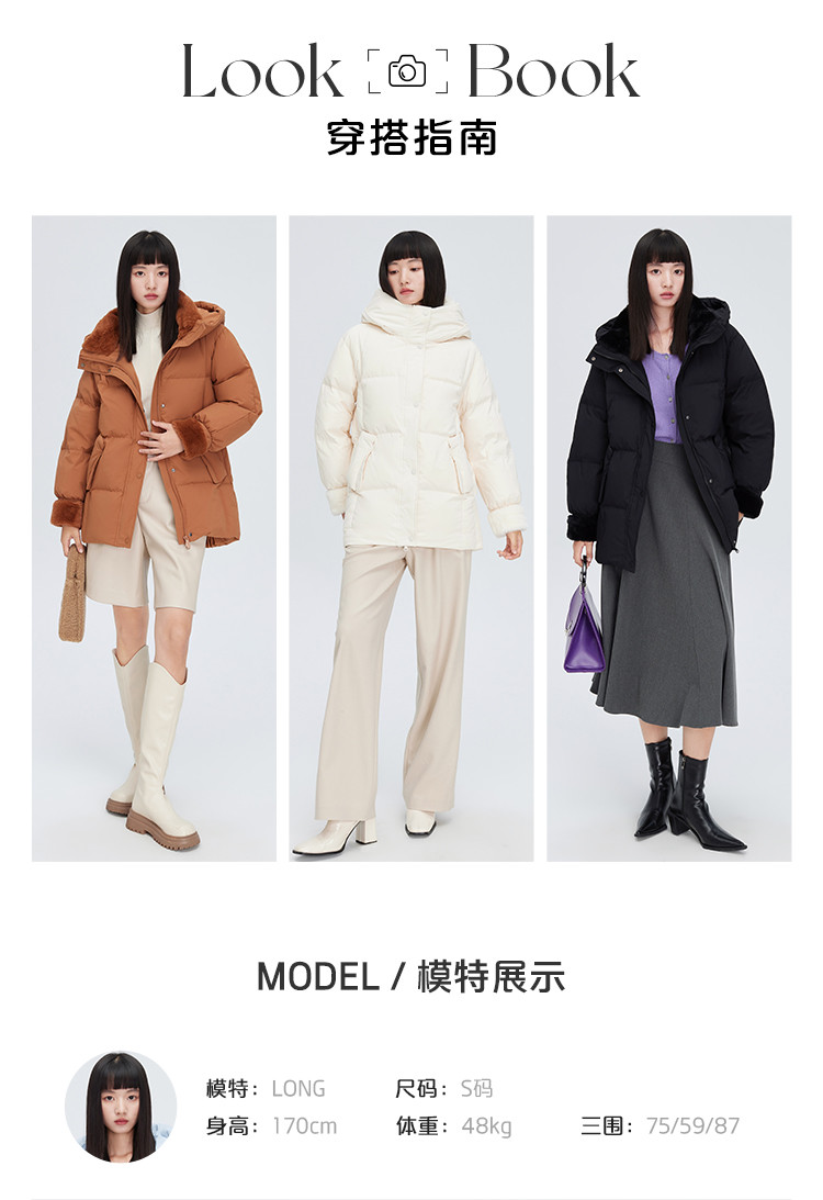 商品名称:时尚百搭H型中长款羽绒服女秋冬御寒连帽商场同款鸭绒服女式外套 024918
