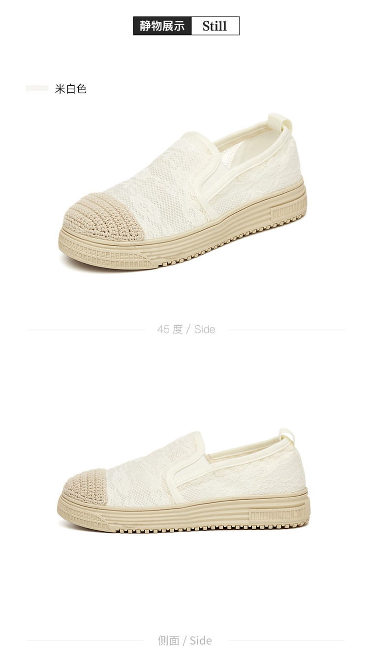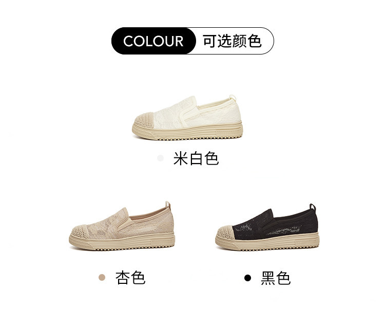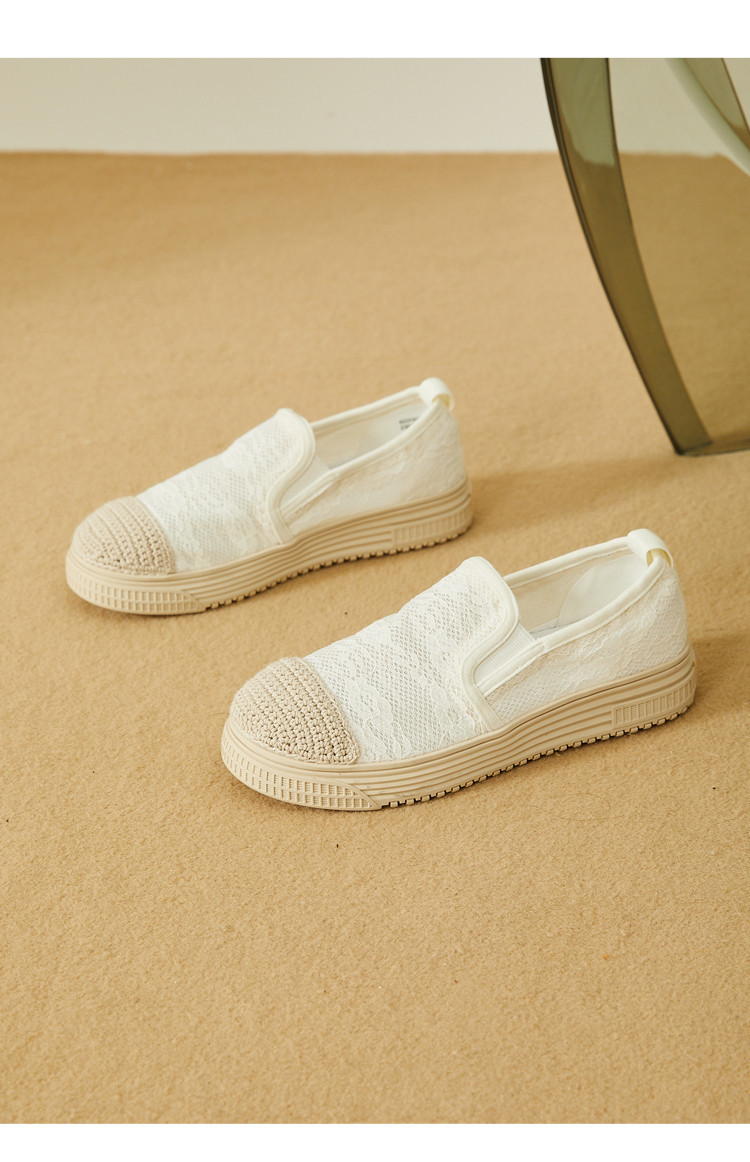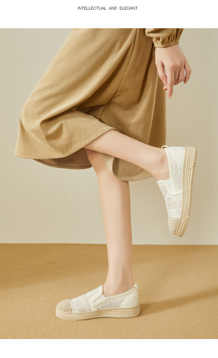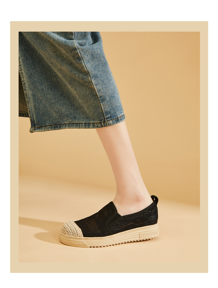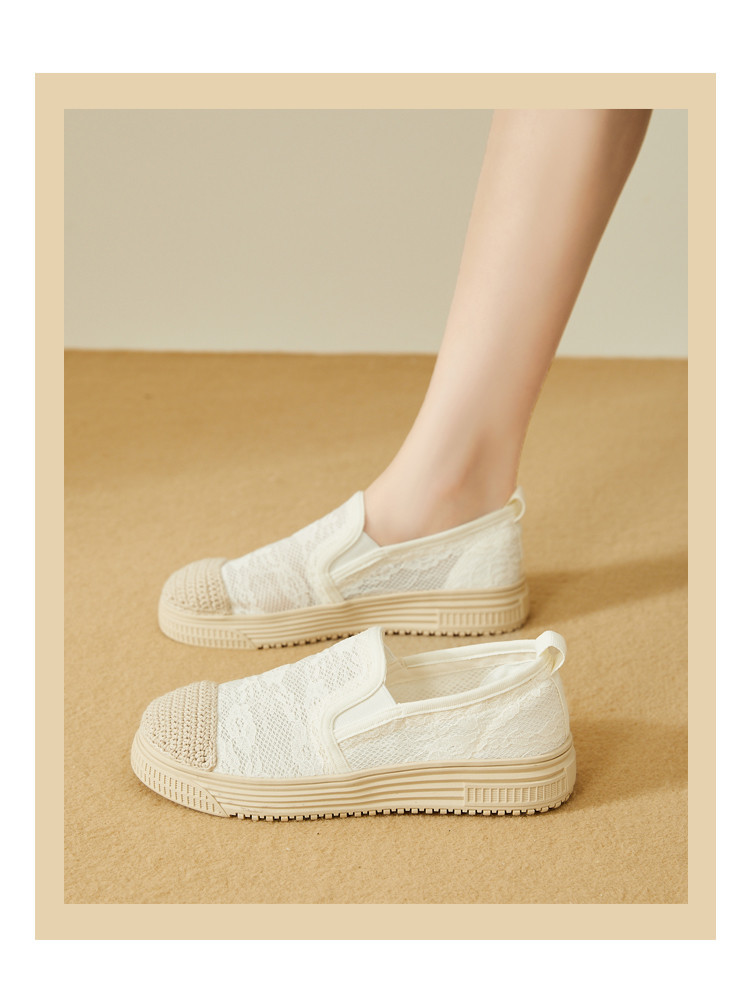 商品名称:蕾丝渔夫鞋女春秋季小香风帆布鞋一脚蹬懒人鞋透气平底单鞋女 595799