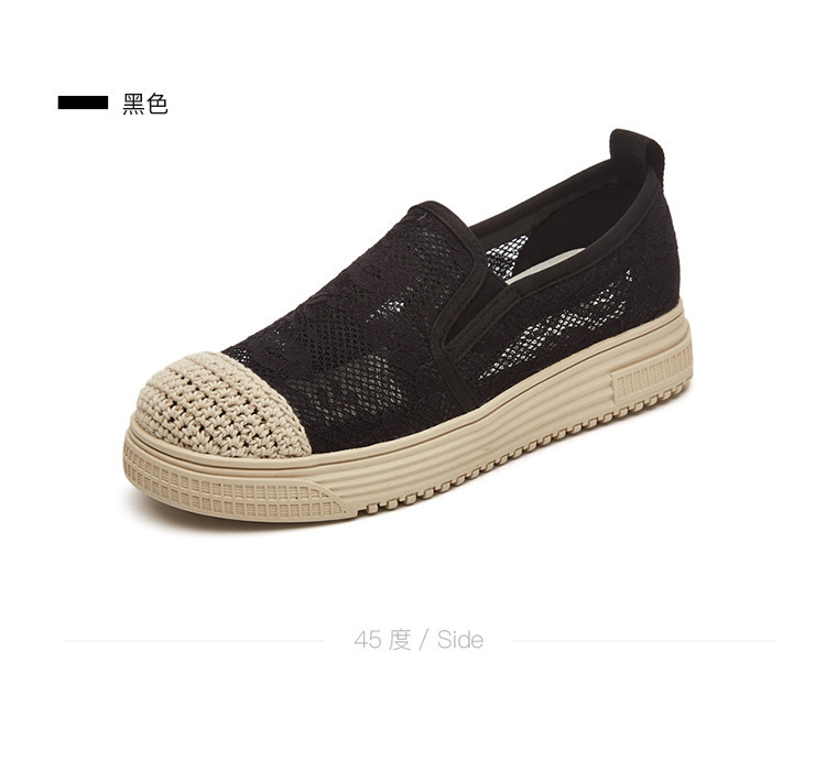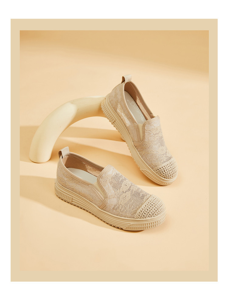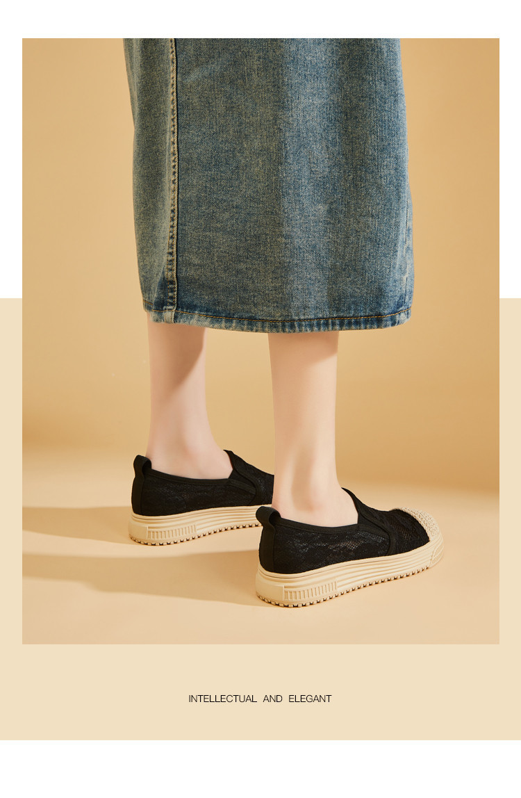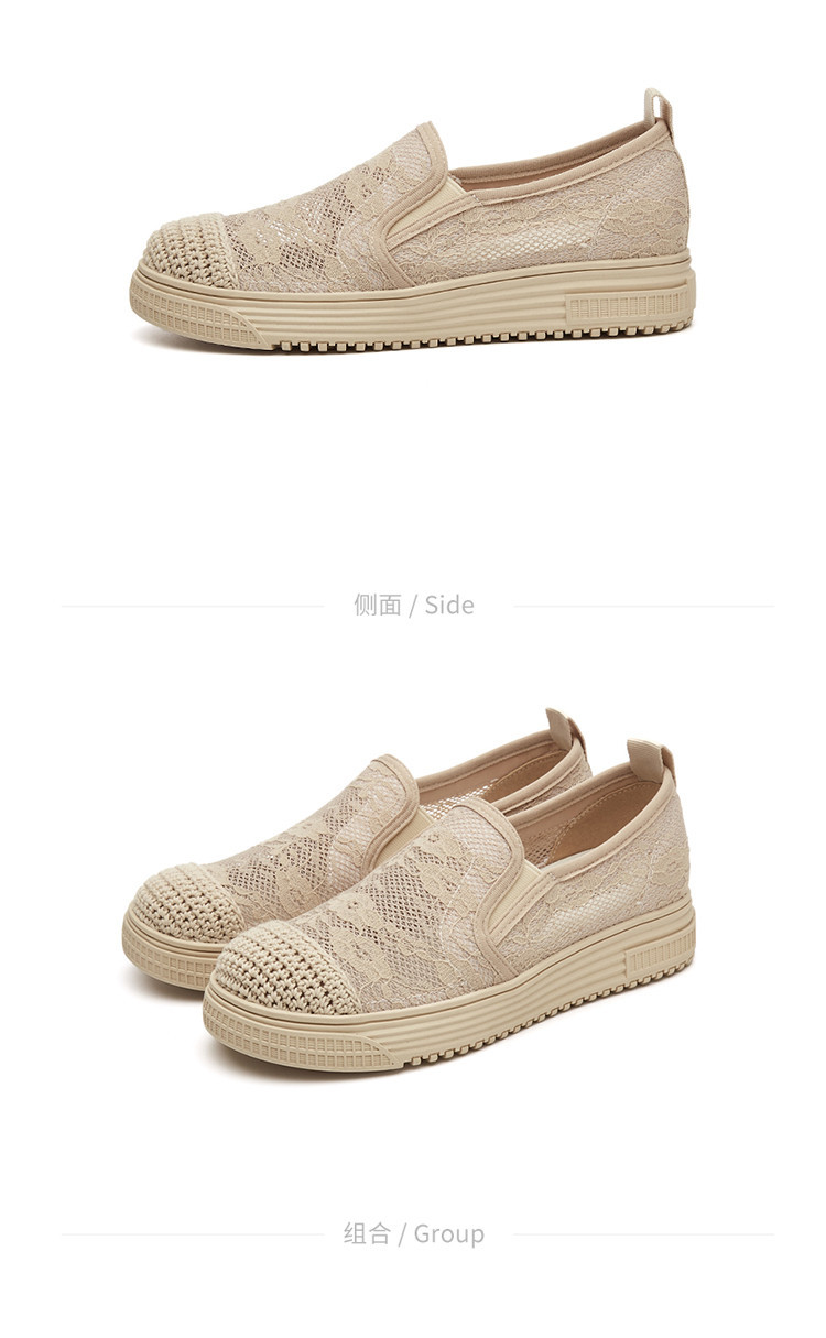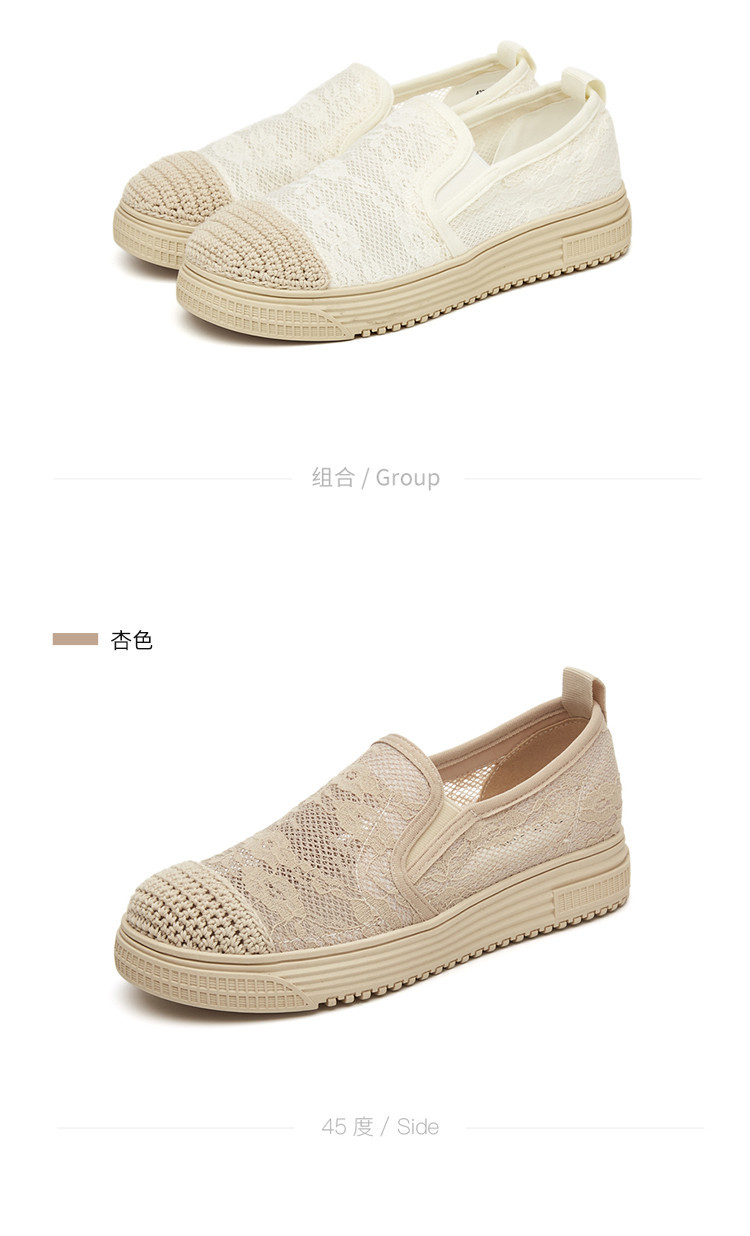 商品名称:蕾丝渔夫鞋女春秋季小香风帆布鞋一脚蹬懒人鞋透气平底单鞋女 595799