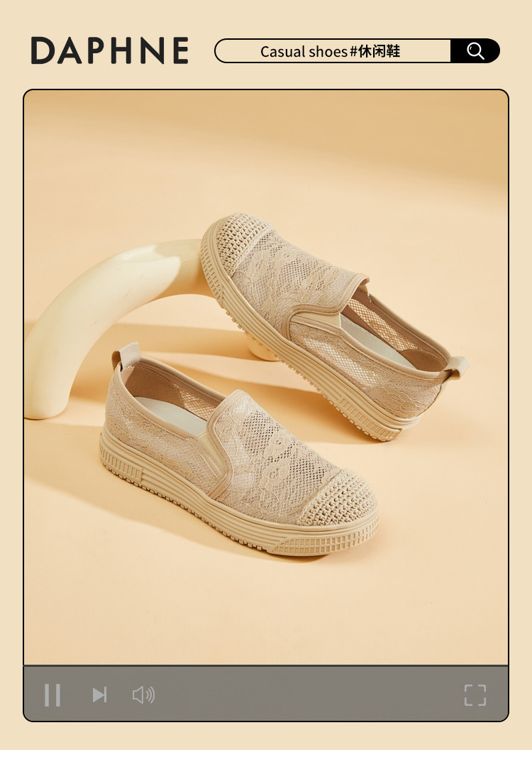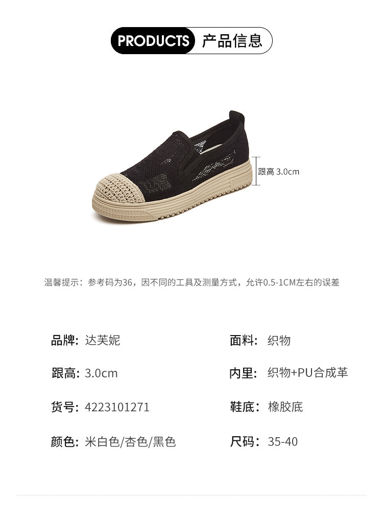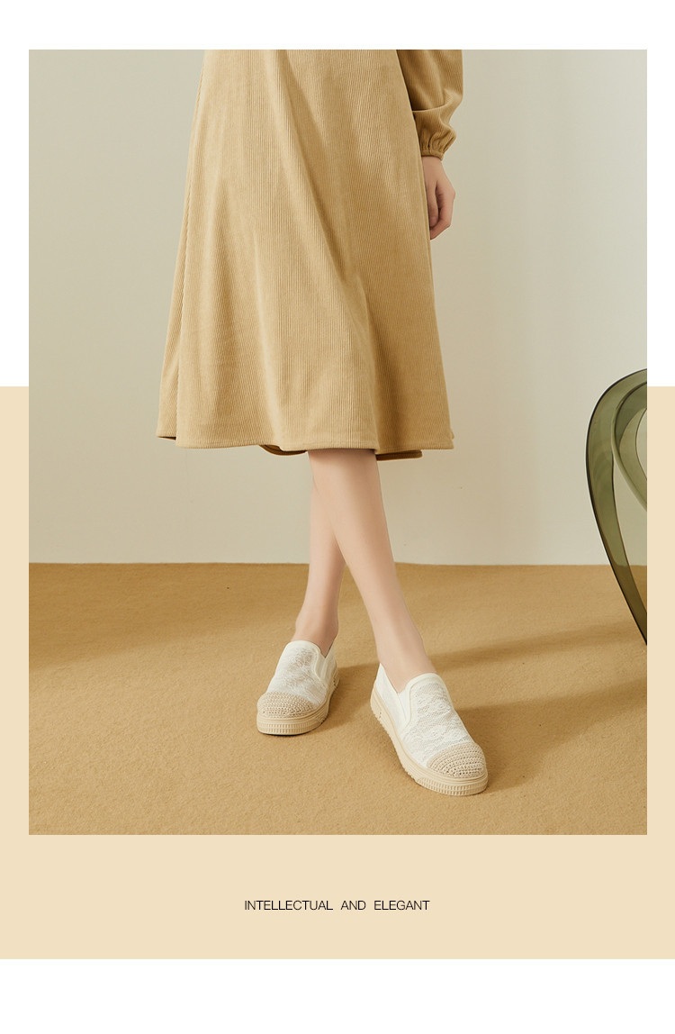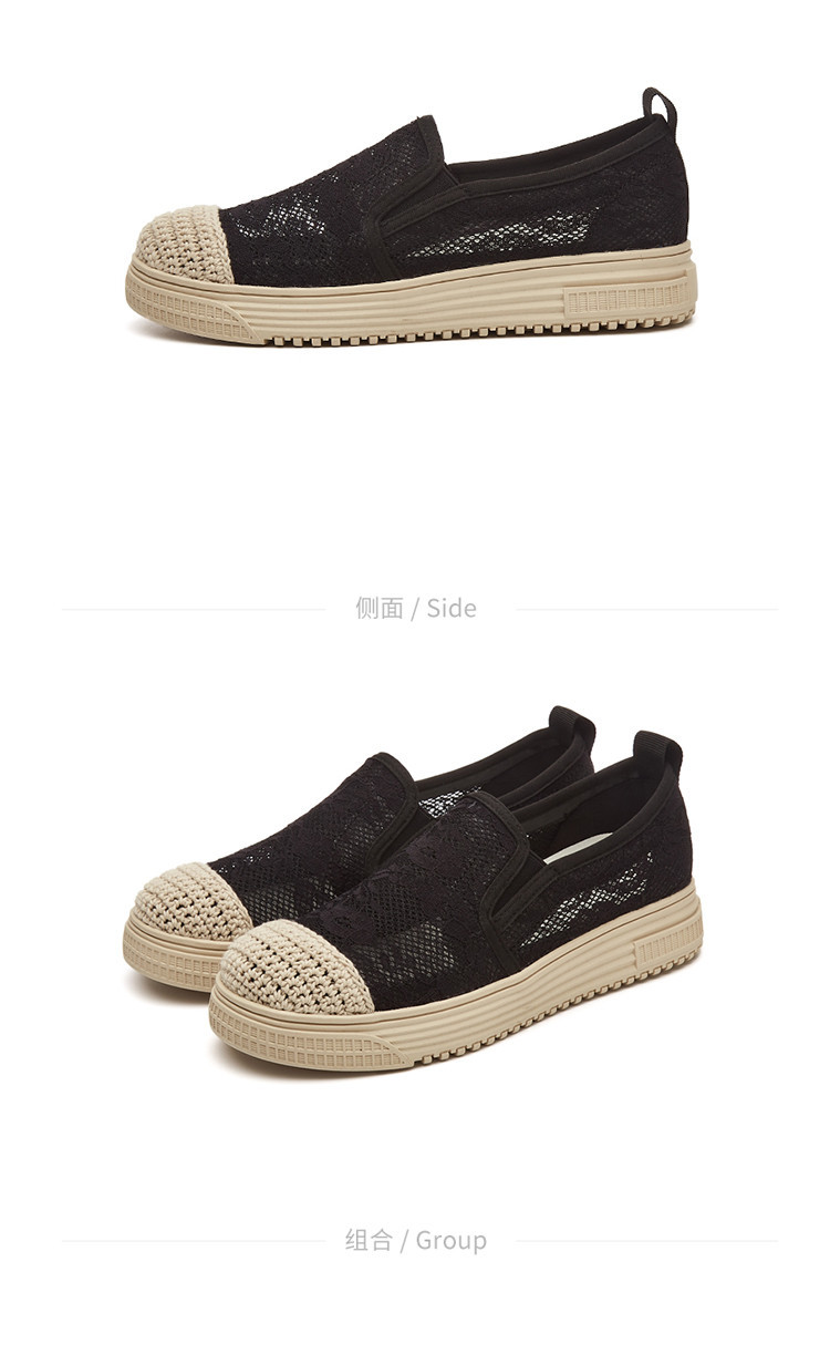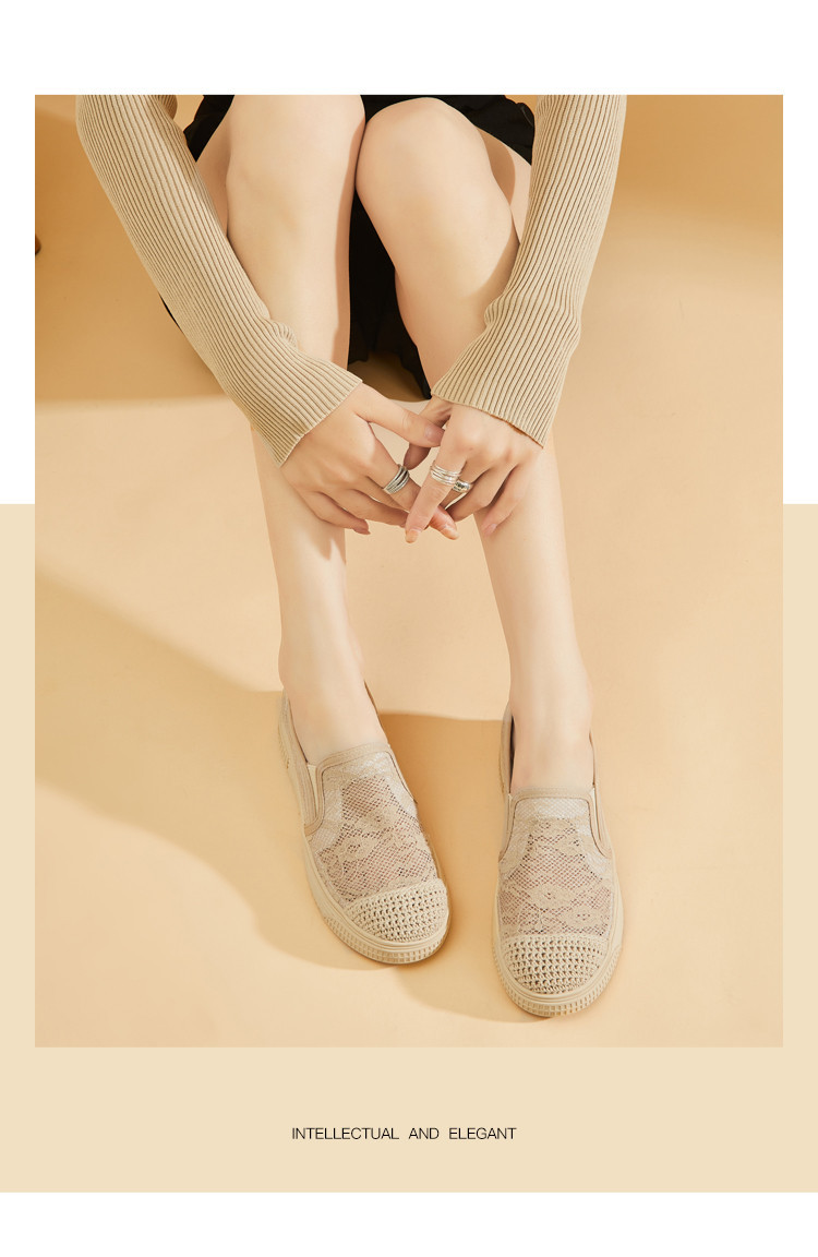 商品名称:蕾丝渔夫鞋女春秋季小香风帆布鞋一脚蹬懒人鞋透气平底单鞋女 595799