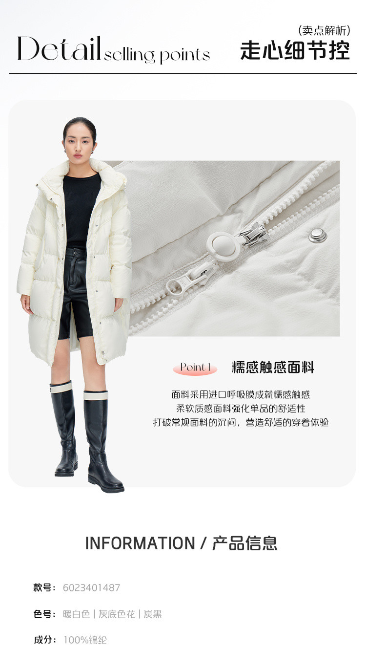 【商场同款】软糯加厚高充羽绒服女中长款连帽御寒鸭绒服外套女 270678