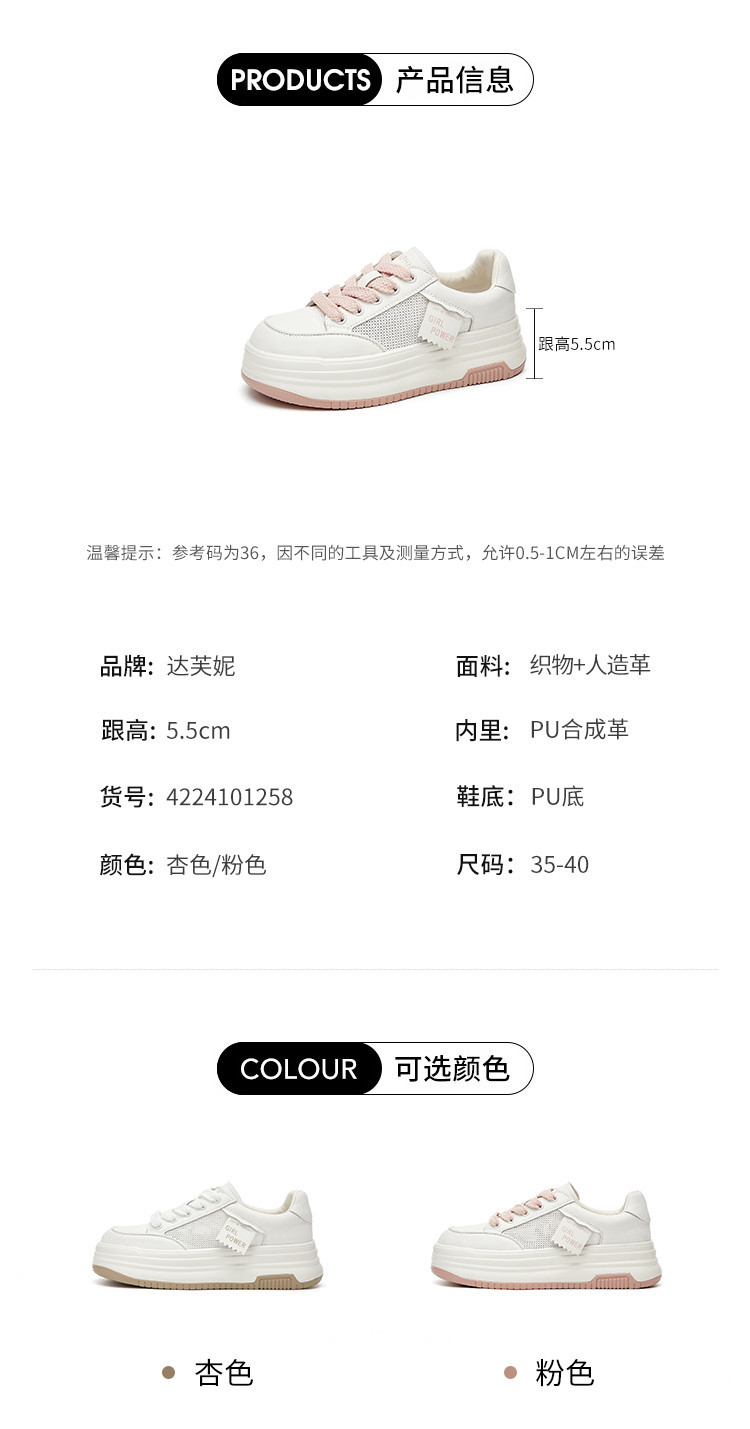 商品名称:【网面透气】小白鞋2025年新款百搭舒适女休闲鞋厚底鞋女板鞋 769943