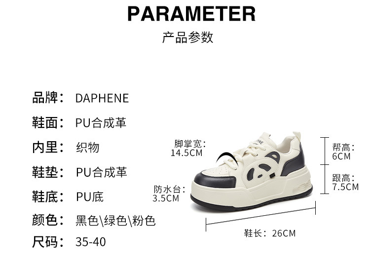 商品名称:【松糕厚底】小白鞋学院风透气百搭增高熊猫休闲鞋运动板鞋女鞋 642778