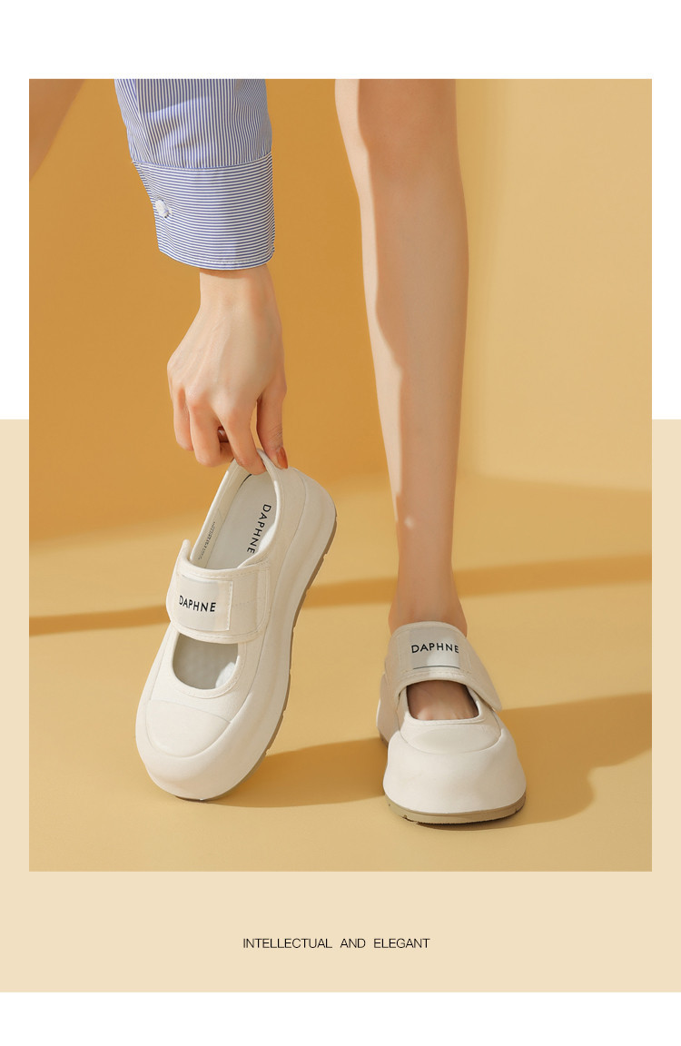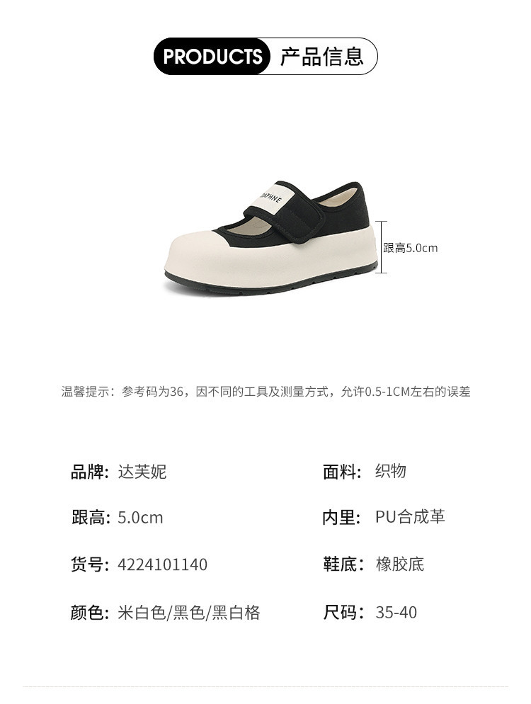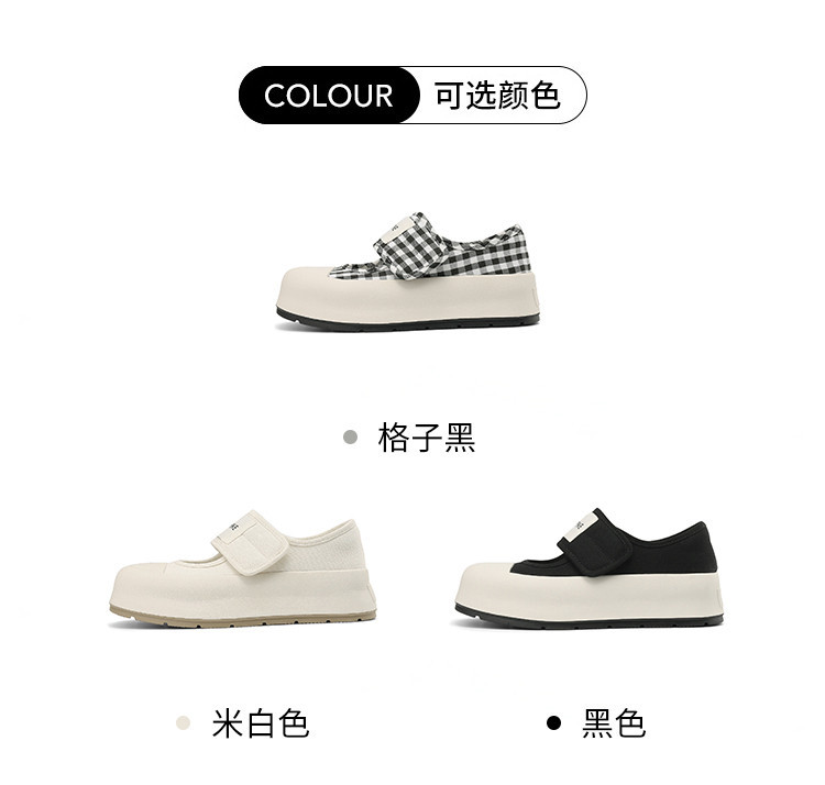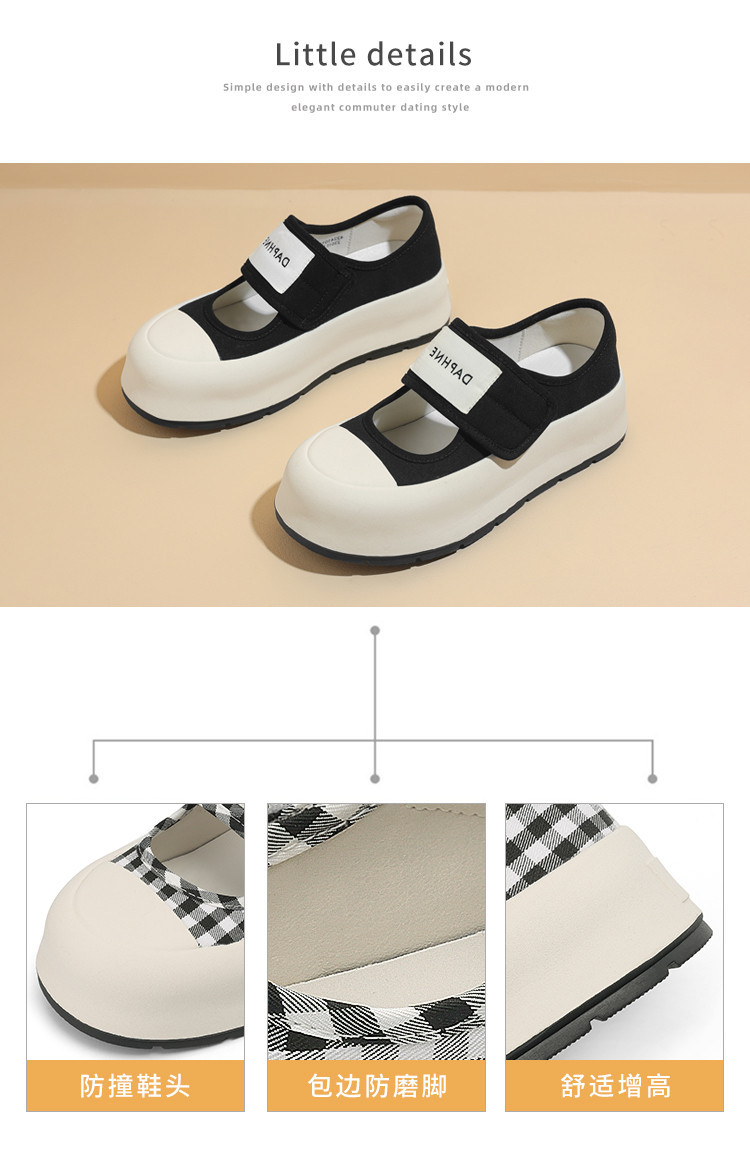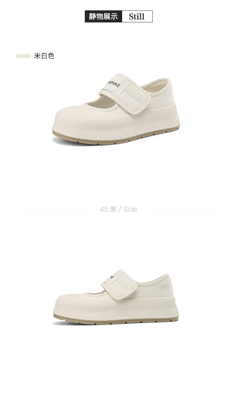 商品名称:厚底帆布鞋女春秋2025新款复古玛丽珍女鞋子透气百搭小白鞋女 342615