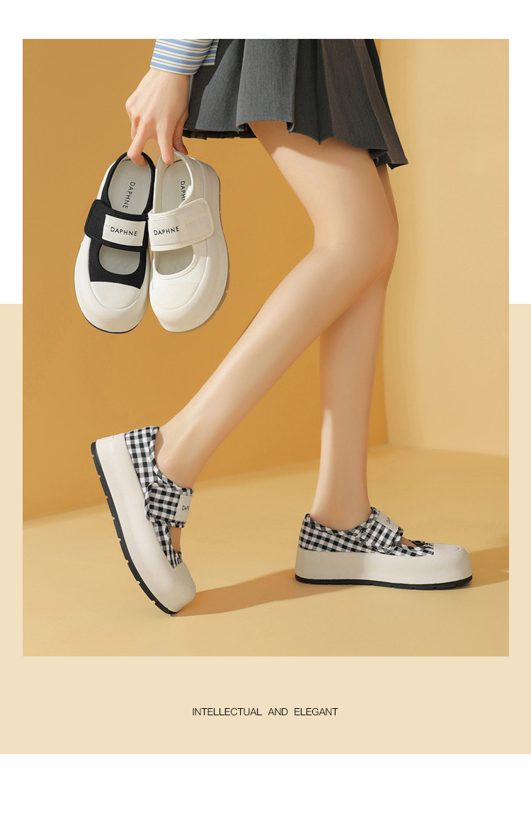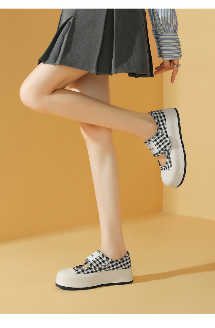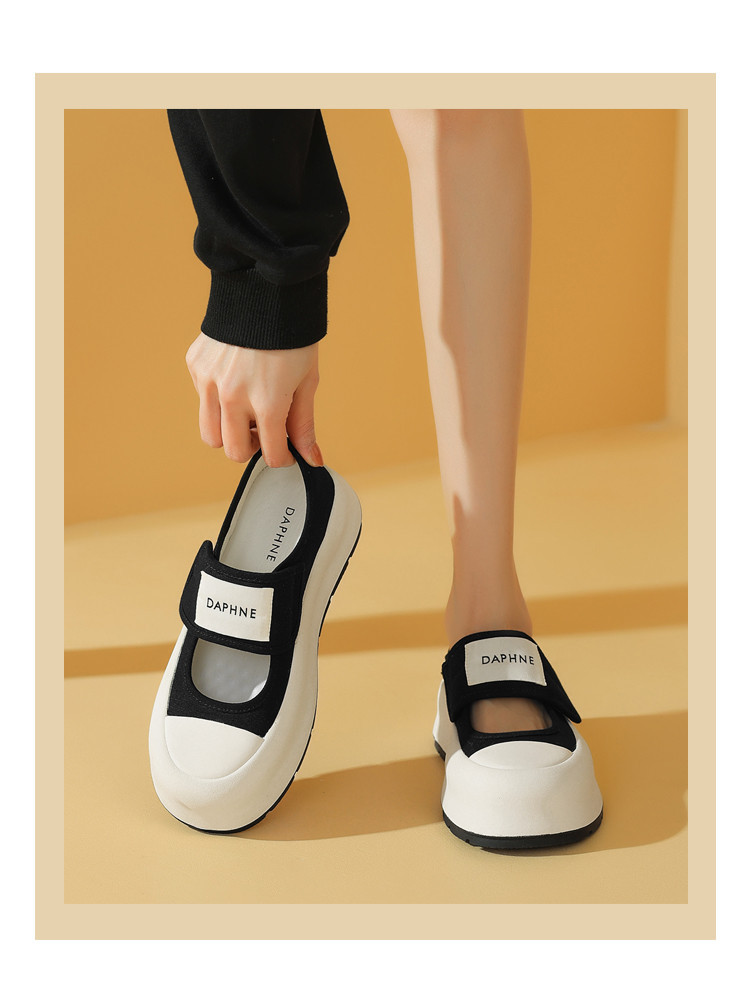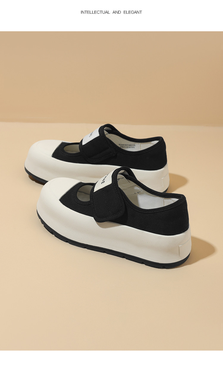 商品名称:厚底帆布鞋女春秋2025新款复古玛丽珍女鞋子透气百搭小白鞋女 342615