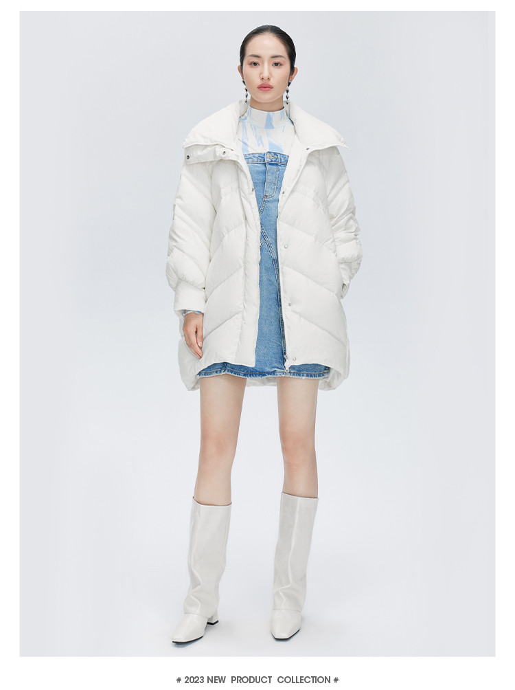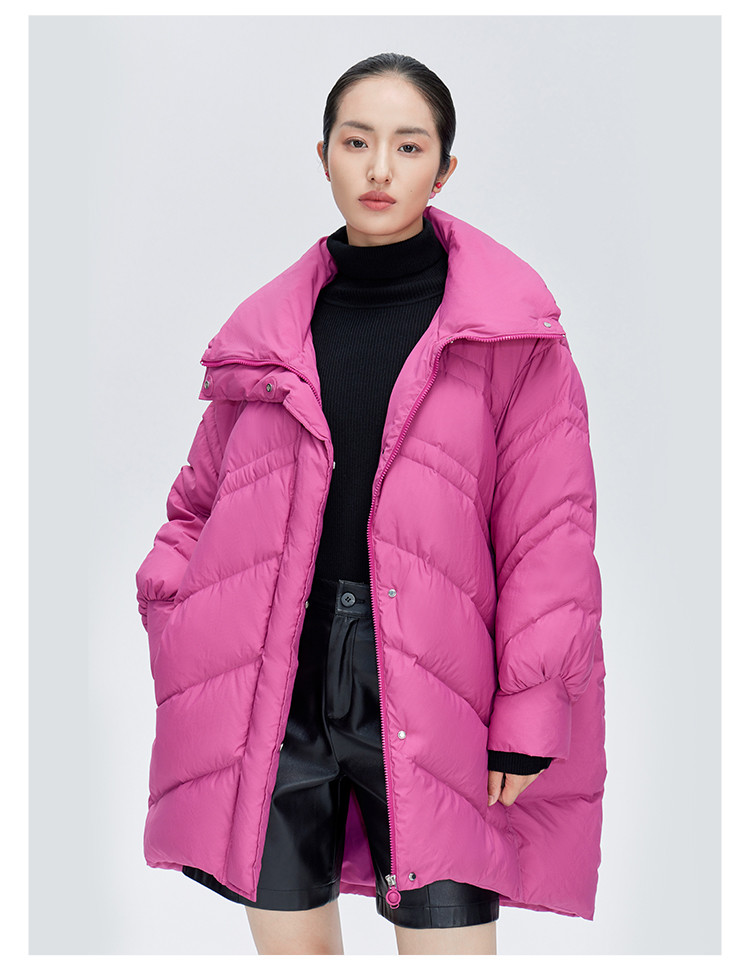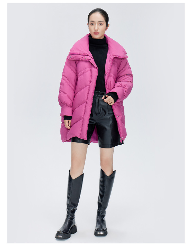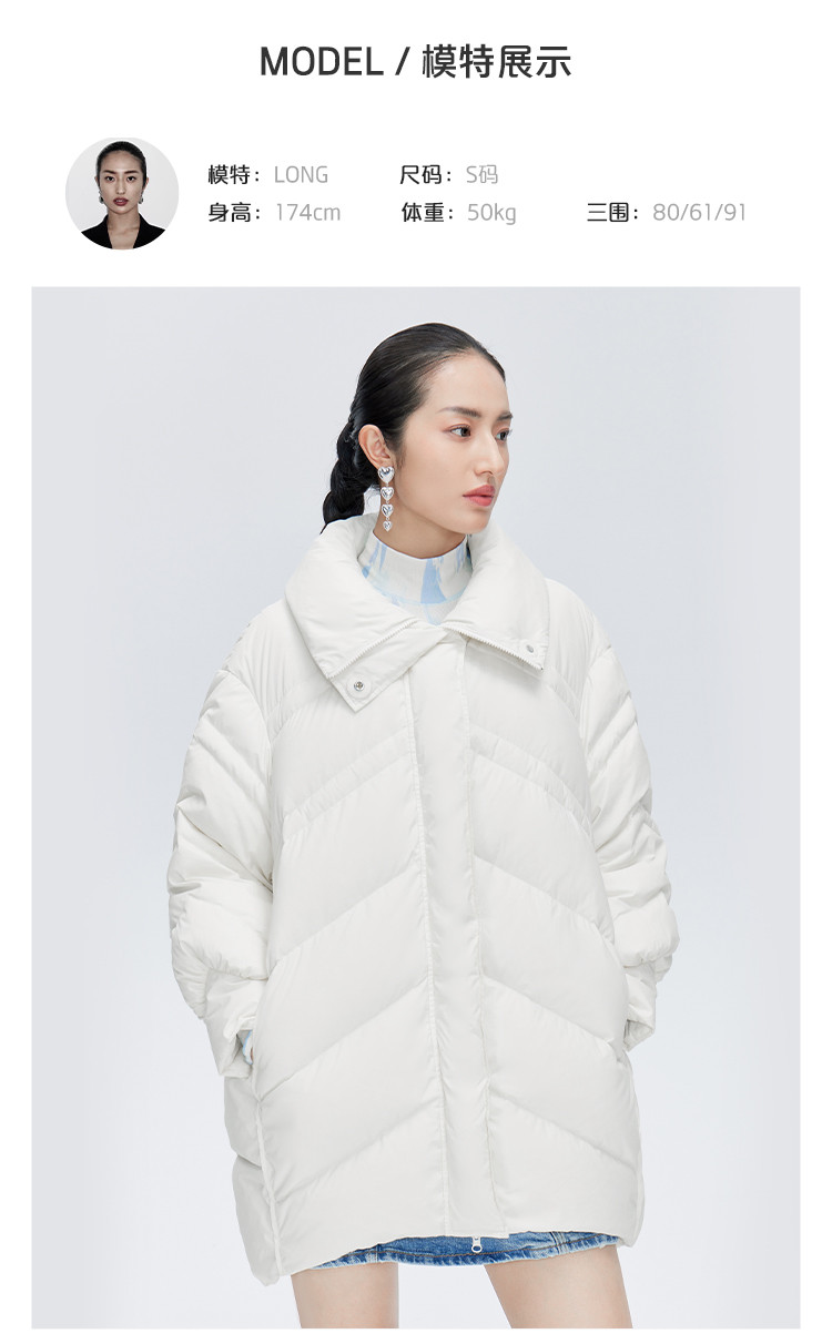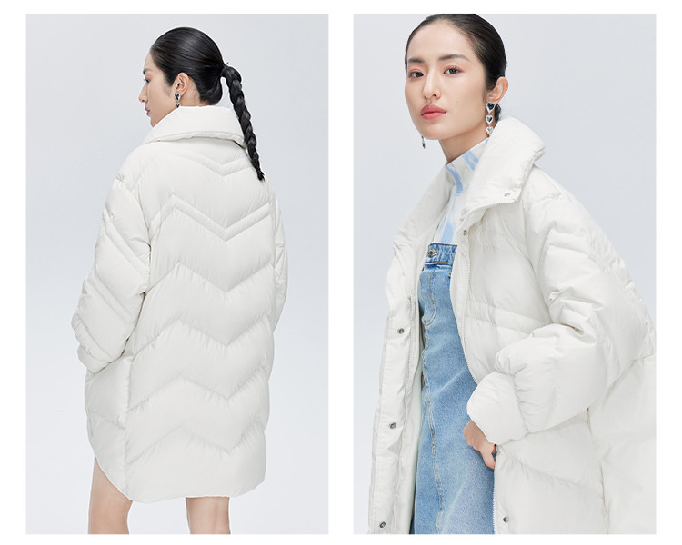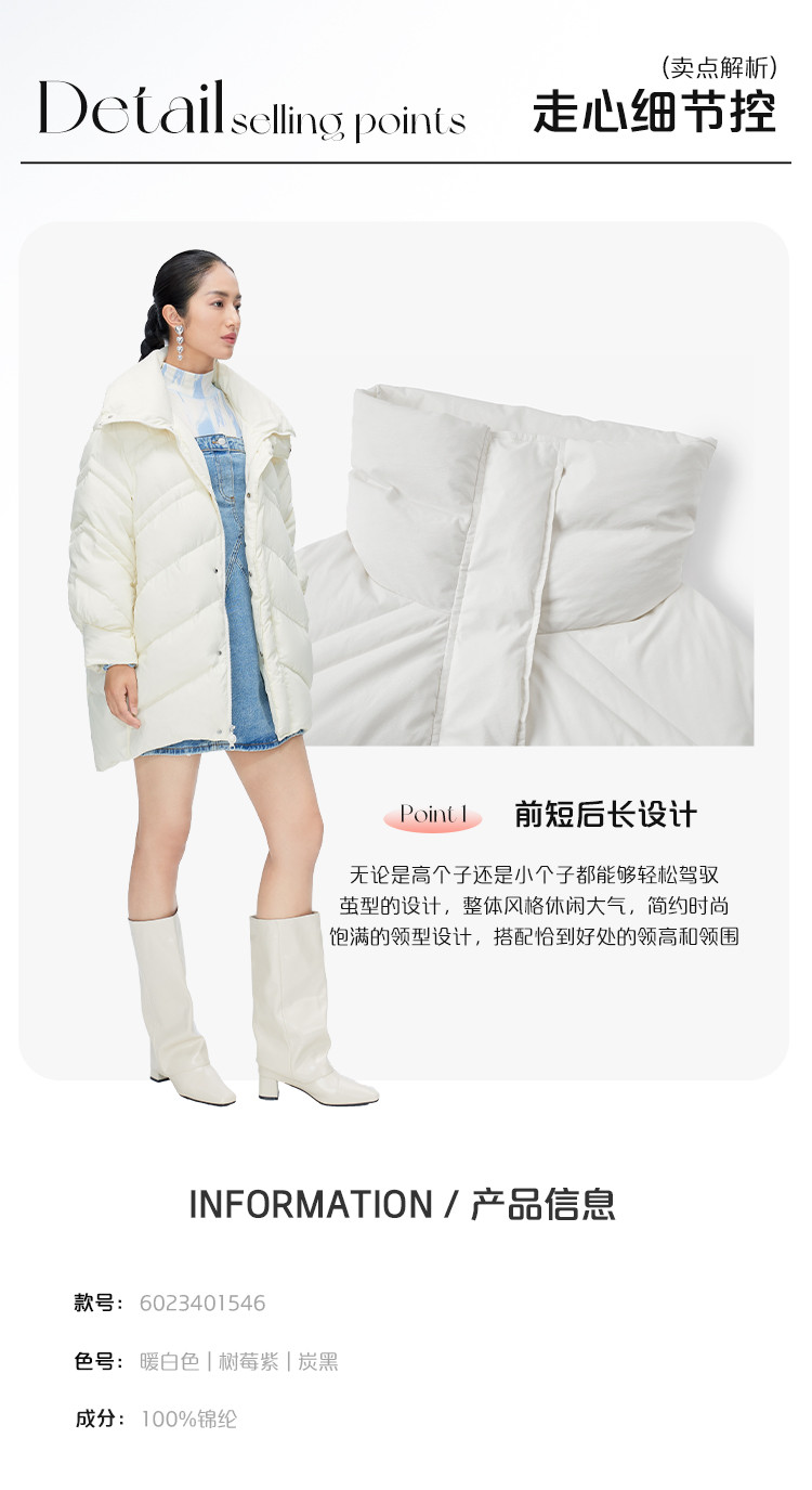 商品名称:【商场同款】时尚前短后长保暖立领羽绒服女中长款秋冬鸭绒外套女 151894