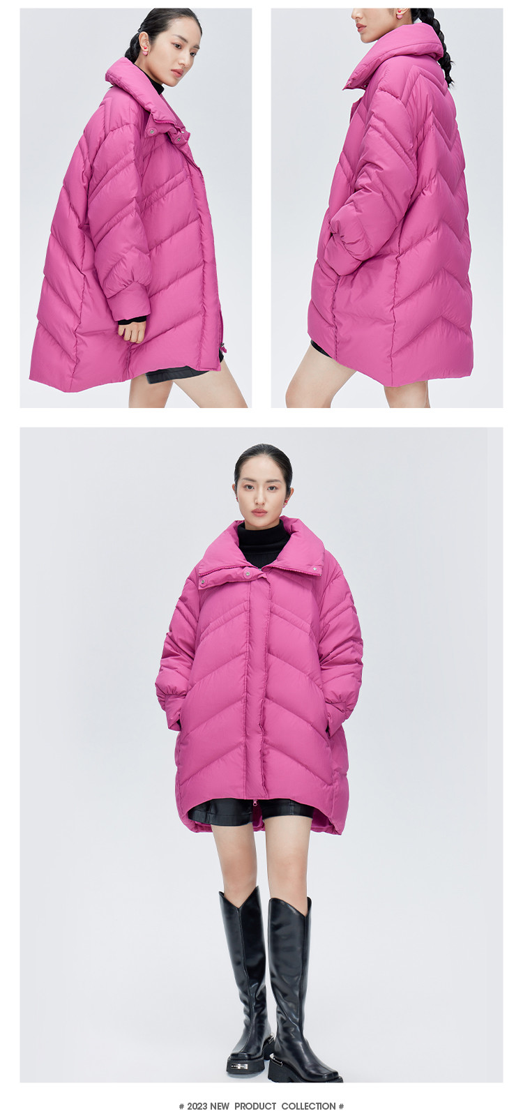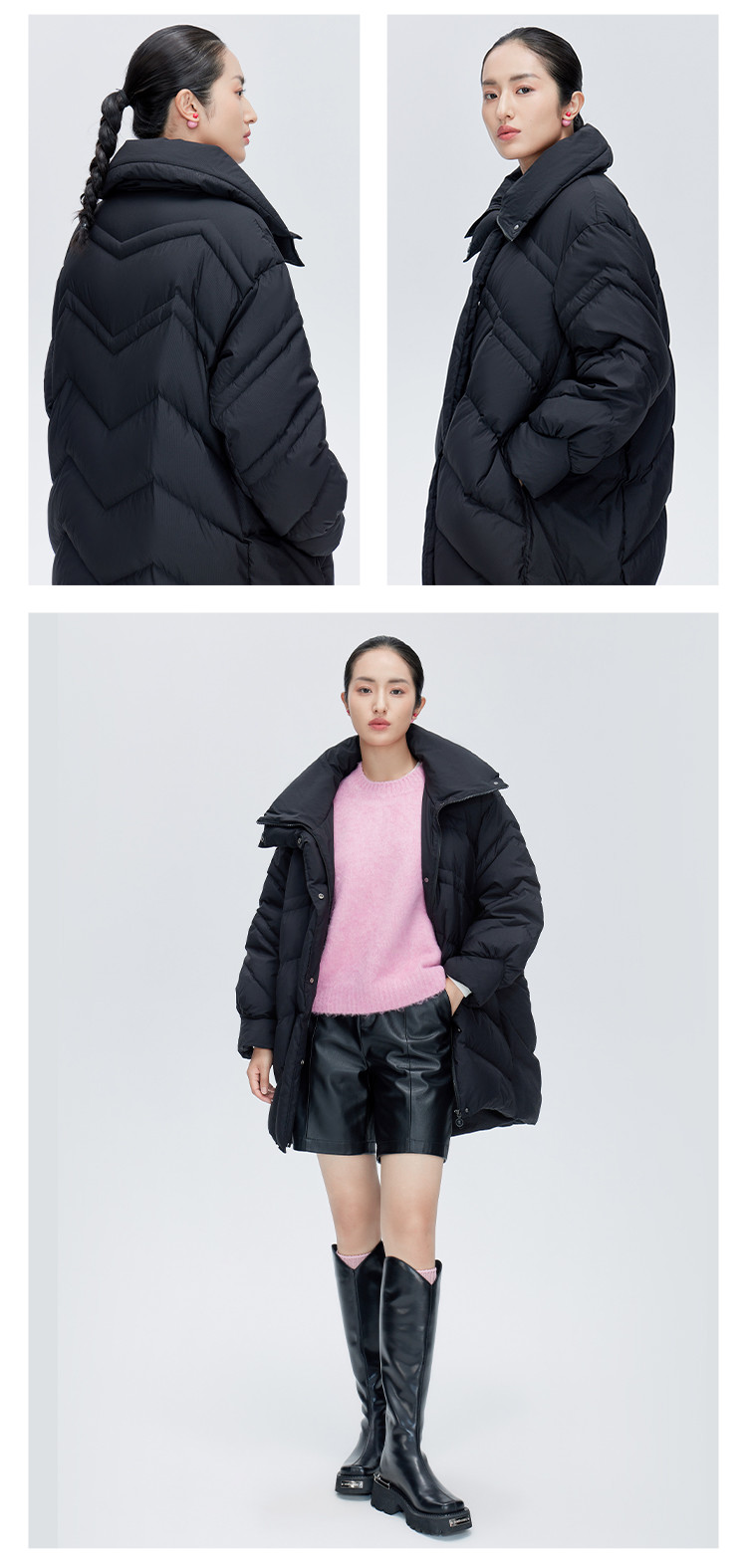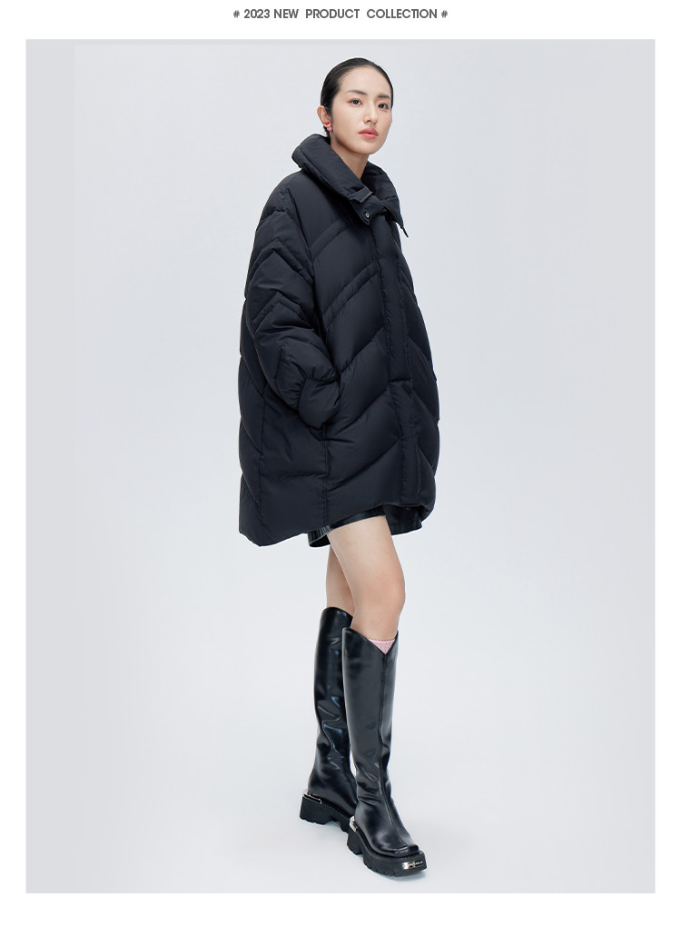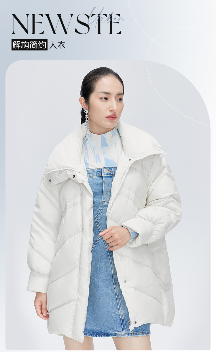 商品名称:【商场同款】时尚前短后长保暖立领羽绒服女中长款秋冬鸭绒外套女 151894