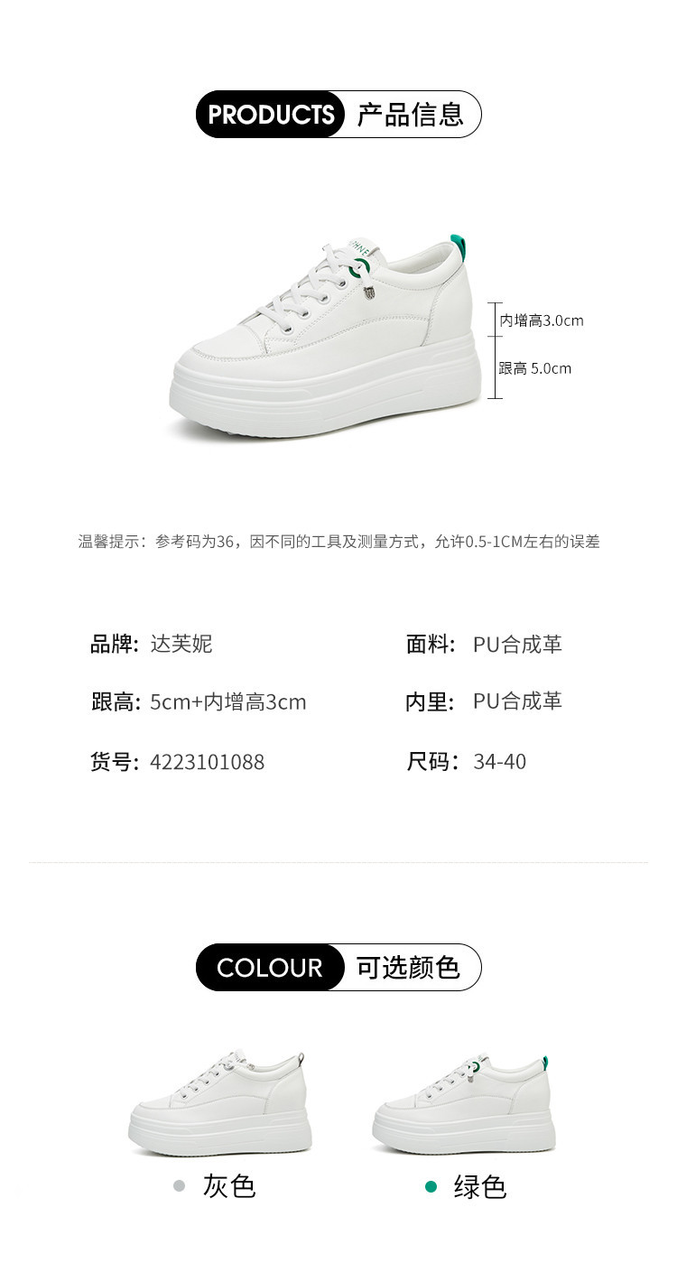 商品名称:内增高小白鞋女春秋季女鞋子透气百搭厚底运动休闲鞋板鞋女 876375