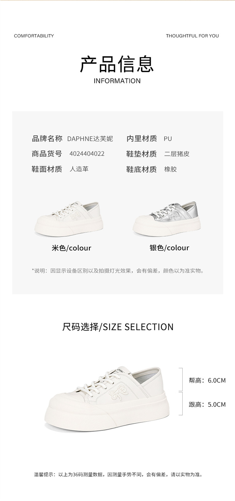 商品名称:小白鞋女春夏时尚厚底板鞋简约风百搭面包鞋轻便舒适运动休闲鞋 364695