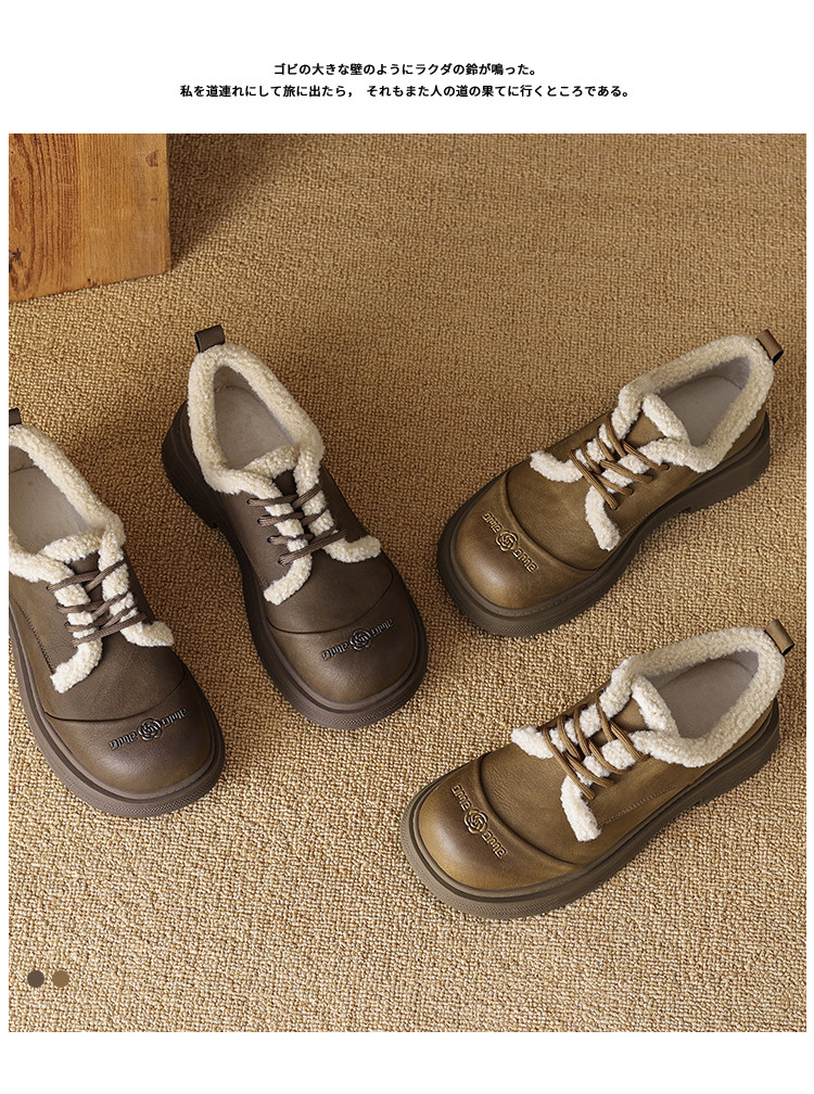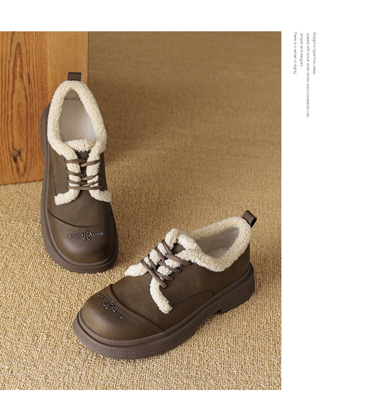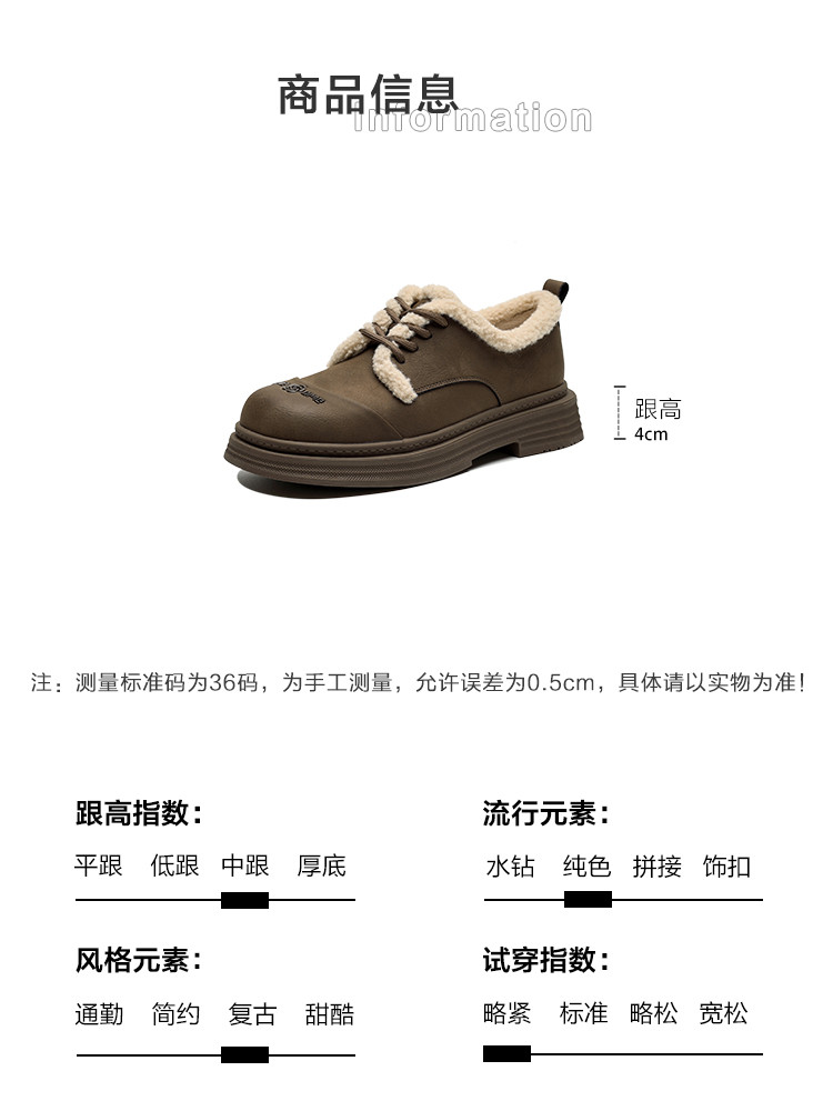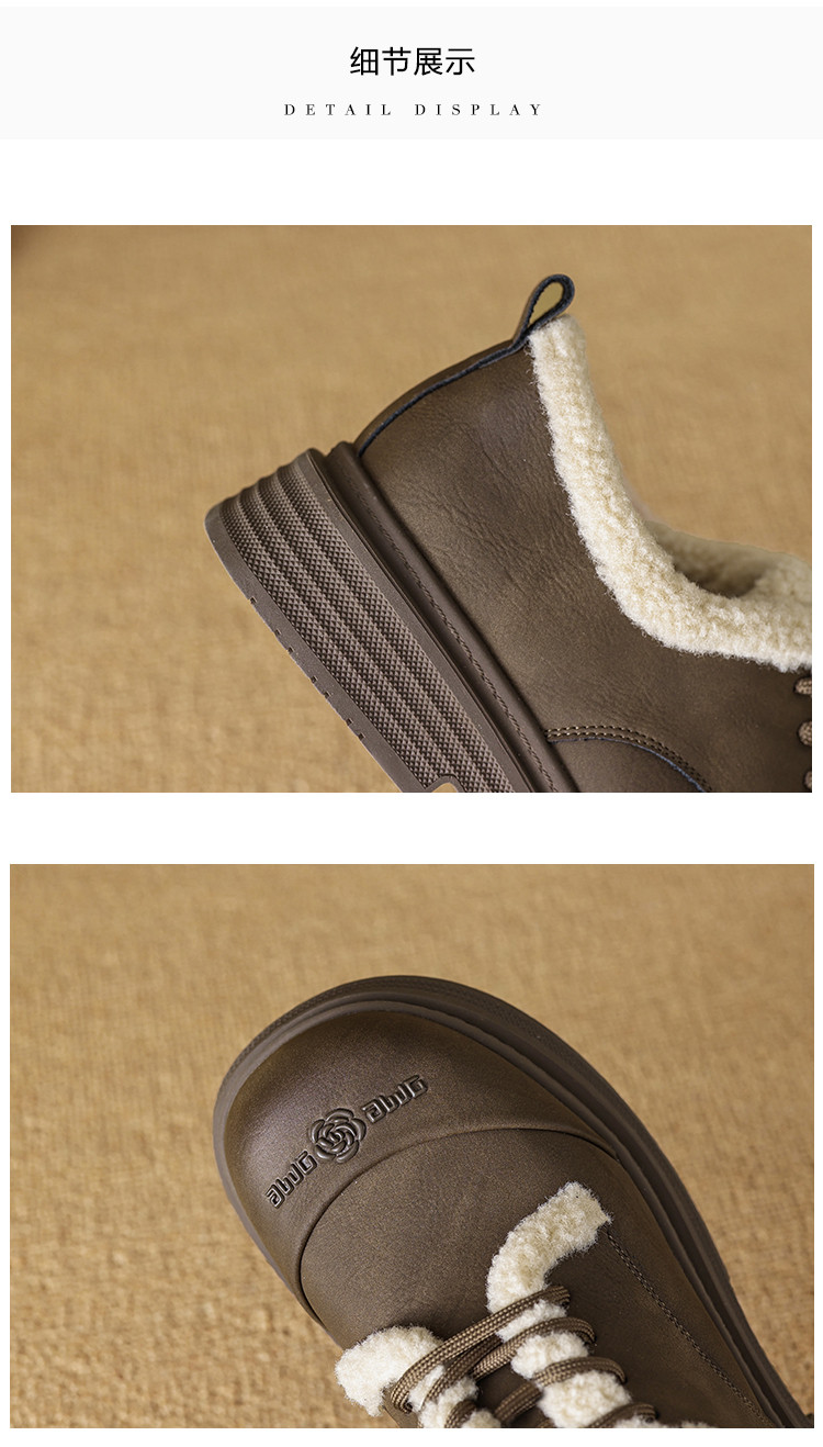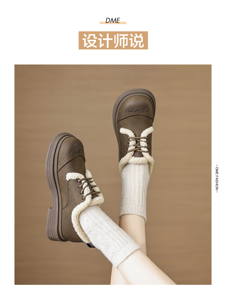 商品名称:温暖日百搭舒适休闲复古圆头拼接字母玫瑰系带毛毛鞋 973633