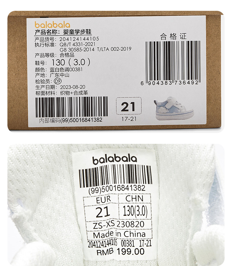 商品名称:巴拉巴拉童鞋宝宝学步鞋婴儿鞋子男童春秋可爱魔术贴防滑百搭舒适 263109