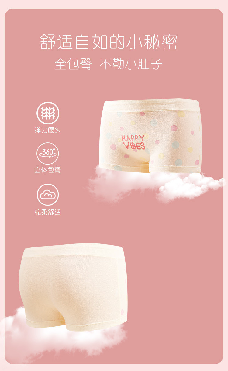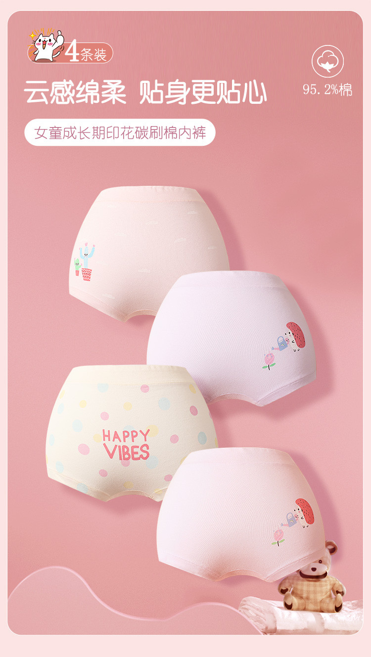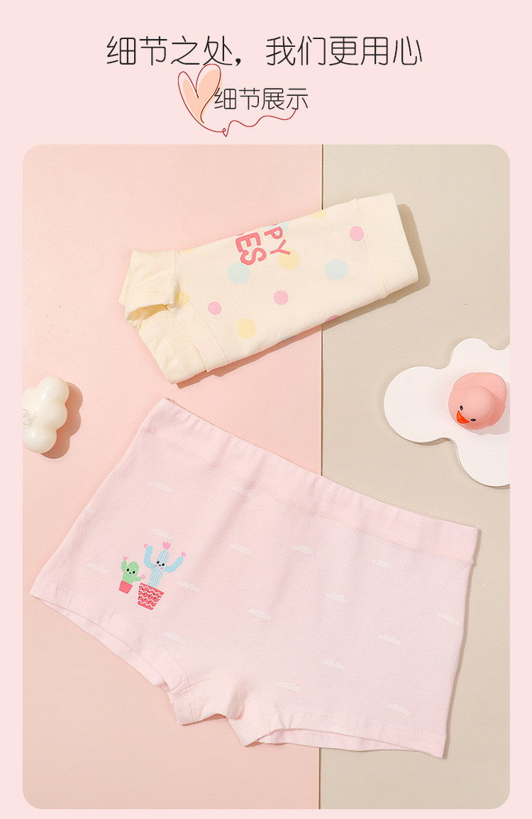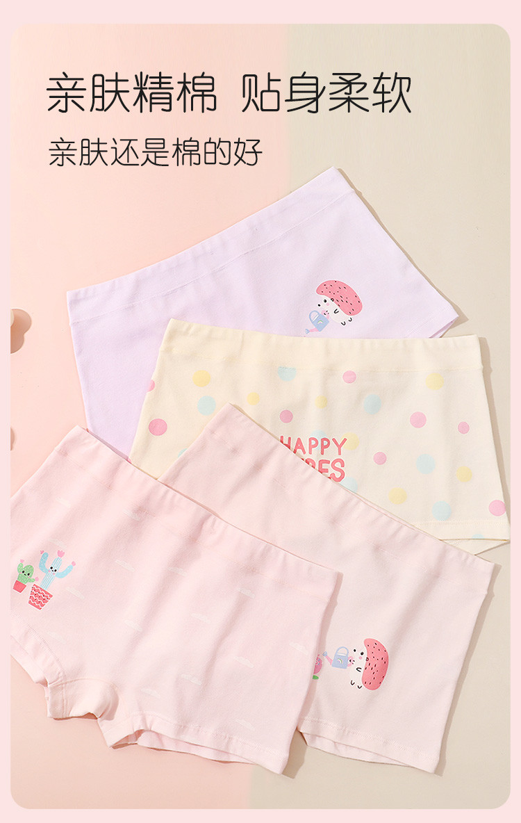 【95%棉】透气裸感4条装舒适亲肤印花儿童四角裤平角内裤女童 378526