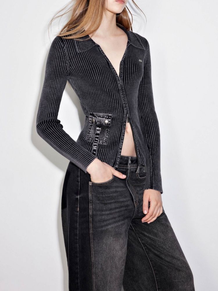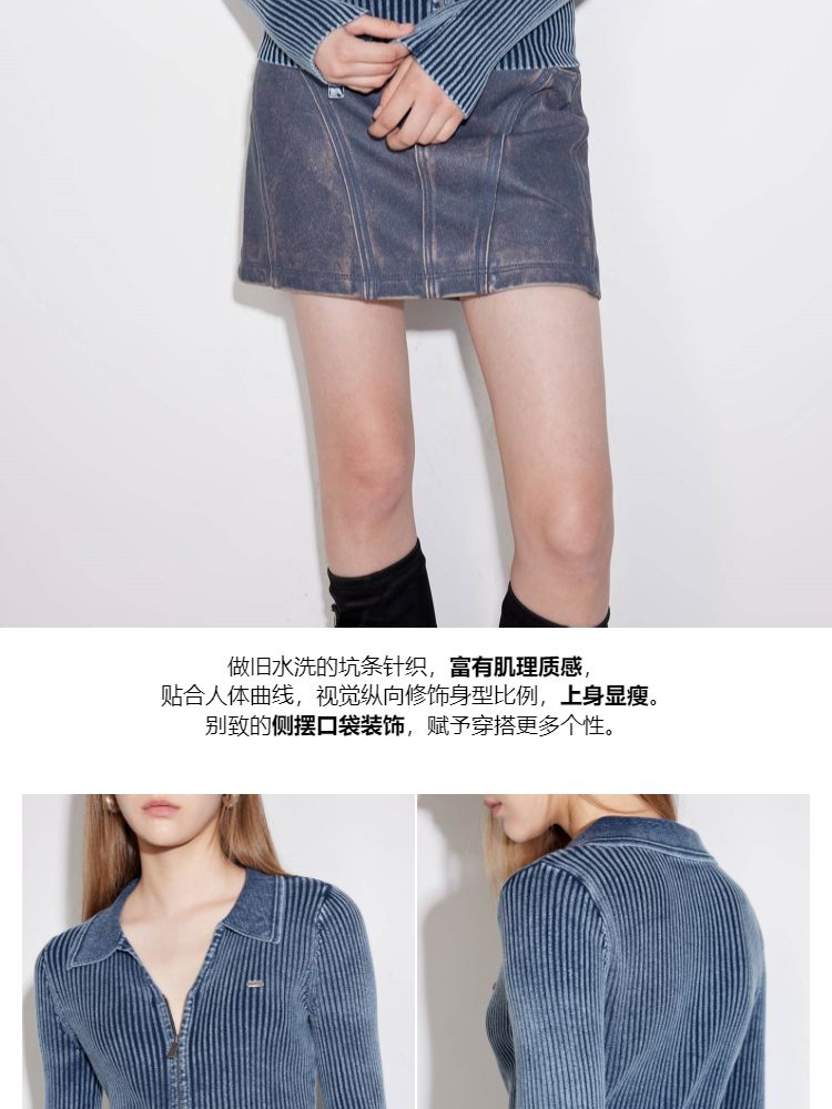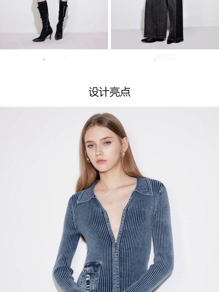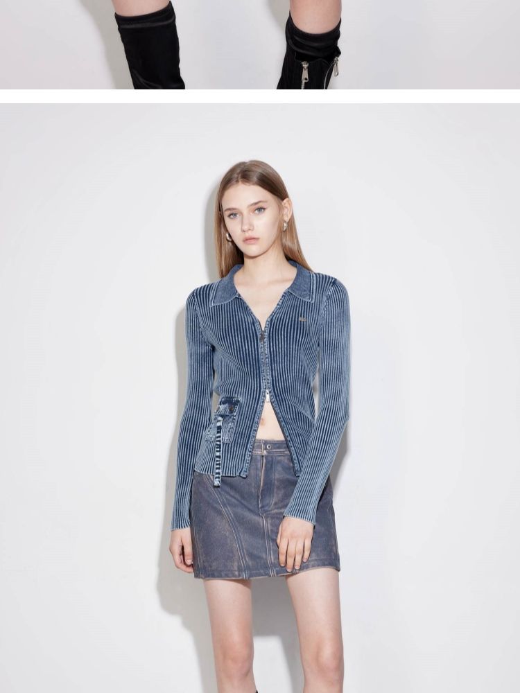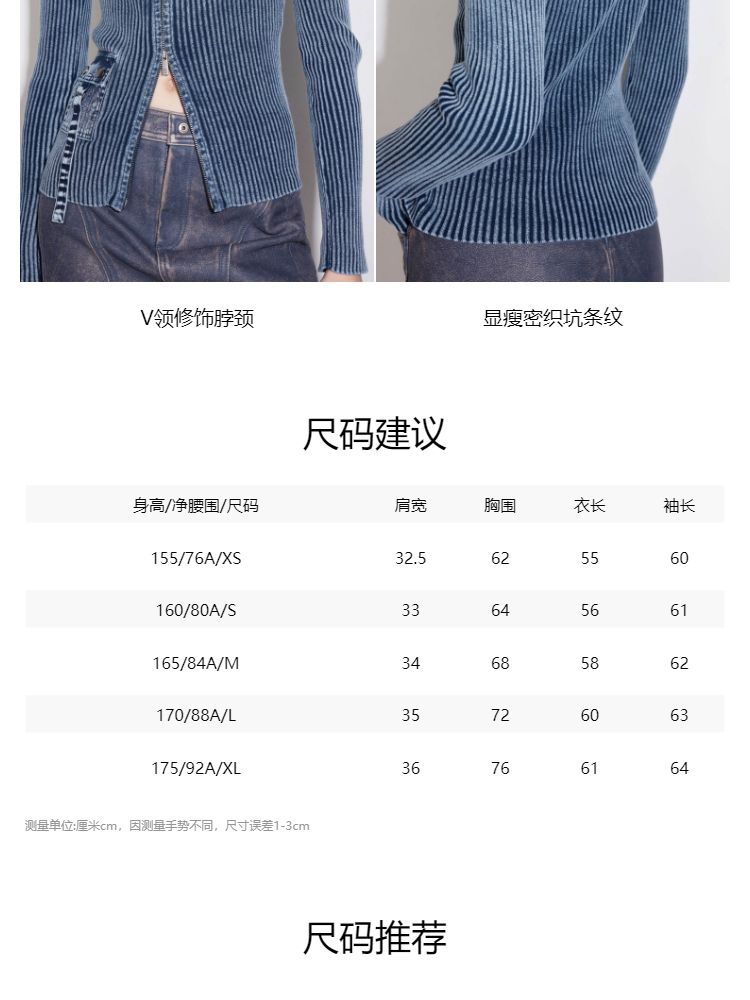 商品名称:【正肩V领】春季做旧水洗修身开衫针织衫女 031834