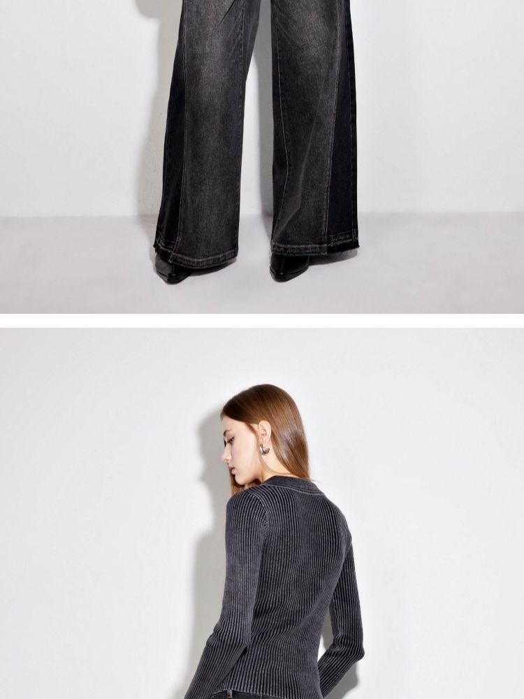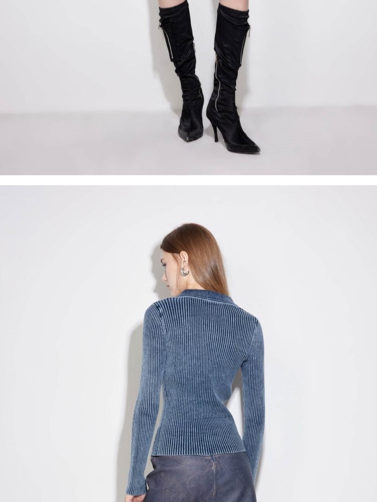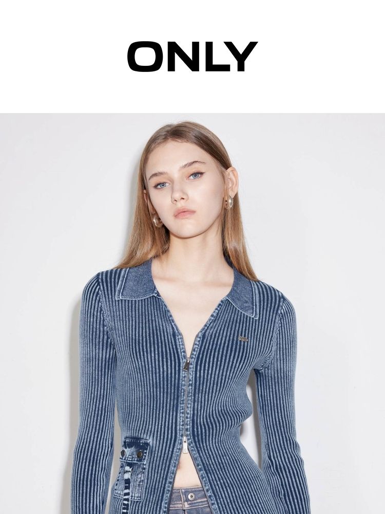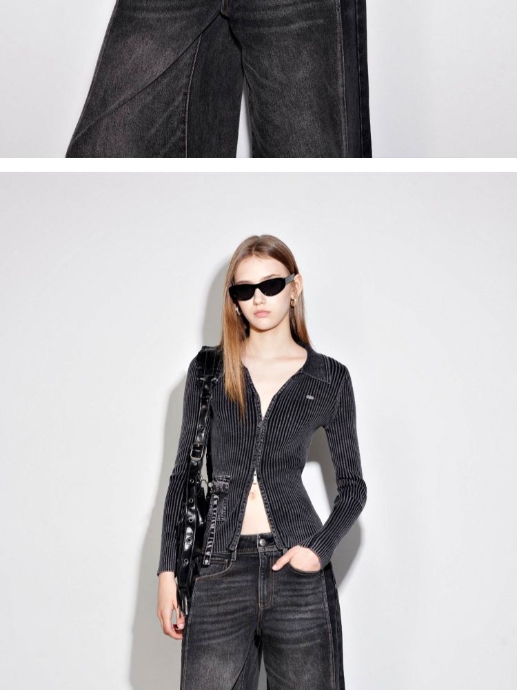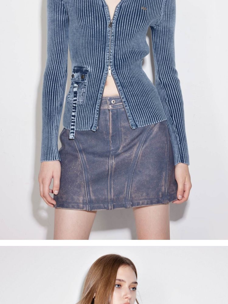 商品名称:【正肩V领】春季做旧水洗修身开衫针织衫女 031834