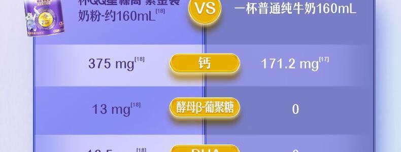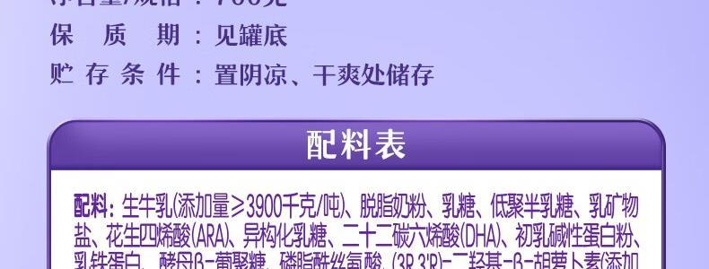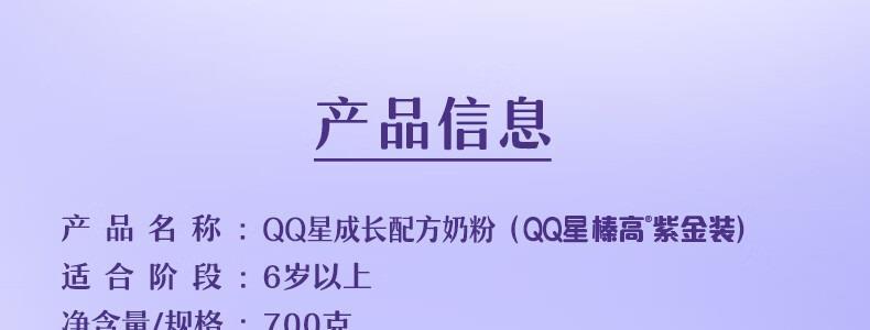 商品名称:伊利 QQ星榛高儿童成长配方奶粉 700g 紫金装