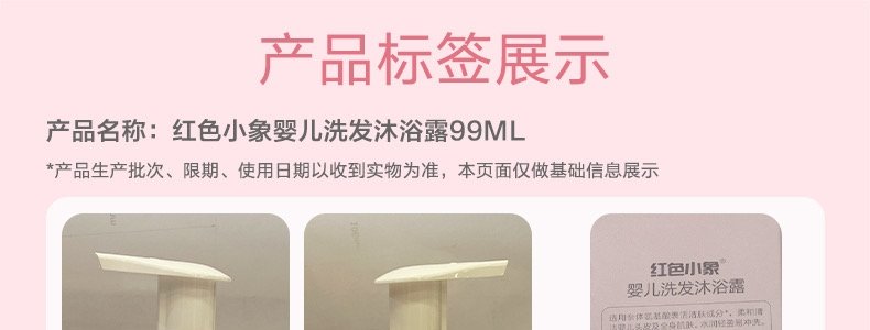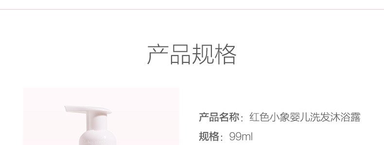 商品名称:红色小象(Babyelephant)婴儿洗发沐浴露 99ml (新老包装随机)
