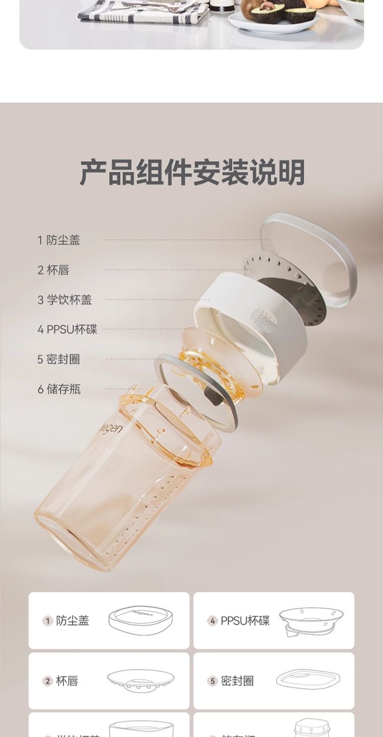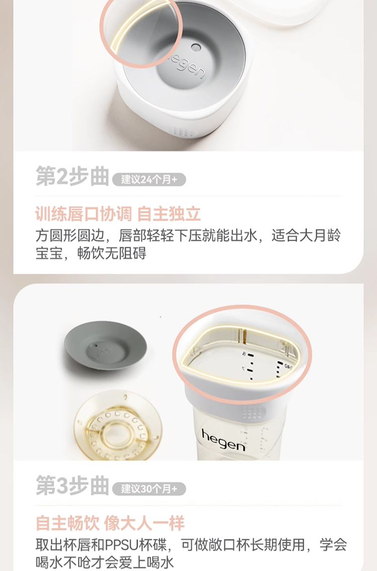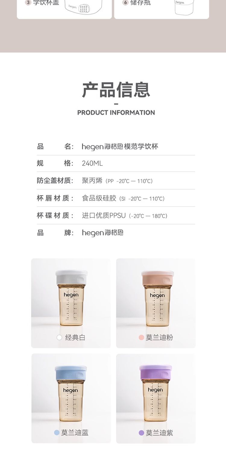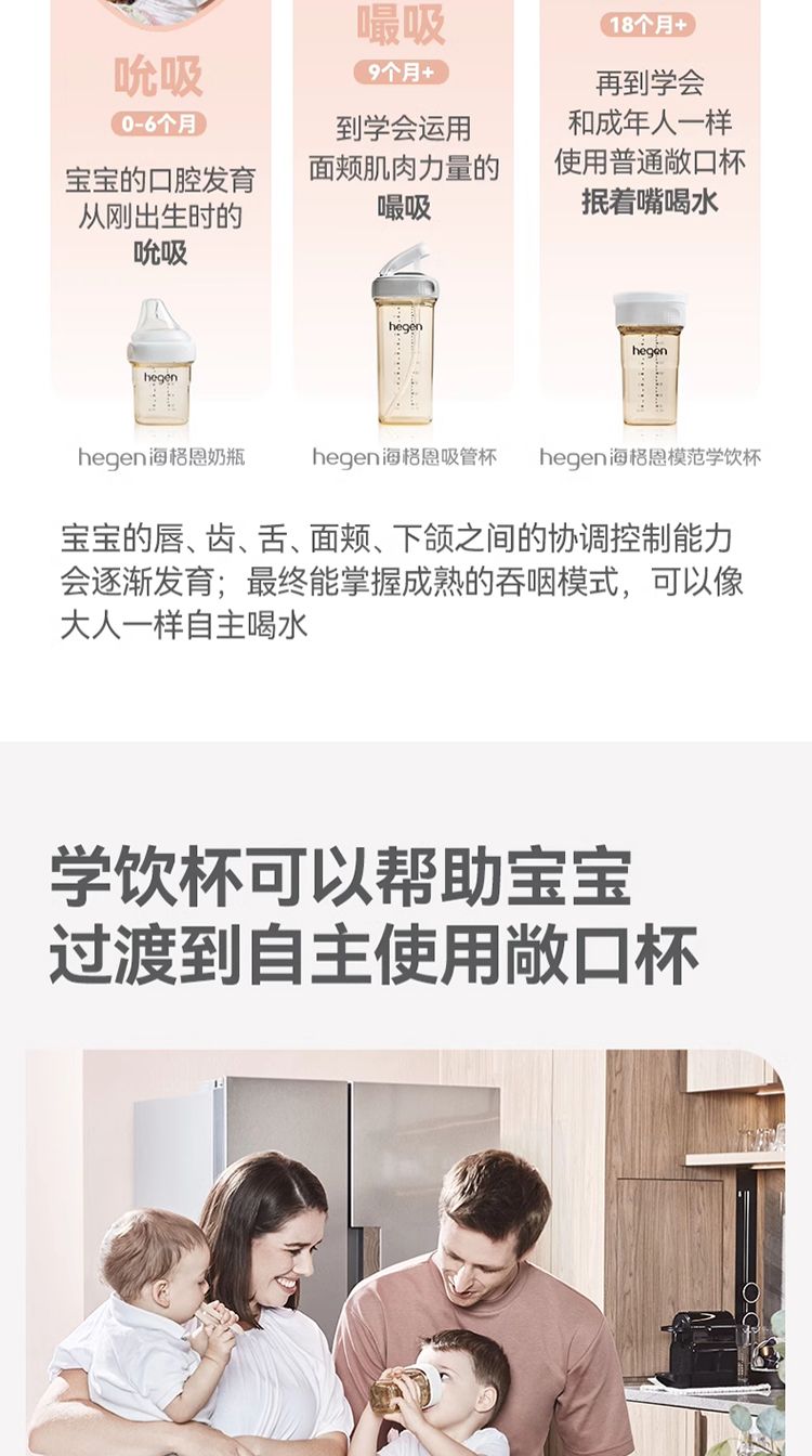商品名称:HEGEN海格恩学饮杯儿童嘬口杯一岁以上PPSU婴儿广口喝水杯宝宝唇控嘬饮水杯 240ml