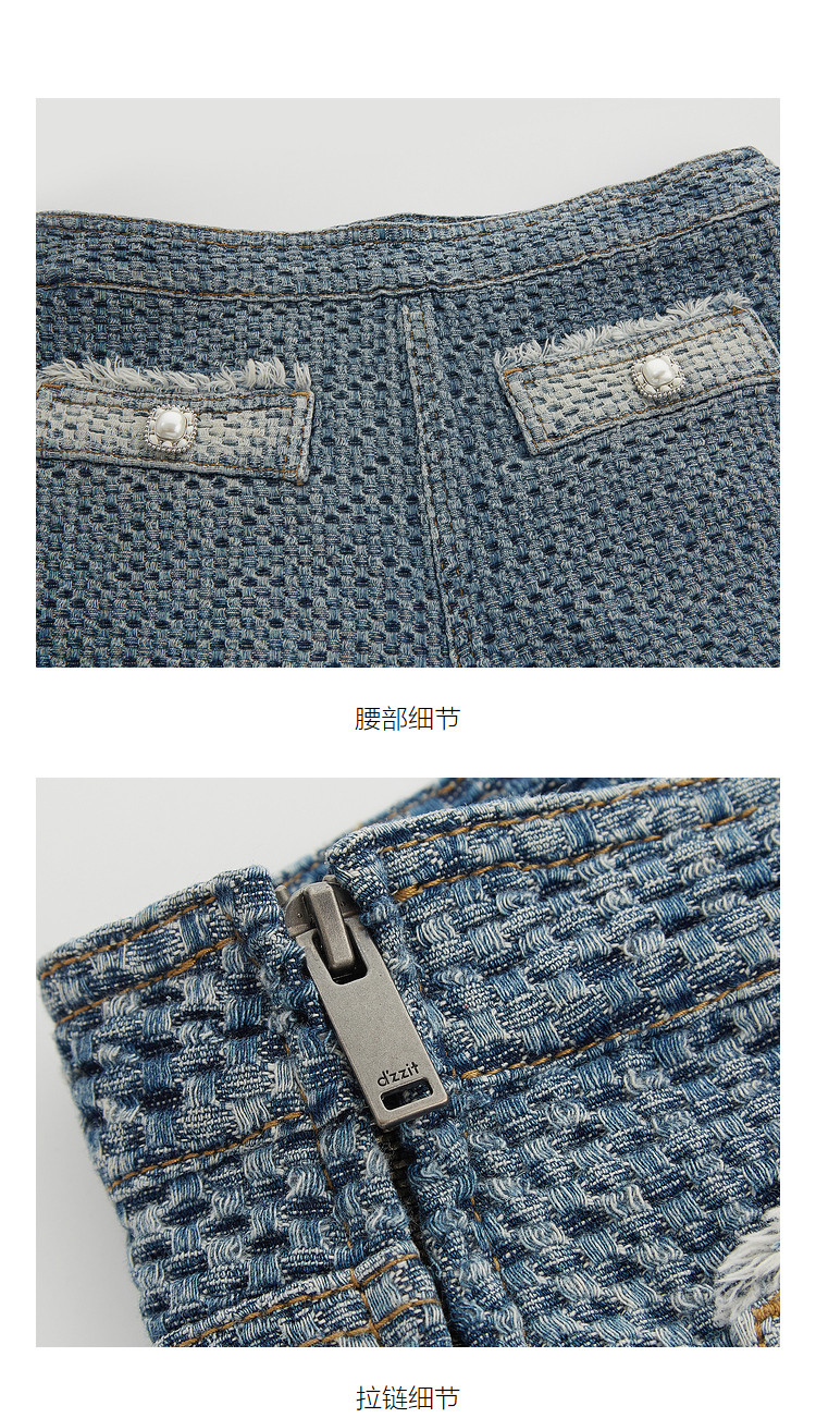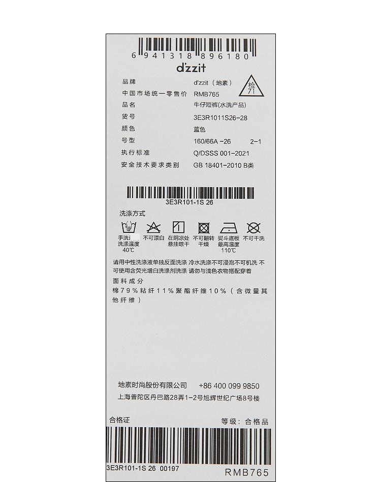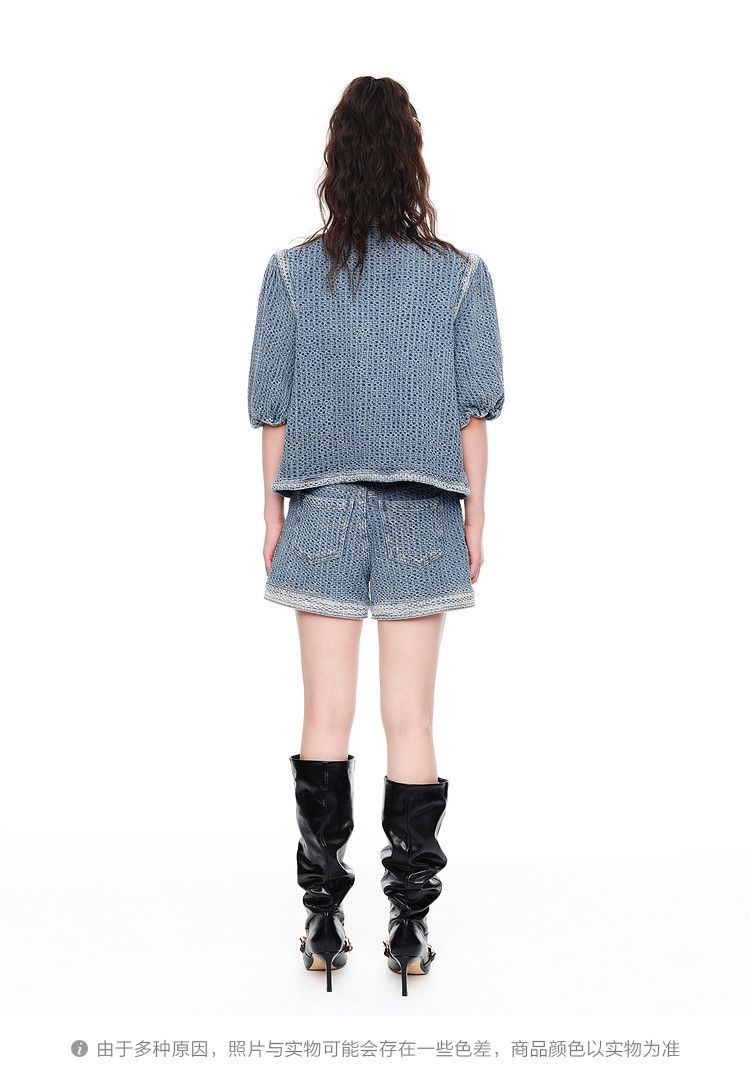 商品名称:地素春秋提花牛仔短裤女高腰裤子女小众设计感 534603