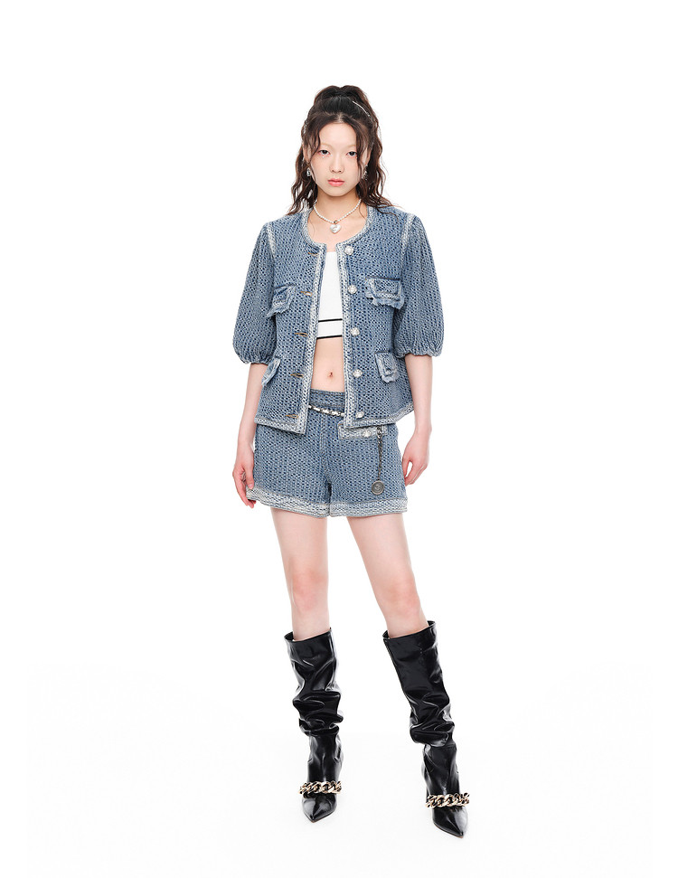 地素春秋提花牛仔短裤女高腰裤子女小众设计感 534603