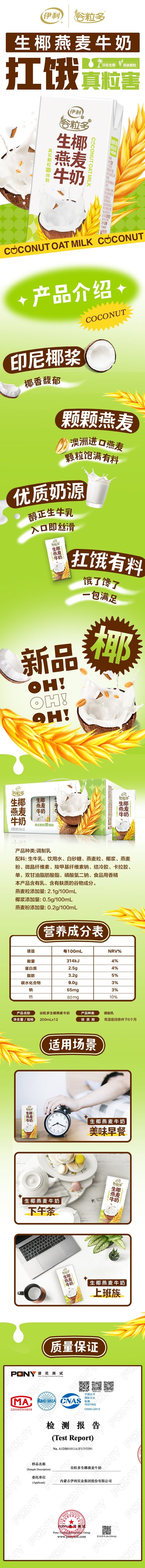 商品名称:伊利谷粒多生椰燕麦牛奶 200mL*12盒